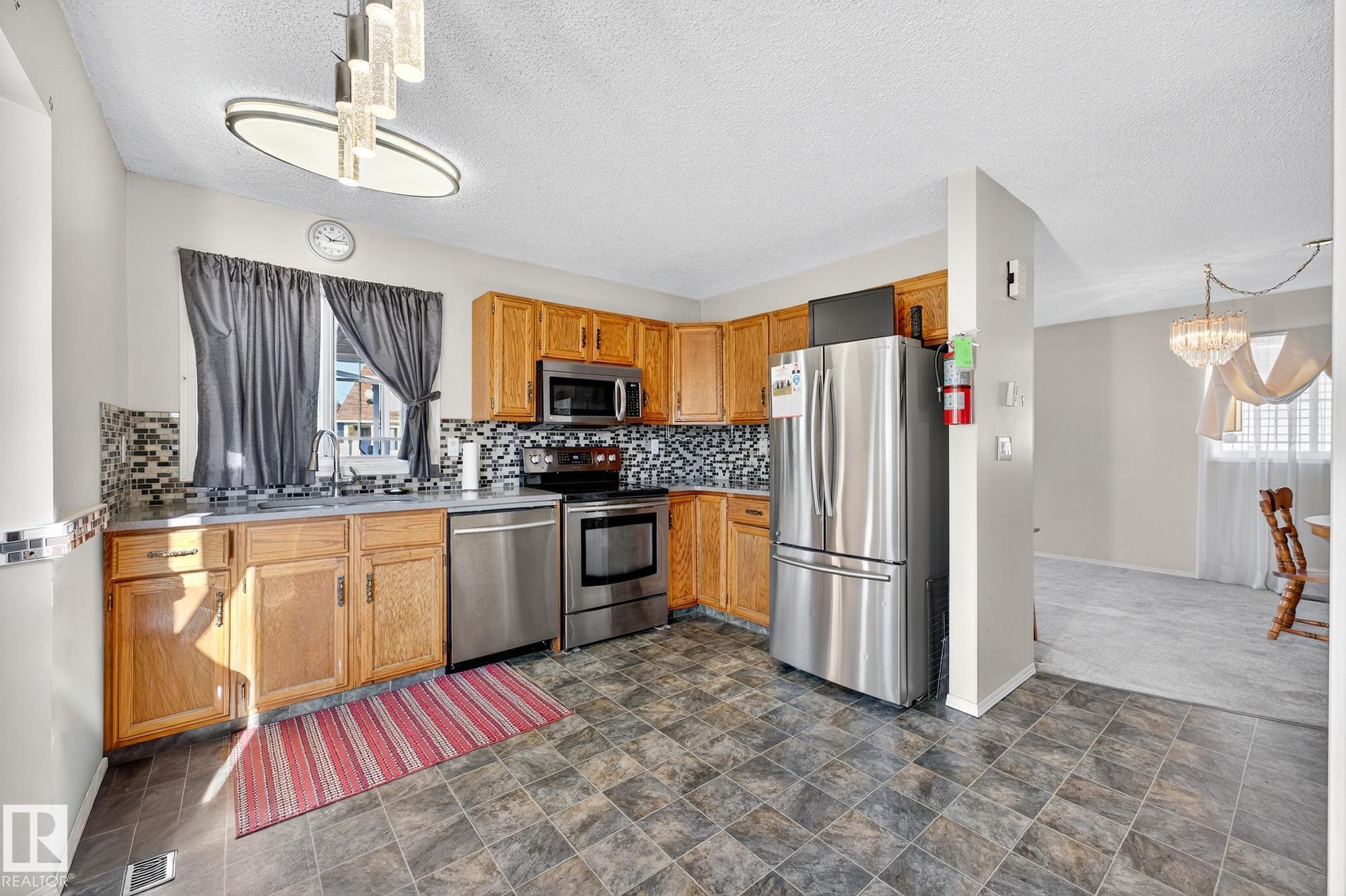 Welcome to 14511 37 St NW, a 4-level split home located in the beautiful community of Kirkness. This corner lot offers endless potential and is being sold AS-IS, WHERE-IS. The spacious home features 3 bedrooms, 2 bathrooms, and 2 versatile rec rooms—perfect for family living or entertaining. The main level is equipped with carpet and flows into the bright kitchen with stainless steel appliances. Head upstairs and you’ll be greeted by a generously sized Primary bedroom, additional bedroom, and 4 pc bathroom. Downstairs, right off the kitchen is the lower level offering a large rec room with fireplace, and 1 bed and bath. The basement includes an additional larger rec room, a bar, and a laundry room. Enjoy the outdoors with a generous detached backyard and a large partial wrap-around deck, ideal for gatherings. A detached double garage provides secure parking and storage. With great bones and room to personalize, this property is an excellent opportunity for buyers ready to add their own touch.