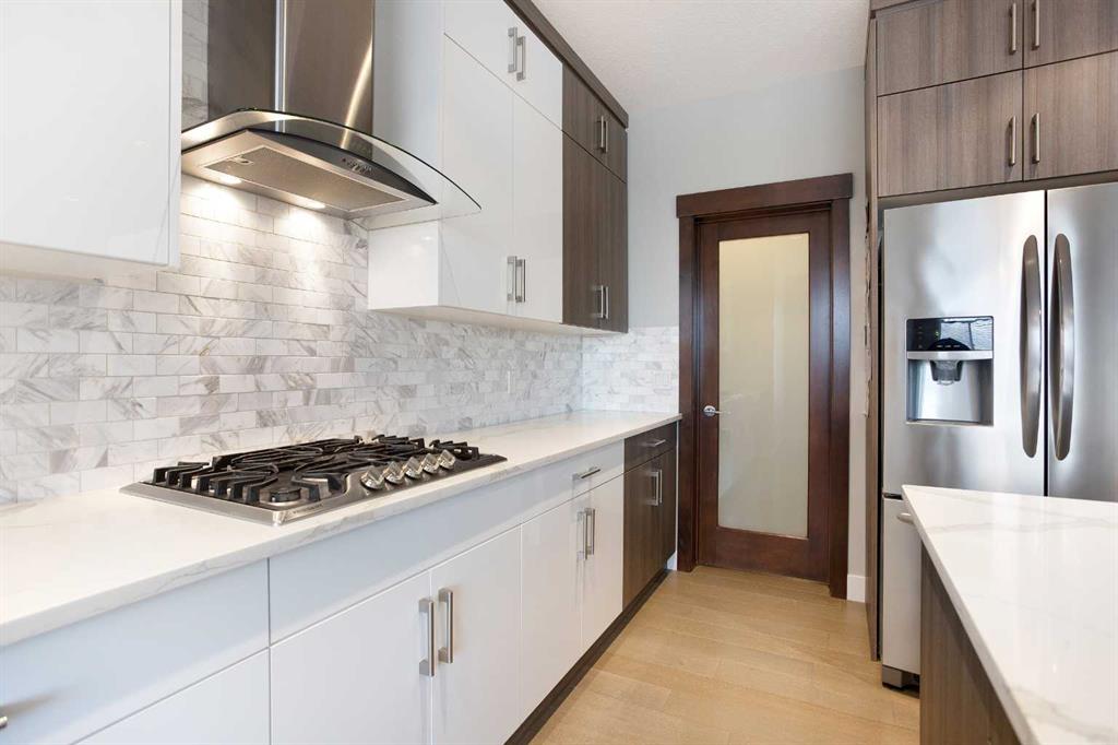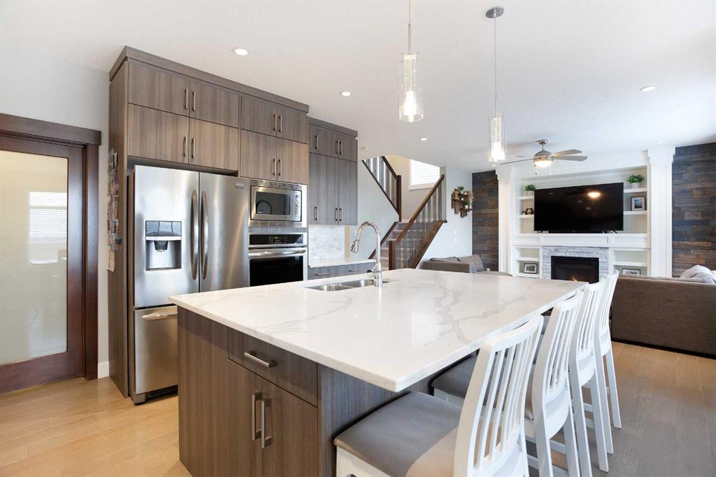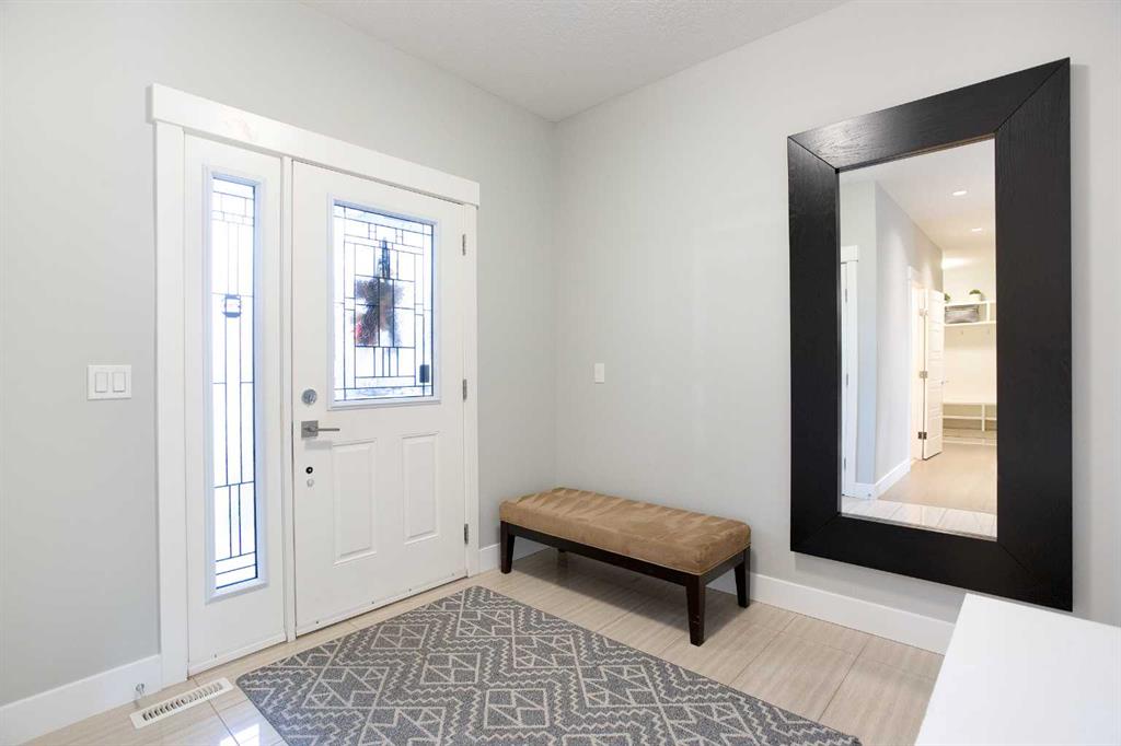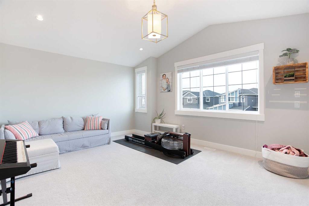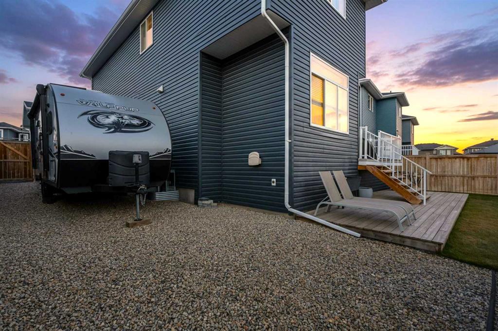 This beautifully cared-for family home blends small-town comfort with thoughtful modern design, offering the perfect mix of warmth, functionality, and space for growing families. Located on a quiet street just steps from the local elementary school and playgrounds, it provides a true sense of community while still giving you privacy and convenience. The main level is bright and inviting, featuring an open-concept layout that’s ideal for everyday living. A spacious front office sits just off the entrance — perfect for anyone working from home or needing a quiet study area — and a convenient half bathroom adds everyday practicality. The living room feels warm and welcoming with large windows and a cozy gas fireplace that anchors the space. At the heart of the home is the stunning kitchen, complete with full-height cabinetry, granite countertops, stainless steel appliances, and a large central island that makes both meal prep and entertaining a breeze. The walk-through pantry connects directly to the mudroom and garage, making it easy to bring in groceries and keep things organized. The dining nook opens onto the rear deck, creating a natural flow between indoor and outdoor living spaces. Upstairs, you’ll find three generous bedrooms, including a beautiful primary suite with a walk-in closet and elegant ensuite bathroom. The front-facing bonus room offers extra living space — perfect for family movie nights, a playroom, or a relaxing retreat away from the main floor. An additional full bathroom and upper laundry room complete this level with convenience in mind. The basement remains undeveloped, giving you the flexibility to create your own ideal space — whether that’s a home gym, guest suite, or media room in the future. Outside, the fully fenced backyard is private and well-kept, featuring an RV gate and gravel pad for extra parking or recreational use. The rear deck provides a great spot for summer barbecues and family gatherings, while the yard offers plenty of room for kids or pets to play. Car lovers and hobbyists will appreciate the oversized triple car garage — finished, heated, and offering plenty of room for vehicles, tools, and storage. The extended driveway provides even more parking space for guests or larger vehicles. This home has been meticulously cared for and thoughtfully designed for modern family living. From its beautiful finishes to its practical layout, every element offers a sense of comfort and quality. With a quiet location, great curb appeal, and a backyard built for both relaxation and functionality, this property delivers the best of small-town living with all the modern comforts you could want