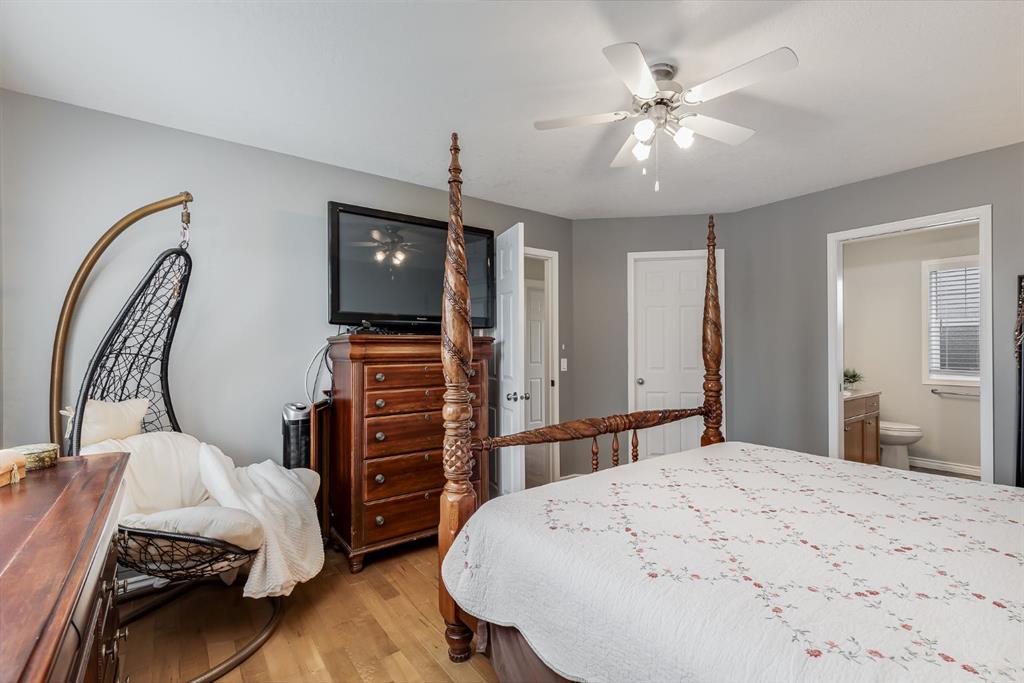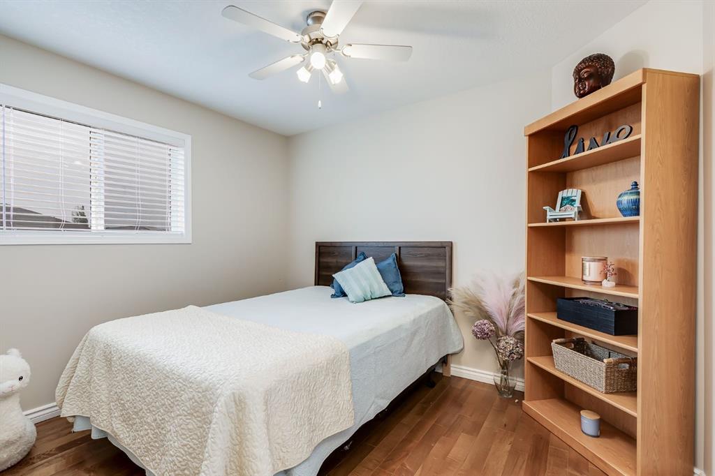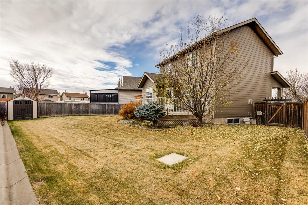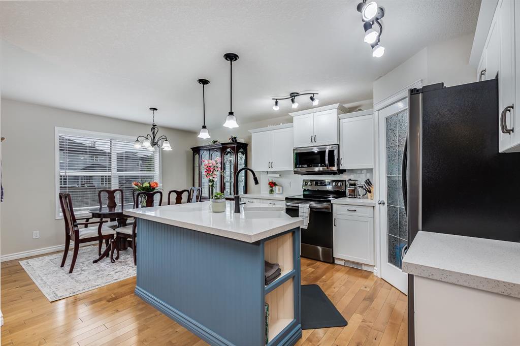 This RENOVATED and BEAUTIFUL FULLY FINISHED 4 Bedroom McKee Built Home sits on a LARGE PIE LOT located in the POPULAR COMMUNITY OF THORBURN in Airdrie and is ready for a Quick Possession. Upgrades include HARDIE BOARD SIDING, HEATED OVERSIZED GARAGE, HARDWOOD FLOORS on Main and Upper Levels, WHITE KITCHEN RENO, A/C and so much more. When you arrive to this 4 Bedroom Home with over 1967 sqft of Developed Living Space you are welcomed into the Private and Spacious Foyer and will immediately notice the HARDWOOD FLOORING. The RENOVATED KITCHEN features WHITE CABINETRY, QUARTZ COUNTERTOPS, Stainless Steel Appliances, Pot and Pan Drawers, Lighting, a FARMERS SINK in the Large Island, plumbed for a Gas Stove, and a Corner Pantry. The Living Room is bathed in natural light from the Oversized Windows and has a Corner Fireplace. The Dining area is quite Large and has an Oversized Window to enjoy the yard. The Main Floor also has a spacious Laundry Room with a Sink and extra Cabinets, and a half bath. The Upper Level has Hardwood Flooring, a Huge Primary Bedroom 14'11 x 12'3" that easily fits a King Suite, a 4 pc Ensuite with Soaker Tub, and a Walk in Closet. 2 Additional Bedrooms that can both fit Queen Beds, and a Full Bath complete the upper level. The Fully Finished Lower Level has a Massive Bedroom 16'3" x 11', Spacious Recreation / Family Room, Full Bathroom with Soaker Tub, and a Great Storage Room. This Home is AIR CONDITIONED, has a WATER SOFTENER, and has an OVERSIZED HEATED GARAGE 21'6' x 21'4" with Lots of Cabinets and a Huge Loft for Tons of Storage. The Fantastic Pie Shaped Yard is 2 Lots Wide at the rear, and has a Beautiful Tree by the deck making it a great space to relax and listen to the birds. There is a Gas Line for the BBQ and a lot of outside storage along the south side of the Home if needed. The Home also had the shingles replaced in 2015. This Fantastic Home is Turnkey and is ready for you to make it yours. Imagine your children playing in the yard or nearby playground, being able to walk to the nearby schools, and making great memories here. THIS IS A FANTASTIC HOME located on a low traffic street. Quick Possession Available if needed.