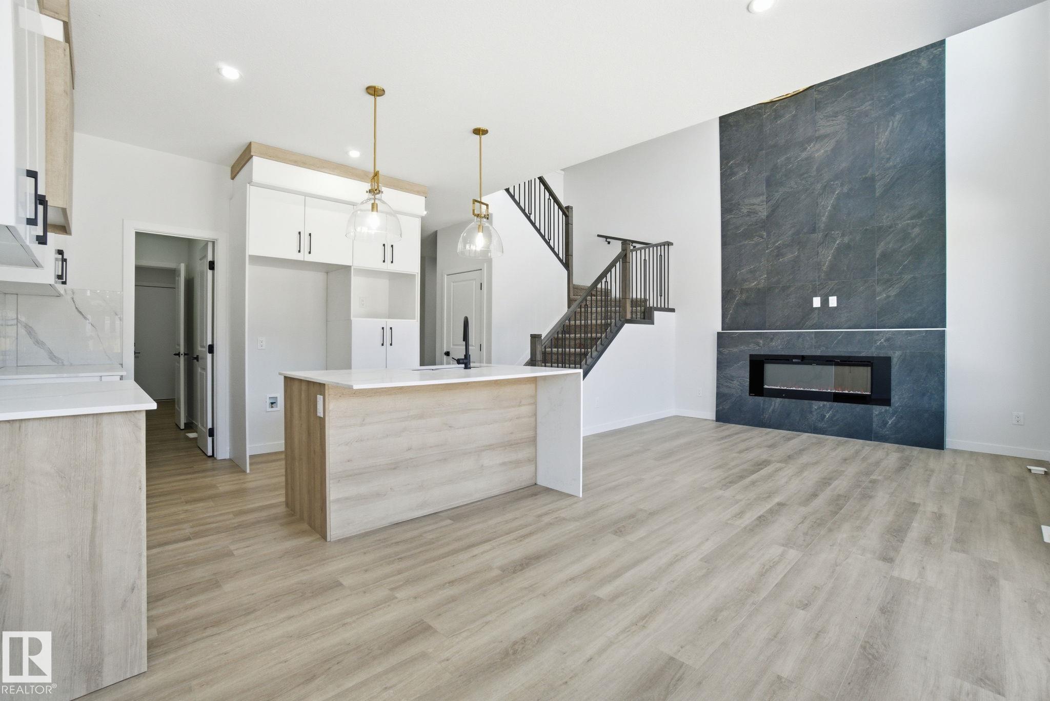 Welcome to this brand new home for sale located in beautiful community of Kinglet Gardens, Edmonton! Home features 4 bedrooms, 3 full bathrooms, bonus room, living room open-to-above ceiling & large windows. Kitchen features quartz countertops, walk through pantry and custom cabinetry. The home also includes ceiling designs, custom master shower, soft-close cabinetry, fireplace in living, and modern railing. Enjoy the convenience of a side entrance to basement, 9-foot ceiling throughout main, second floor, and basement, as well as an upstairs laundry room, MDF shelving & organizers. Additional upgrades include lighting fixtures, hardware, and a modern exterior with stone, premium vinyl siding, and front concrete steps. The home is equipped with gas lines to the deck, kitchen, and garage. Walking distance to a pond, trails and park & easy access to Henday & Hwy 16.