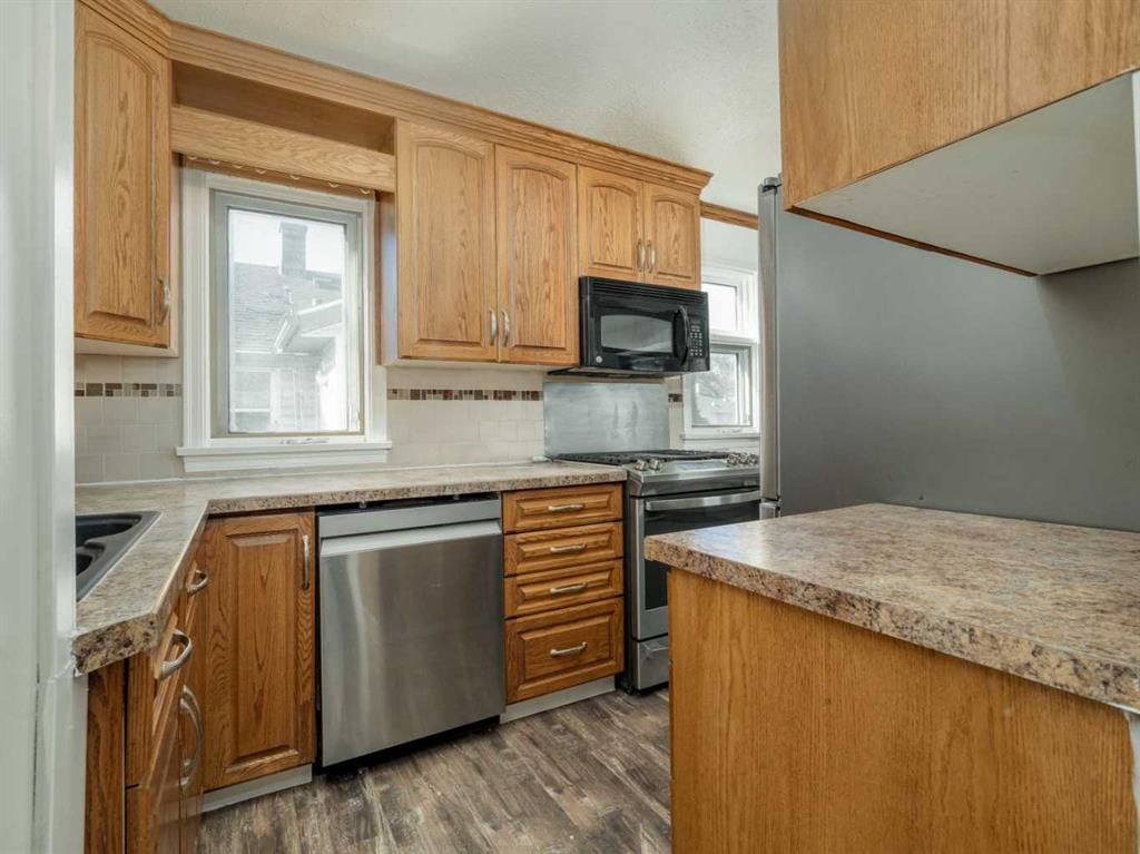 Welcome to 1606 5A Avenue North in Lethbridge—a charming 1½ storey home situated on two spacious lots, offering plenty of outdoor space for families, pets, and future possibilities. This 3-bedroom, 1-bathroom home features brand new flooring throughout, giving the interior a fresh, updated feel. The bright living room showcases a beautiful bay window that fills the space with natural light and overlooks the front yard with a large mature tree, perfect for a tire swing or seasonal lights. The kitchen includes brand new appliances, featuring a gas stove and dishwasher, making it both functional and inviting. Major upgrades provide peace of mind, including the 2025 GAS hot water on demand, new shingles in 2022, a brand new 2025 furnace and central air conditioning for year-round comfort. The finished basement offers additional living space with a comfortable sitting area plus an extra room ideal for a home office, hobby room, or flex space. One of the main-floor bedrooms includes a built-in play area, which can be removed prior to possession if the buyer prefers a different use. Outside, the fully fenced backyard provides room for kids, pets, and entertaining. A storage shed is perfect for lawn and garden tools, and the seller is leaving a valuable supply of gravel ready for the new owner to customize the yard. A trampoline is also included if desired. Conveniently located near parks, schools, and shopping including Park Place Mall, this property offers space, updates, and flexibility in a great north-side location.