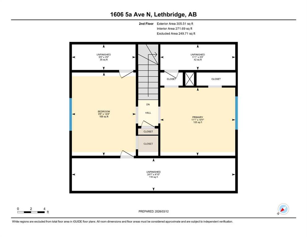 | Bedroom - Primary | 11`1" x 10`1" | Second |