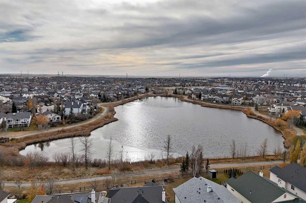 LUXURY LIVING ON THE POND. Experience the exquisite, entirely new renovated luxury walkout bungalow backing onto West Creek Pond, with stunning views, turnkey and ready for its next owner! This is truly what dreams are made of, as you enjoy daily sunrises/sunsets and walks around the pond, accessible from your large, sunny, south-facing backyard—open-concept main floor with vaulted ceilings, abundant natural light throughout, and unobstructed views. This 3-bed, 3-bath, plus office/den bungalow features brand-new, beautiful custom cabinetry, luxury appliances, a waterfall-edge quartz countertop and backsplash, and a custom pot filler —truly a chef’s dream! Curb-less tiled ensuite shower with custom glass, quartz counters throughout, a wet bar on the lower level, and a brand-new upper patio deck, gorgeous custom-engineered white oak hardwood, with custom tile and carpet. Custom-designed throughout, fully developed walkout basement with walkway and pond access. Laundry is conveniently located on the main floor. The underground sprinkler system keeps the landscaped yard well-nourished throughout the summer. Perfect for those seeking a nature-inspired lifestyle, moments away from walking pathways, a golf course, a beach, a lake, shopping, schools, playgrounds, restaurants, roadways, and other major amenities. MUST VIEW! Book your private viewing today! *3D VIRTUAL TOUR AVAILABLE*