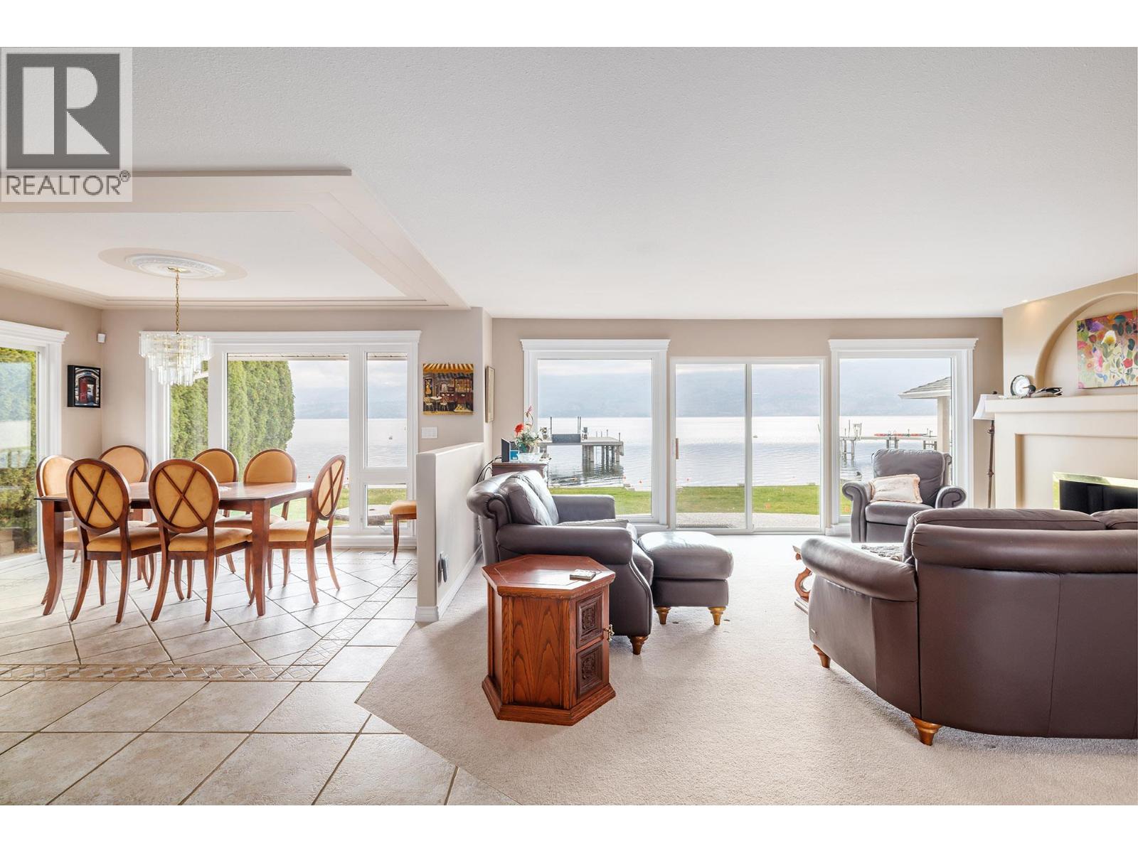 Beautifully designed for lakefront living, this stunning beach house on Pritchard Drive offers 80 feet of level lakeshore, an incomparable private dock with boat moorage and panoramic views of Okanagan Lake, Kelowna and the surrounding mountains. Perfectly situated on a 1/4 acre lot in one of the most sought after neighborhoods on Okanagan Lake, this 5 bedroom plus den, 3 bathroom rancher combines comfort, functionality and timeless style. Enjoy morning paddles, family gatherings and the best of lakeside living right from your doorstep. Outdoor living is made easy with a covered patio, outdoor shower area and low maintenance landscaping - all just minutes away from award-winning wineries and local amenities.