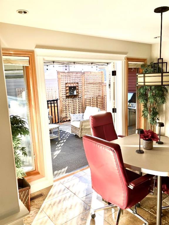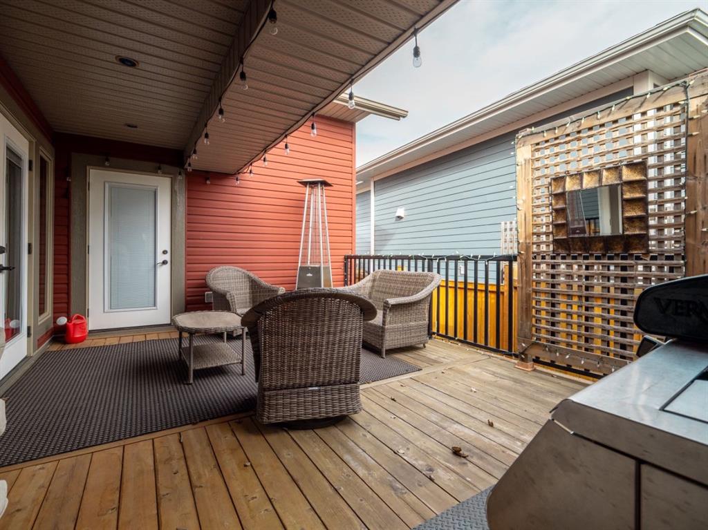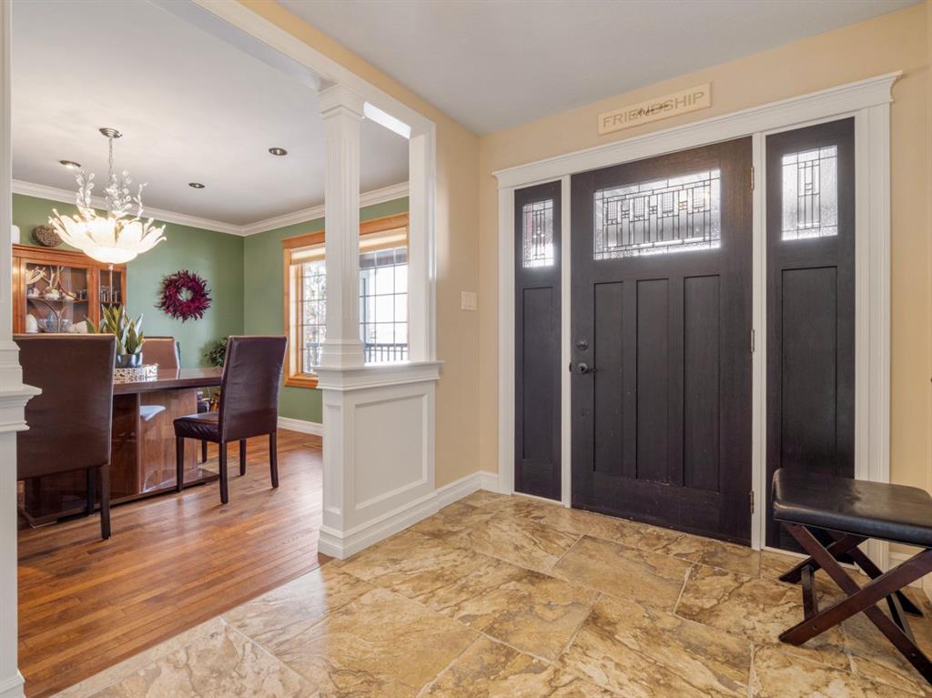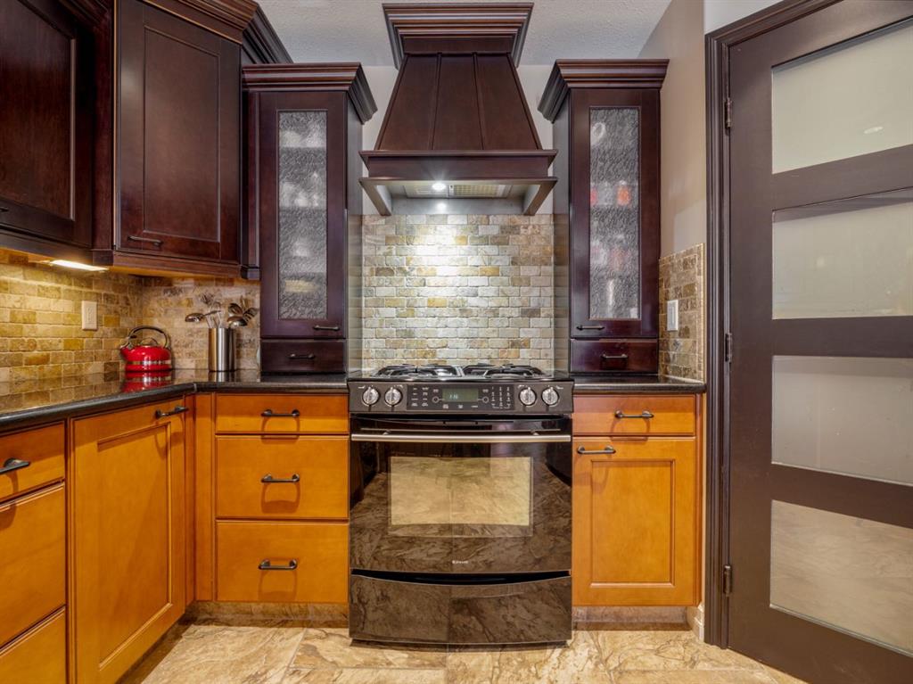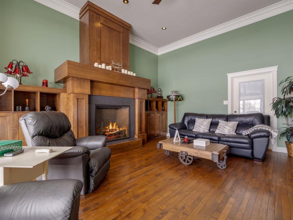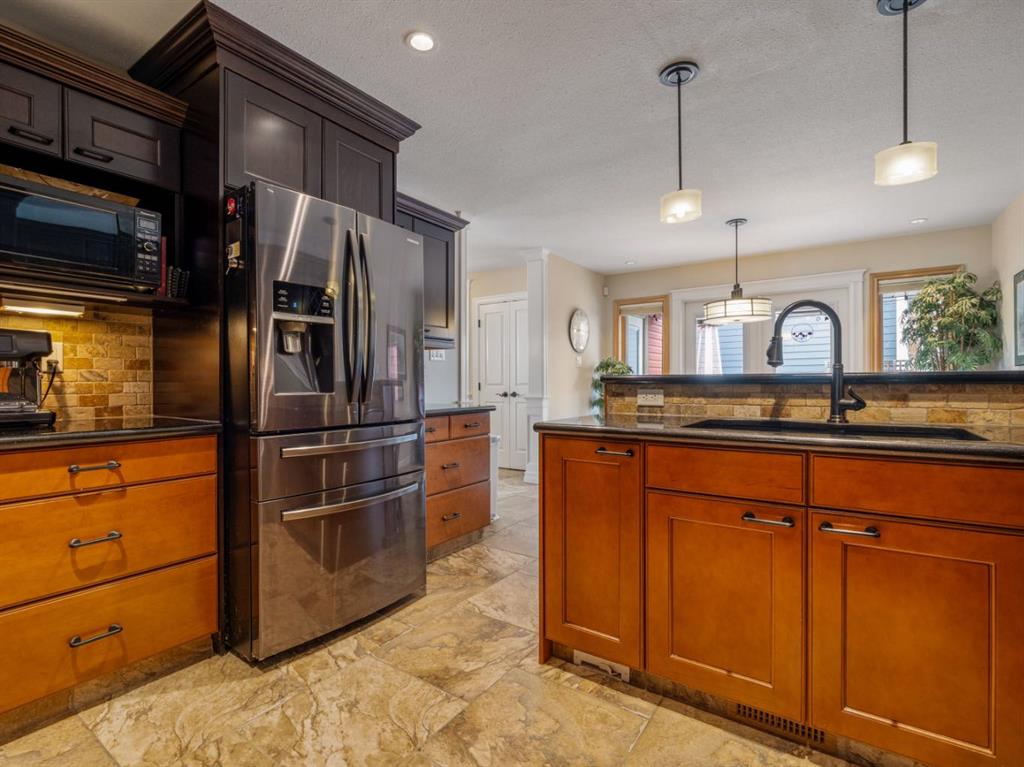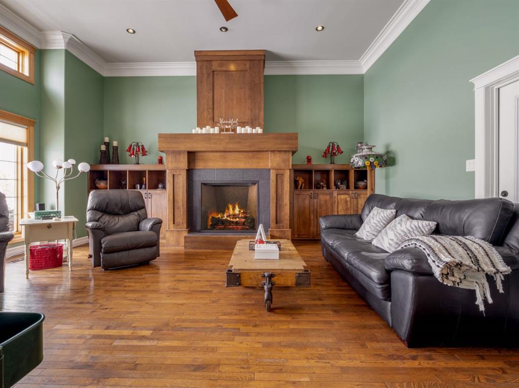 Imagine starting your day surrounded by peaceful views and quiet natural beauty — a distinguished residence in Riverstone where timeless architecture and refined comfort create a home that feels both elegant and welcoming. Custom built and beautifully appointed, this exceptional home captures scenic views of the natural habitat and parkland across, offering a serene backdrop for everyday living. Rich antique oak hardwood floors, soaring 12-foot ceilings, detailed crown mouldings, and a striking custom mantle with gas fireplace showcase exceptional craftsmanship while creating an atmosphere of warmth and quiet sophistication. Thoughtfully designed with beautifully defined living spaces — a refreshing alternative to typical open layouts — this home offers inviting rooms to gather, relax, and enjoy. The gourmet kitchen is designed for both relaxed mornings and effortless entertaining, featuring in-floor heating, maple cabinetry with corner pull-outs, an appliance lift, granite countertops, and a tumbled travertine backsplash, with quality finishes carried throughout. The adjoining nook opens to a sheltered private courtyard deck, an intimate outdoor setting perfect for your morning coffee or evenings with family and friends. The main floor also offers a laundry room, 3-piece bath with body jets, and a versatile office or bedroom with direct access to a second deck and south-facing patio, providing multiple outdoor spaces to enjoy throughout the day. The upper level is devoted entirely to a luxurious primary retreat, designed as a private sanctuary with a spa-inspired 5-piece ensuite featuring a 10ft. granite vanity, heated floors, soaker tub, and double shower with body jets. Two walk-in closets, a second laundry area, and a private balcony with tranquil views create a peaceful place to unwind. The fully developed lower level extends the home’s comfort with cork flooring, two additional bedrooms, a spacious family room with a second fireplace, full bath, and media room ideal for family movie nights. With 3596sqft of total living space, exceptional custom construction, and a rare collection of outdoor living areas, this home offers a lifestyle defined by comfort, character, and quiet elegance in one of Riverstone’s most desirable settings — a place to be enjoyed for years to come.