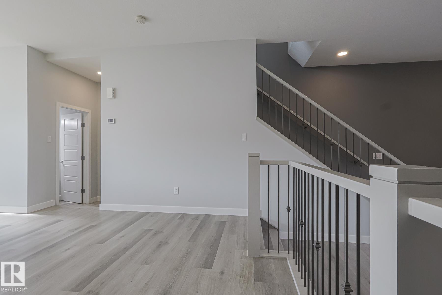 Welcome to this beautifully finished home offering style, comfort, and functionality throughout. Step inside to soaring ceilings and a sunken living room with a cozy electric fireplace. The kitchen is a chef’s dream with granite countertops, gas stove, and plenty of space to entertain. Luxury vinyl plank flooring runs throughout the main living areas with carpet only on the stairs. Upstairs, the expansive primary retreat includes double sinks, a large walk-in closet, and room to truly unwind. Two additional bedrooms (one with its own walk-in) and a convenient laundry room complete the upper level. The fully finished basement adds even more living space with a rec room, 4-piece bath, an additional bedroom, and a beautiful mural feature wall. Outside you’ll love the front veranda, 10x10 deck, and brand new landscaping with rocks, grass, shrubs, and trees. A double detached garage, finished to drywall and paint, adds practicality. Truly move-in ready, this north-facing home checks all the boxes.
