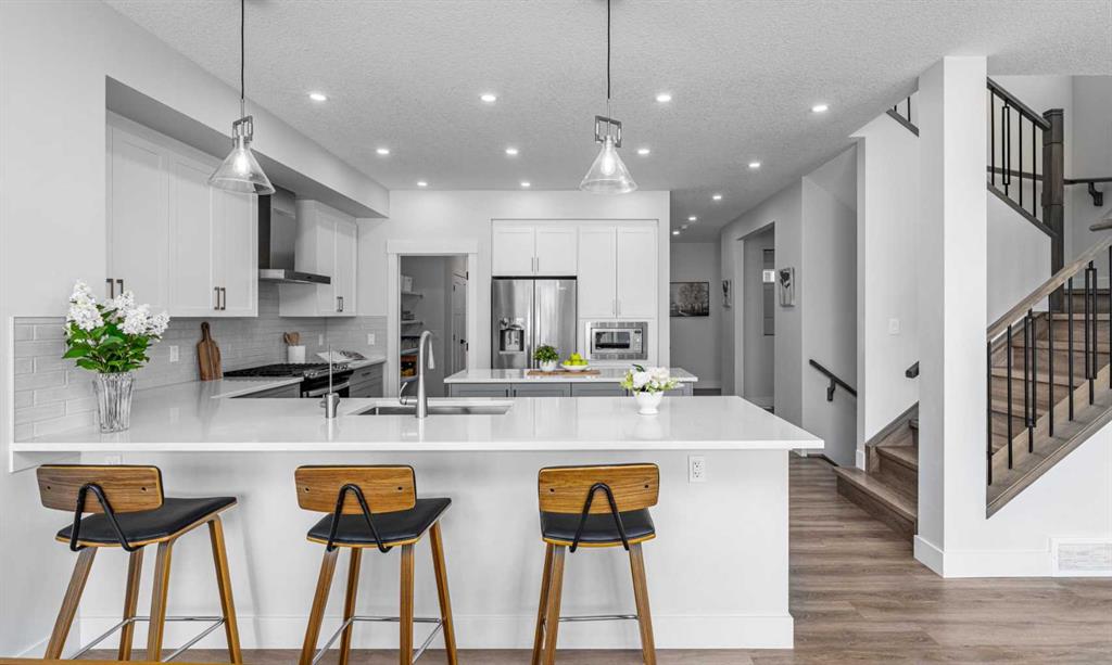 *Open House: 2-4pm Saturday Mar 14th & 1-4pm Sunday March 15th* Rare find! A stunning 2-year-new detached home in the only lake community in NW Calgary — Arbour Lake. Backing directly onto green space with beautiful mountain views, this exceptional property offers 4 bedrooms upstairs and a fully finished walkout basement, combining modern comfort with an unbeatable location. The main floor features a bright and spacious office, perfect for working from home. The modern kitchen is designed for both everyday living and entertaining, featuring a huge island, gas stove, and a large walk-through pantry conveniently connected to the garage. The south-facing living area is filled with natural light and centered around a sleek electric fireplace. The spacious dining room opens onto a large balcony overlooking the mountains, green space, pond, and playground — the perfect spot to enjoy your morning coffee while keeping an eye on the kids playing nearby. Upstairs features luxury vinyl plank flooring throughout — a completely carpet-free home. You will find four generous bedrooms, including a primary retreat with stunning mountain views, a spacious walk-in closet, and a large ensuite. The additional three well-sized bedrooms share a spacious bathroom, and the upper-level laundry room adds everyday convenience. The walkout basement offers incredible flexibility with a modern wet bar, a large recreation area ready for your imagination, a versatile flex room perfect for an office or study, and a full bathroom. Step outside to a backyard that opens directly onto the playground and green space, leading to a scenic pond — an ideal setting for families and outdoor enjoyment. Living in Arbour Lake means enjoying one of Calgary’s most desirable four-season lake communities. Residents have access to the private lake for swimming, fishing, boating in the summer, and skating in the winter, along with tennis courts and community amenities at the Arbour Lake clubhouse. The location is incredibly convenient, within walking distance to Crowfoot LRT and Crowfoot Crossing Shopping Centre, and close to Crowfoot Library, YMCA, and excellent schools. To top it off, the home features durable cement fibre siding, offering better resistance to hail damage — an important advantage in Calgary.