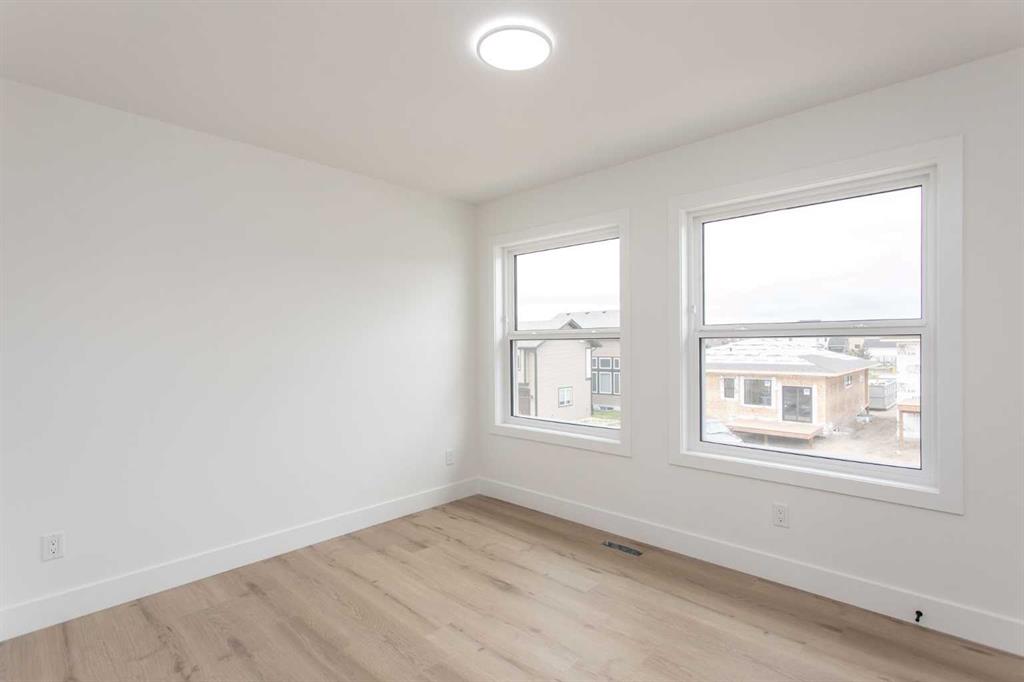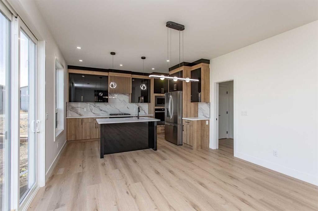 Over 2,100 Sq.Ft. of finished space, 3 Bedrooms, 2.5 Bathrooms, a Bonus Room, main floor Office, EV-ready Double Garage, and a separate basement entry—this bold two-storey in Timberlands North delivers standout design and long-term functionality. Located close to parks, schools, walking trails, shopping, and services, it’s a smart choice for those who want space, style, and everyday convenience. From the moment you step onto the covered front porch and through the oversized 8' front door, the attention to detail is clear. Smooth painted flat ceilings flow throughout the home, while tall ceiling heights and a striking black metal and glass railing on the staircase add to the modern aesthetic. The open-concept main floor features durable tile and vinyl plank flooring, an electric fireplace, and large rear-facing windows that fill the space with natural light. The two-tone Kitchen is both beautiful and practical, with quartz countertops, a gas cooktop, built-in wall oven and microwave, and a spacious walk-in pantry. A main floor Office and 2 Piece Bath offer smart functionality for daily life. Upstairs, the Bonus Room provides flexible extra space, while the Laundry Room impresses with its size, quartz counters, built-in storage, and high-end finishes. The Primary Suite is designed for comfort and style, featuring an accented tray ceiling with recessed lighting, a walk-in closet, and a 5 Piece Ensuite with a tiled walk-in shower, freestanding soaking tub, double sinks, and a private water closet. Two additional Bedrooms and a full 4 Piece Bath with tiled tub/shower combo complete the upper level. The attached Double Garage is fully finished with paint, roughed-in for heat, and includes an EV plug. A separate basement entry adds future development potential and flexibility. Timberlands North is known for its walkability and smart community planning, with immediate access to schools, restaurants, shopping, health services, parks, and public transit. Whether you're running errands, grabbing coffee, or heading out on the trails, everything you need is just steps away. Modern yet warm, stylish but practical—this home is anything but ordinary.