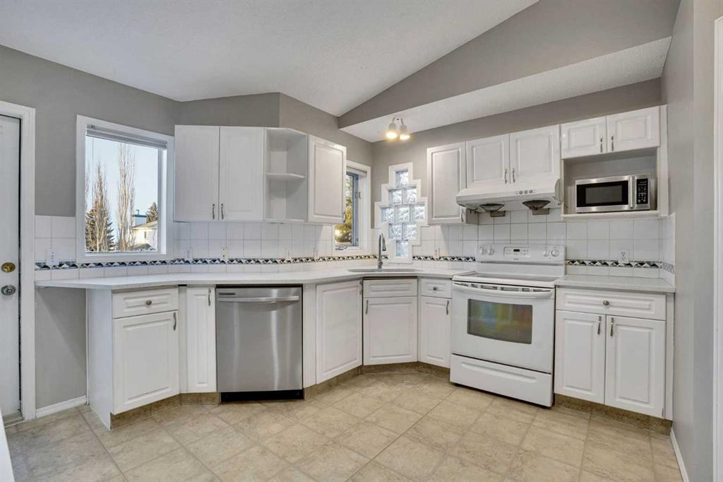 Great opportunity for first time home buyers and investers!!! 5 bedrooms and 3 full bathrooms with total living space at 2355 sft. Fully developed walkout basement give the home owners a high potential to rent out and help with their mortgage. This beautiful bi-level property located in a quiet cul-de-sac with playground and school in walking distance, and also,medical facilities, recreation, transportation and commercial area nearby. This spacious home features vaulted ceilings, large windows, open concept in living and dining area. Kitchen is bright and very spacious with patio door leading to deck. Very large master bedroom with full ensuite and walk-in closet. Second bedroom has washer and dryer for upstairs convenience, which may easily be taken out to convert back into a bedroom. Third bedroom and another full bathroom complete this level. Completely separate walk-out basement comes with washer and dryer, one large bedroom and second bedroom along with fully renovated 3 piece bathroom, full kitchen with new stainless steel fridge, and full length large windows gives plenty of light and makes this feel like main level living. Double attached garage with shelving. Right side of the master bedroom window will be sold "as is"(bottom glass wood frame cracked caused linkage cannot hold the window completely close position). Don't miss the chance to have a showing on this property!!!!!!!