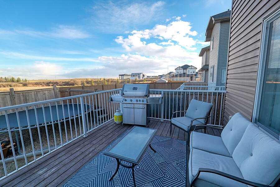 Welcome to this beautiful 2381 sq. ft. home in the sought-after community of Montrose in High River. A total of 4 bedrooms, 2.5 bathrooms, partially finished basement, double attached garage and air conditioned. This home is perfectly situated backing directly onto a peaceful vacant field. Step inside this bright, welcoming, open -concept, home into the stunning foyer with tiled floors and vaulted ceiling. Also on the main level is the versatile flex room creating a space for an office, playroom or dinning room. The bright spacious family room has a gas fireplace and is open to the kitchen and eating are. The eating area connects to the deck for hot summer BBQs or tranquil morning coffee. The kitchen boasts quartz counters, a large island and a convenient corner pantry. The main floor also has a 2 piece bathroom and a separate laundry room. Upstairs you'll discover a bright bonus room, a 4 piece bathroom, a 5 piece ensuite and 3 bedrooms. The primary bedroom is a spacious retreat (15' x 14' 7") including a walk-in closet and a 5pc ensuite. The ensuite has double sinks with quartz counters, soaker tub, separate shower and privacy door to the toilet. Both the Primary bedroom and ensuite are situated overlooking the private serene views of the fields. The basement contains the 4th bedroom, games room and family room. The storage room is plumbed in for an additional bathroom. The back yard is fully fenced with great views, overlooking the vacant field, which is a wonderful area to walk your dog or watch the wildlife. Montrose is a beautiful community with walking paths, playground, tennis/pickleball courts and off leash dog park You can walk or bike to Co-op, recreation complex (with new swimming pool) and restaurants. Please click on the multimedia tab (top left) for a 3D tour and additional photos. Welcome home to Montrose in High River.