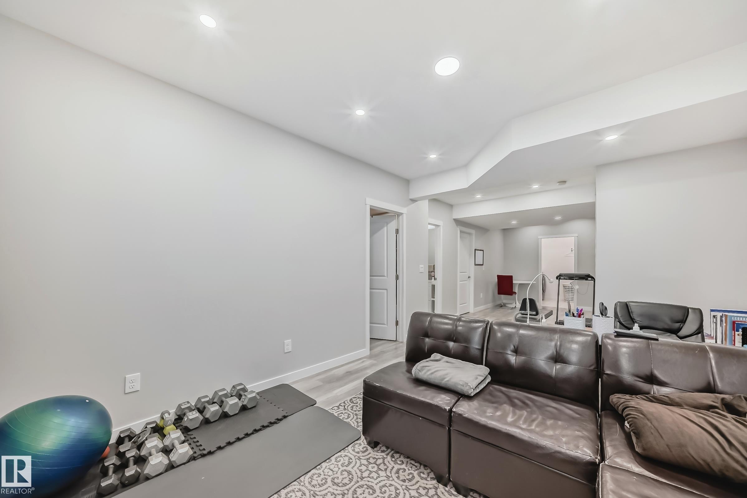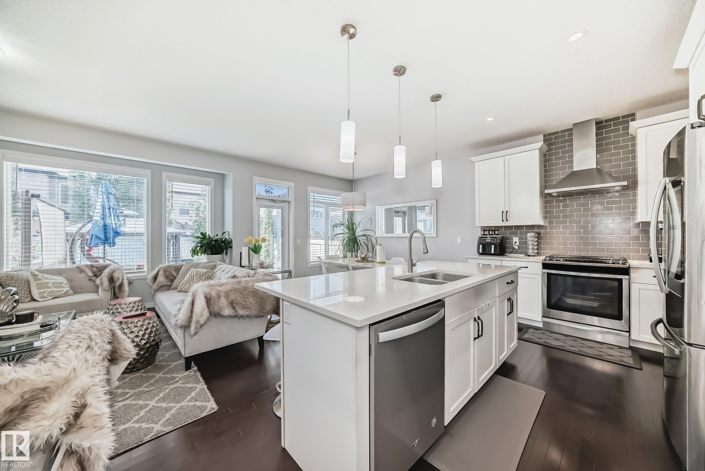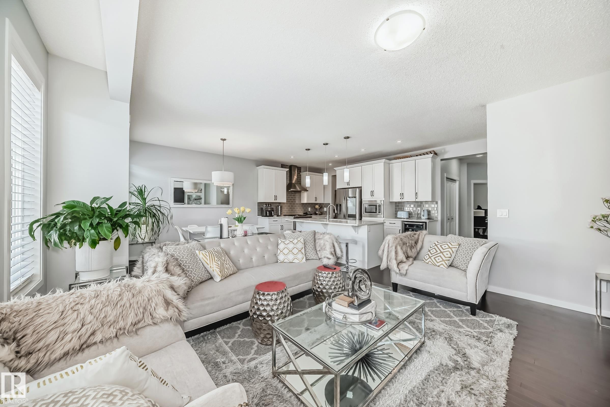 Spectacularly kept 1,962 sq.ft. 4 bedroom + den, 3.5 bathroom home with a permitted fully finished basement! This home has so many upgrades and customizations, so prepare to be wowed. The main floor has a good-sized foyer and mud room to enter the home, den for your home office, half bath, a big living room with inset shelves with colour-changing lights and fireplace, a dining area, and a huge kitchen with gas stove, tons of counter space, and a butler pantry/coffee bar. Upstairs is the bonus room, two bedrooms (one with a walk-in closet), full bathroom....and then there's the amazing owner's suite with a monstrous bedroom, 5 piece bathroom with double sinks, and the best closet you have seen! The basement is fully finished with laminate flooring, a laundry room, storage, full bath, 4th bedroom, and a rec area. Outside in the west-backing yard you have a maintenance-free deck, patio with gazebo, cherry trees, and a garden box. This home is such a great value and is so chic you must check it out!