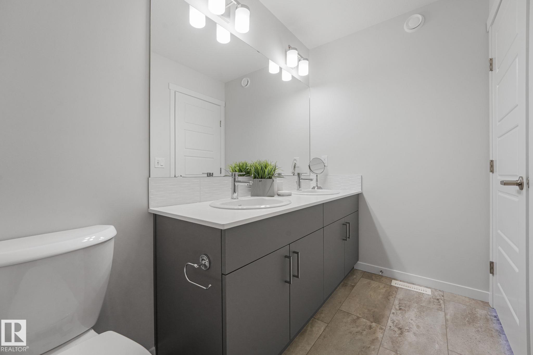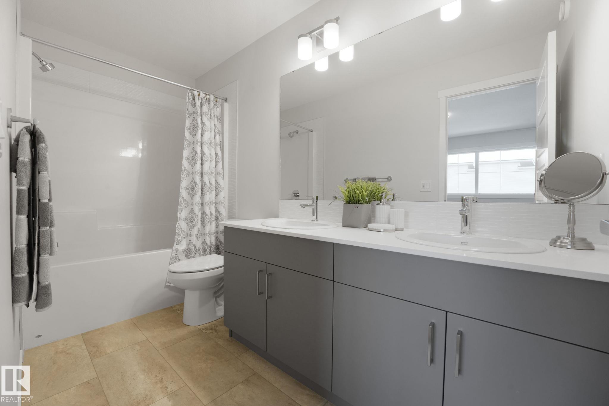 Beautifully designed modern farmhouse perfect for growing families. offering 1,632 sq. ft. of comfortable living space. The main floor features 9-foot ceilings and a bright open layout with a spacious living room, dining area, and functional kitchen with plenty of cabinets and an eating bar. Upstairs includes a large primary bedroom with walk-in closet and ensuite, plus two additional bedrooms, a full bathroom, and convenient upper-floor laundry. The unfinished basement with rough-in plumbing offers great future potential. Built with quality and backed by the Alberta New Home Warranty Program.