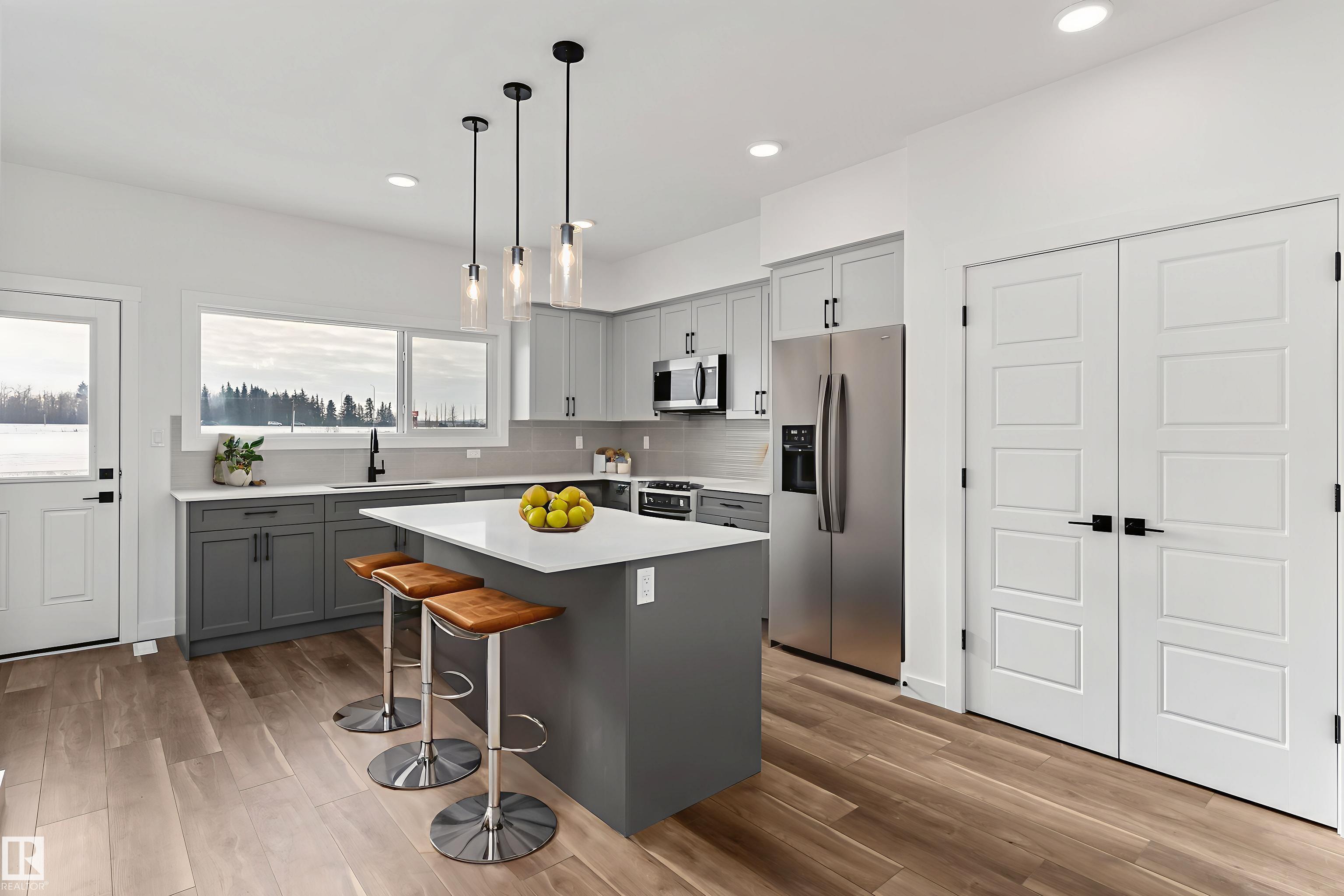 The Ascend 22 is a masterfully engineered home featuring an oversized double attached garage (2' extra width), 9’ ceilings, and a separate side entrance. Durable Luxury Vinyl Plank flooring spans the main level, leading from a spacious foyer into a bright, open-concept living area. The gourmet kitchen is highlighted by Quartz counters, a corner pantry, and a flush-ledge island, while the adjacent great room features a modern electric fireplace and garden door access to the yard. Upstairs, a central bonus room provides a versatile retreat near the dedicated laundry room. The primary suite is a true standout, offering a walk-in closet with its own window and a 4-piece ensuite with dual sinks and a glass shower. Two additional bedrooms and a full bath complete the second floor. Finished with brushed nickel fixtures and the premium Sterling Signature Specification, this home balances high-end style with everyday utility.