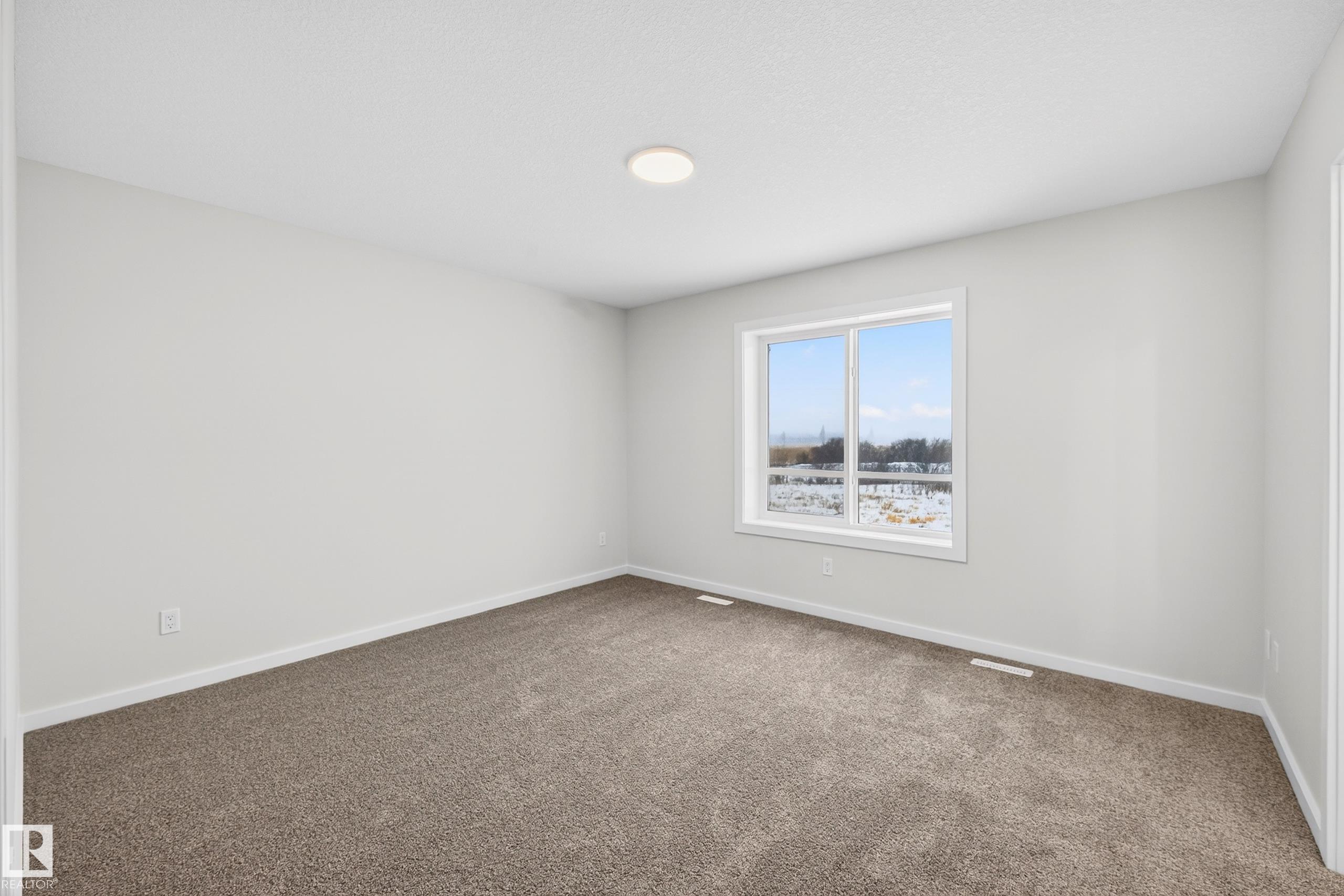 EXCEPTIONAL NEW 2 STORY HOME in CUL-DE SAC on PIE LOT next to walkway, constructed by Homes by Avi. Welcome to Marquis West, a picturesque & serene community in Northeast Edmonton. This home HAS IT ALL! Attached double garage, SEPARATE SIDE ENTRANCE, 3 bedrooms, 3 FULL baths, main-level flex room (can be 4th bdrm), upper-level loft style family room & full laundry room. Open concept main level floor plan w/stunning design highlights welcoming foyer, spacious living/dining area, deluxe kitchen w/center island, appliance allowance, chimney hood fan & built-in microwave. Private owner’s suite w/luxurious 5-pc ensuite showcases upgraded shower, soaker tub & WIC. 2 spacious junior rooms & 4pc bath. Numerous upgrades throughout including, quartz countertops, abundance of cabinetry, upgraded lighting/fixtures, neutral palette, luxury vinyl plank flooring, plush carpet upper level, 9' ceiling height in basement, electric F/P, HRV system, programable thermostat. MUST SEE HOME!