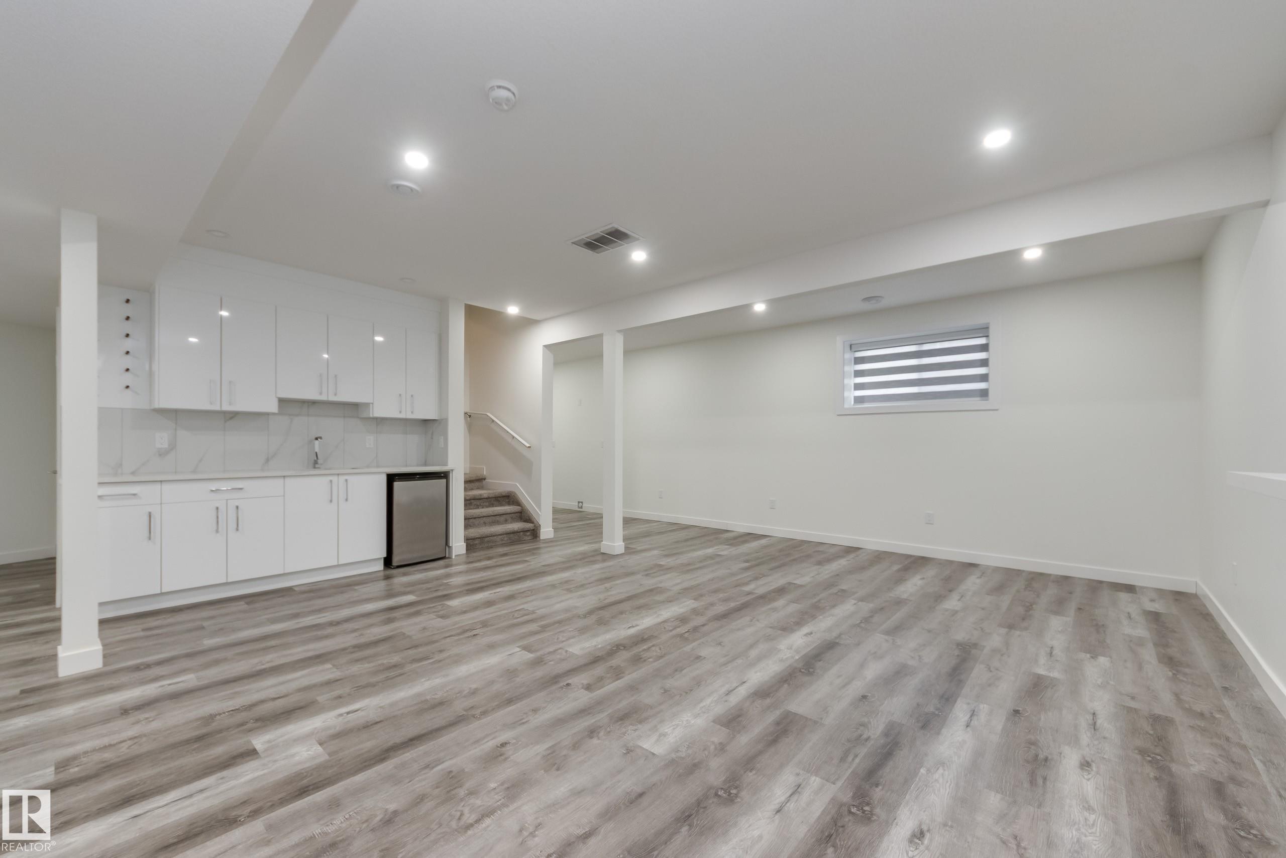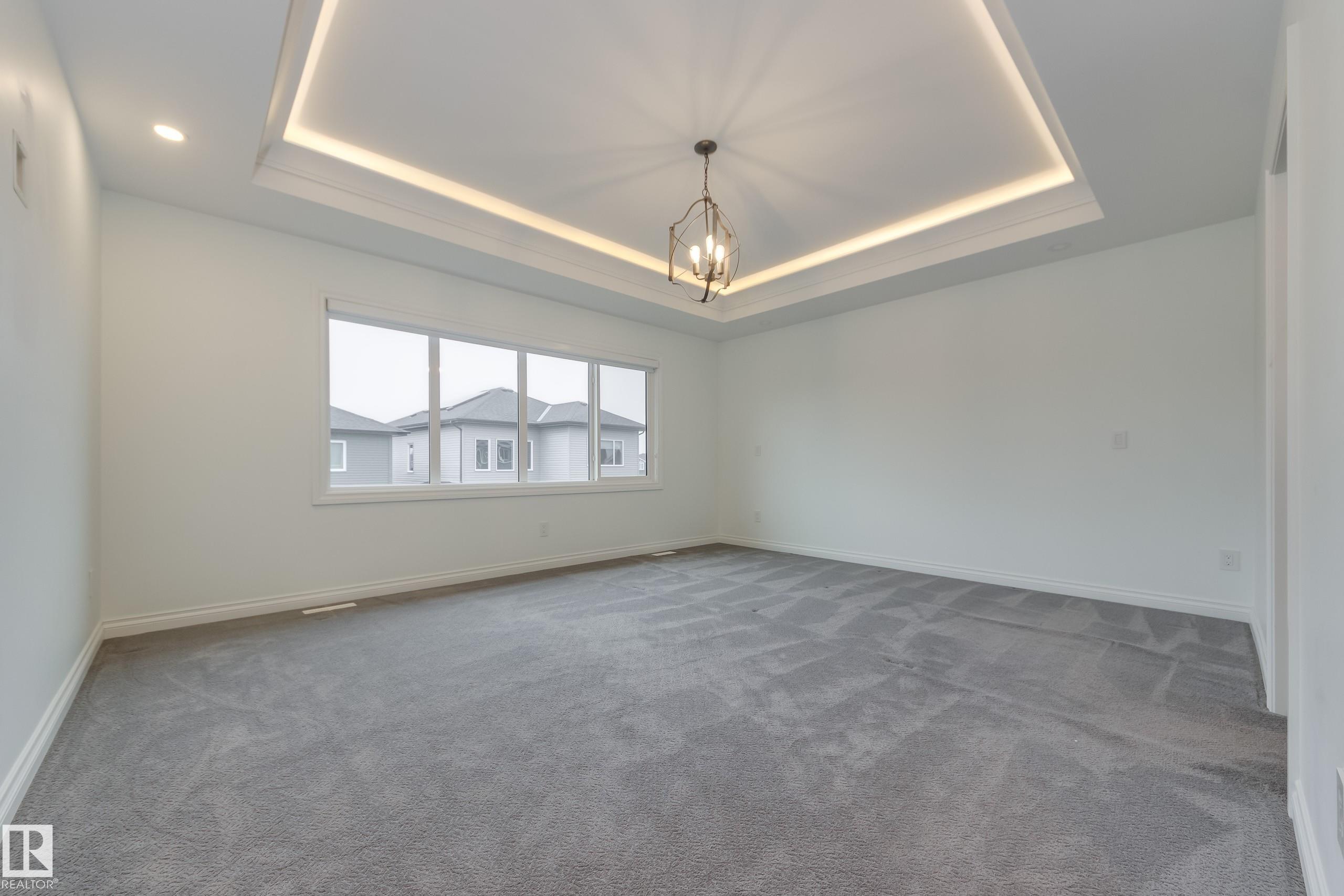 Welcome to a luxurious custom and thoughtfully designed home! A stamped concrete drive leads to a grand foyer and a breathtaking living room with 18’ ceilings, chandelier lighting, engineered hardwood, and expansive south windows. The gourmet kitchen impresses with a massive island, quality stone counters, excellent cabinetry space, and a full spice kitchen! A main-floor bedroom/office and 3pc bath add flexibility. A beautifully lit open staircase leads to a spacious bonus area and four bedrooms, including TWO impressive primaries with recessed lighting. Main primary offers a stunning 5pc ensuite and large walk-in, while two additional bedrooms share a Jack & Jill bath. Upstairs laundry and custom closet organizers elevate everyday comfort. The basement expands your options with a large rec room, den, 6th bedroom, huge walk-in, and rough-ins for a future kitchen, plus a private 2nd entrance! Enjoy a triple heated garage, a sunny south yard, and an upscale community near pond and Sunrise/Set Point trails.