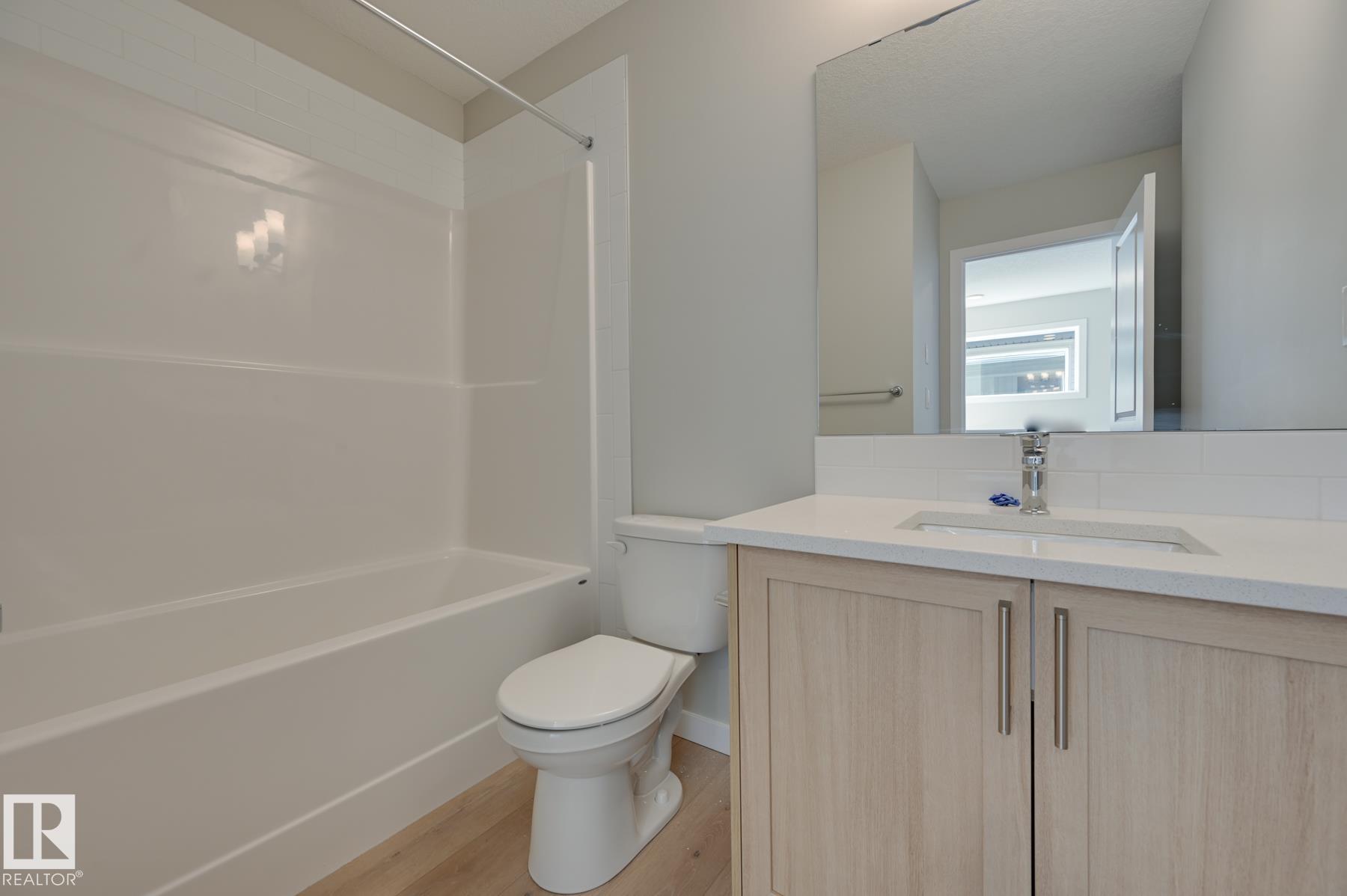 Check out this beautiful brand new home with a double attached garage! Step inside to find a convenient half bath and front closet, leading into a modern open-concept layout. The kitchen flows seamlessly into the dining and living room—perfect for everyday living and entertaining. Upstairs offers 3 spacious bedrooms, a laundry room, and 2 full bathrooms, including a 4-piece ensuite and walk-in closet in the primary suite. Enjoy luxurious 1-1/4" quartz countertops in the kitchen and bathrooms, plus durable luxury vinyl plank flooring throughout the main floor. This home includes front and back landscaping, so it’s move-in ready. Built to Built Green standards, it's environmentally responsible and energy efficient—ideal for today’s conscious homeowner.