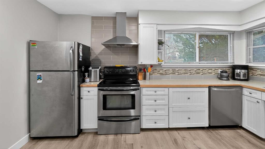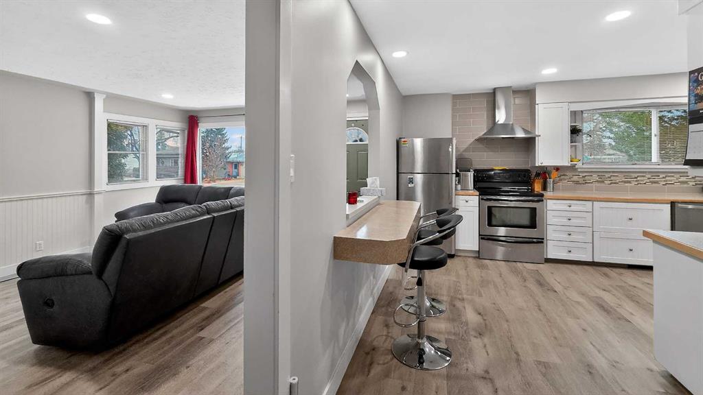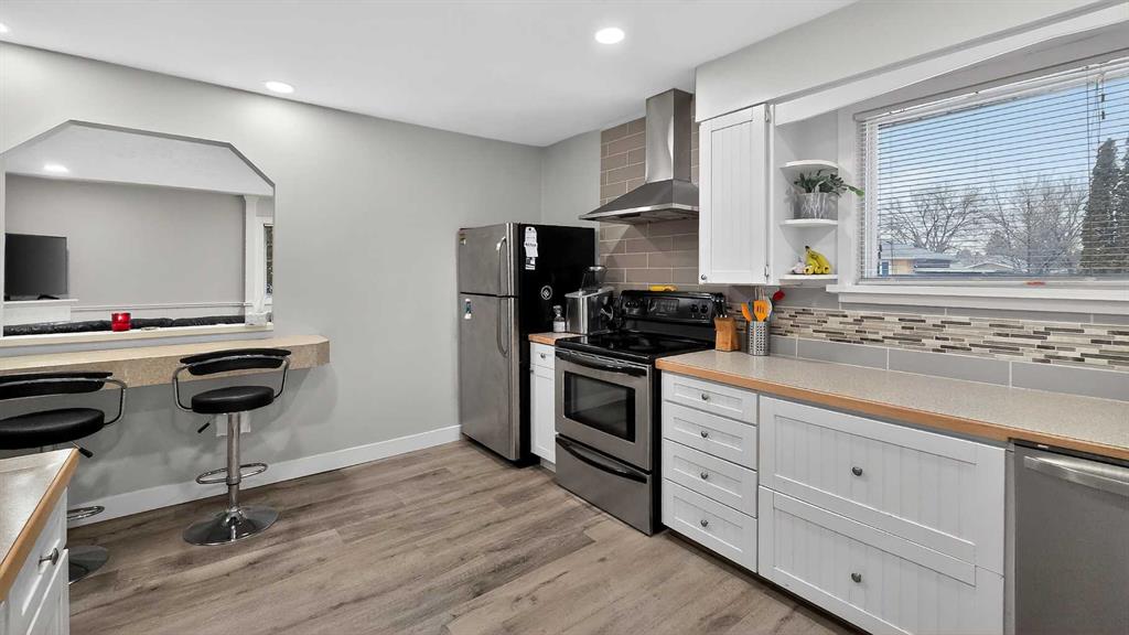 This legal two unit Dwelling Now Available! Attention first-time homebuyers and savvy investors! Don’t miss out on this fantastic opportunity to live upstairs and rent out the lower level, or rent both units for maximum income potential. This charming raised bungalow features a bright main level with 2 generously-sized bedrooms and a beautifully updated 4-piece bathroom. The interior boasts new flooring, baseboards, and fresh paint throughout, creating a welcoming and modern vibe. Enjoy abundant natural light streaming through large windows, enhancing the spacious kitchen equipped with plenty of counter space, cabinetry, bar stool seating, and stainless steel appliances. The cozy living room, complete with a fireplace, offers the perfect spot to relax after a long day. A convenient laundry-bathroom combo finishes off the upper level. The basement mirrors the main floor, featuring another 2 bedrooms and a 4-piece bathroom. With large windows, this space feels bright and airy, and all windows are fitted with privacy-enhancing roll shutters. Step outside to your fully fenced and landscaped backyard, perfect for summer enjoyment under the shade of mature trees. The concrete patio area is ideal for a seating arrangement, and you’ll also find a super single garage along with off-street parking. For added convenience, the property features a 5-zone underground sprinkler system. Don’t wait—contact your agent today for more information and to schedule a showing!