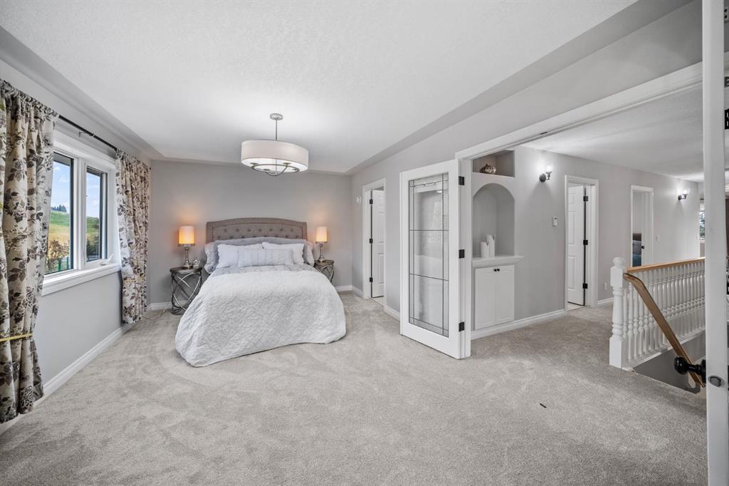 In Gleneagles, where the mountains follow you home and kids learn to ride bikes on quiet streets, sits a house designed for real life — the kind that’s full of morning coffee on the deck while taking in the mountain views, and laughter drifting in from the hidden park just beyond your backyard. From the front, this home feels welcoming. A wide driveway, double garage, and a sunny upper balcony hint that there’s space here — for cars, for guests, for life to unfold. Step inside to 4 beds, 2.5 baths and over 2500 sqft of living space. Everything feels fresh: brand-new carpet under your feet, hardwood, updated fixtures, freshly painted walls and ceilings. It’s the kind of home where you can unpack, exhale, and start living. The kitchen was built for families that gather. Granite countertops, a large island w/prep sink, a full-height stone backsplash — and then the little touch that makes everyone smile: a custom bar nook. Coffee spot in the morning, an evening drink after dinner, or a place where homework happens while cookies cool on the counter. Oversized windows fill the main floor with sunlight, and the living room fireplace draws everyone in. Beyond the windows, green space stretches out. Open the door, and there’s a two-tier deck made for birthday parties, late-summer dinners, and every BBQ in between. Mature landscaping keeps things private, and the kids? They have their own secret world just steps away — a hidden park they can reach without crossing a single street. Upstairs, life keeps unfolding. A west-facing bonus room with balcony access means sunrise coffee… and sunsets that make you pause. Four bedrooms stretch across the upper floor, including a primary suite built for tired parents who finally get a moment to themselves: French doors, a second fireplace, a jetted tub, dual sinks, and a walk-in shower. Downstairs, the house is ready to grow with you. A framed bedroom, cold storage, wet bar rough-ins, and a roughed-in bathroom with the tub already installed — finish it now, or save it for later. But here’s the part most homes can’t compete with — the part you don’t see at first glance, but you feel every day: This home was built with comfort and efficiency in mind. A head-to-toe, whole-home boiler system with 17 individually controlled heating zones runs in-floor heat through every level — including the garage. The entire system — boiler, manifold, automated controls — was replaced in 2022. What does that mean for you? No cold floors. No uneven temperatures. No wasted energy. Just steady, quiet warmth… and noticeably lower heating bills every month. Paired with a professional-grade HRV system, the air stays fresh, clean, and balanced — something you appreciate every time winter hits and the house still feels light and breathable. Even the garage has its own perks: heated slab, and two plumbed floor drains tied into town sewer, so melting snow and wet vehicles are never a problem. This isn’t just a beautiful house. It’s a smart one. A warm one. A home.
