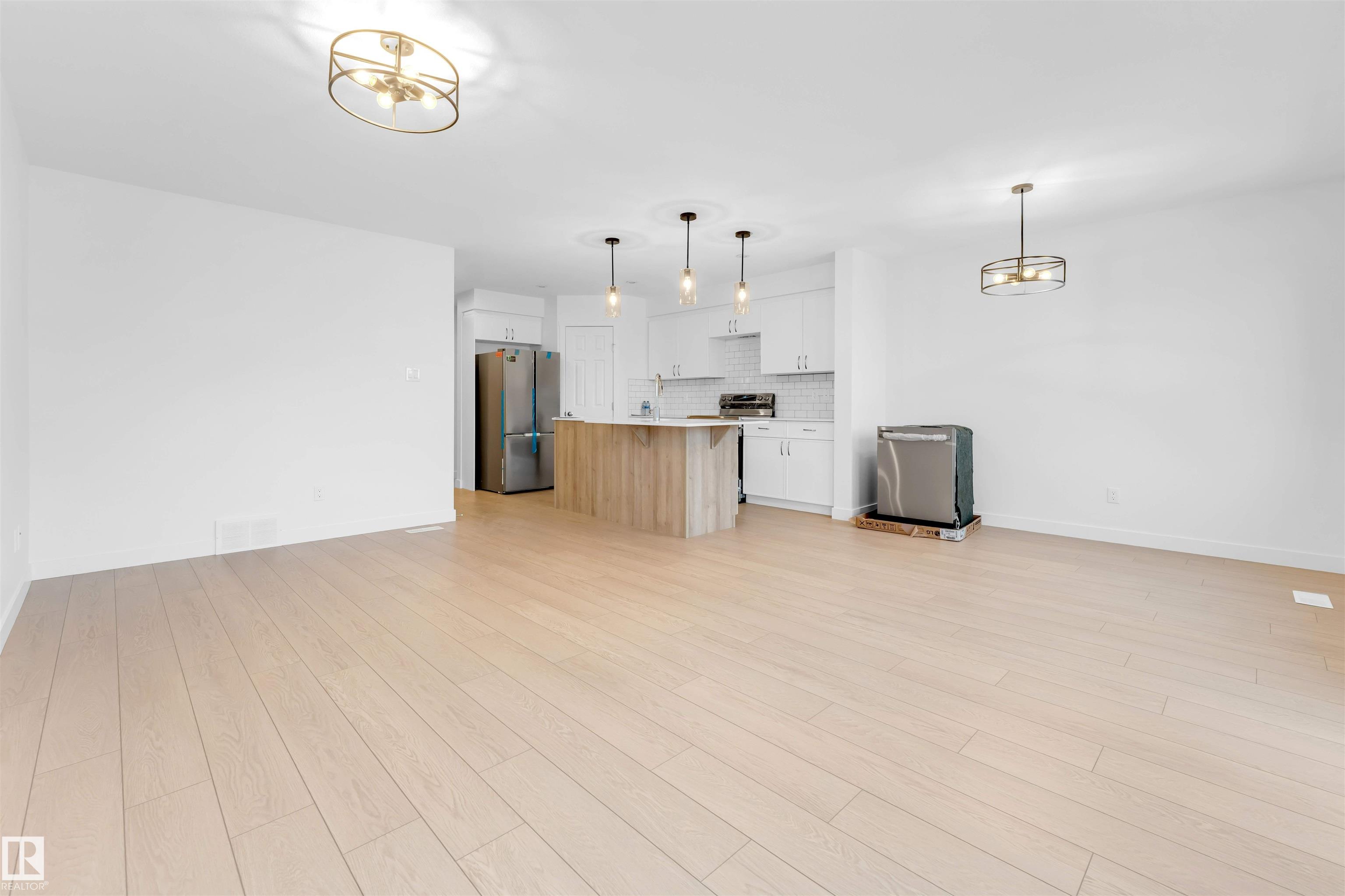Welcome to this newly built ready-to-move in 3 bedroom, 2.5 bathroom duplex with double attached garage in The Uplands, offering over 1,400 sq ft of stylish, functional living space with modern finishes and a separate side entrance to the basement for future development potential. The bright open concept main floor features spacious living and dining areas, ideal for everyday family living and entertaining and Contemporary kitchen with sleek two tone cabinetry, ample counter space, and central island. Upstairs you will find 2 comfortable bedrooms with a 4 pc main bath, stacked laundry and a large primary suite with walk-in closet and ensuite. Perfect for First Time Home Buyers and Investors, this home is ideally situated near parks, trails, and quick access to Anthony Henday Drive for easy commuting and short drive to shopping, schools, and recreation amenities in West and Southwest Edmonton.