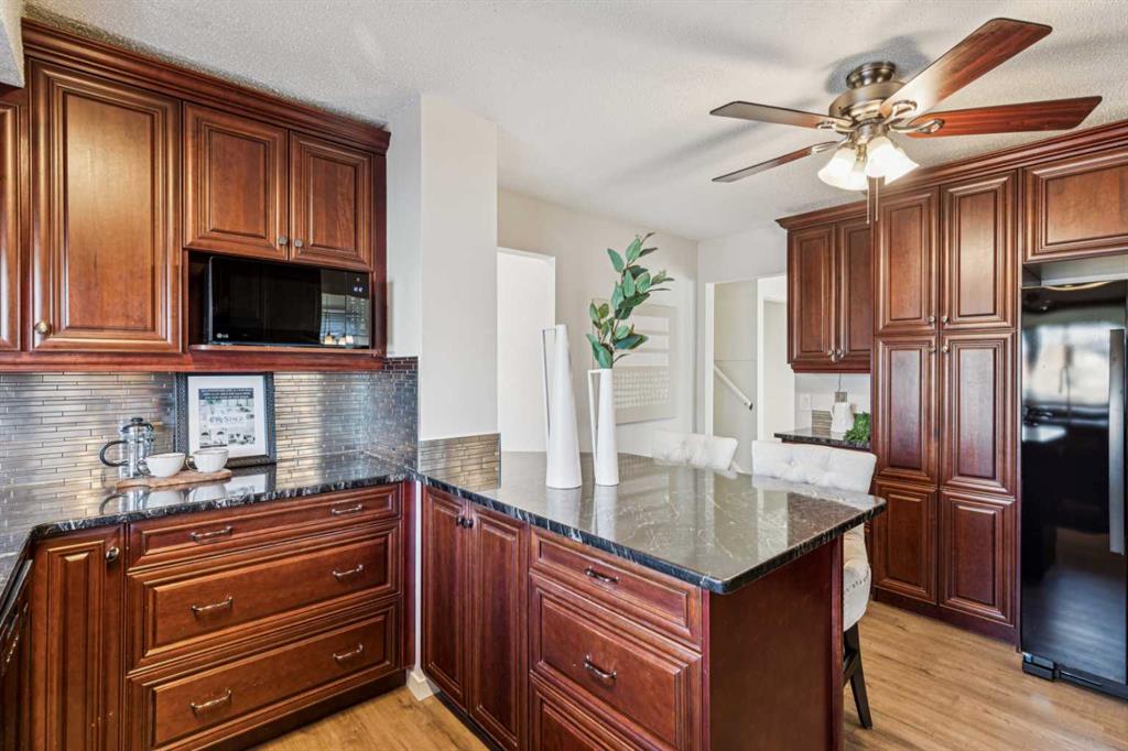 OPEN HOUSE - Saturday, February 7 from 1:00–4:00 - Backing directly onto Sam Livingston Elementary School field and expansive green space, this beautifully renovated four-level split delivers space, privacy, and an exceptional Lake Bonavista lifestyle. Built by New West Homes with the desirable Camelot floorplan, this well-maintained property has seen extensive updates including new LVP flooring, new carpet, fresh paint, updated windows, and modern mechanicals—making it truly move-in ready. The welcoming foyer opens into a bright, spacious living room with large windows and plenty of room for everyday family living, flowing naturally into the adjoining dining area. The kitchen is set apart for functionality and features Kitchen Craft cabinetry, Titanium granite countertops, a peninsula for added prep space, and a brand-new fridge. Just around the corner, access the backyard oasis complete with a deck, generous lawn, paved alley access, and a detached double garage—perfect for families and entertainers alike. The first lower level is below grade and offers over 476 sq ft of finished space, continuing the LVP flooring and providing a large bedroom, comfortable family room, convenient laundry area, and a 2-piece bathroom. The second lower level, also below grade, adds an additional 655 sq ft of finished space with a wide-open recreation room featuring plush carpeting—ideal for a media room, gym, or play space—along with an impressively spacious utility room offering excellent storage. The top floor hosts three full bedrooms, including a primary retreat with a 2-piece ensuite, plus a centrally located 4-piece bath. Additional highlights include a high-efficiency furnace (replaced in 2019, includes 12 year maintenance contract), A/C (replaced in 2020), updated front and back doors, recently cleaned furnace, and long-term pride of ownership since 1992. Lake Bonavista is one of Calgary’s most iconic communities, offering year-round lake access for swimming, skating, fishing, and community events. With excellent schools such as the French Immersion Sam Livingston School, mature trees, strong community spirit, and close proximity to shopping, transit, and major roadways, this is a neighbourhood where families truly thrive.