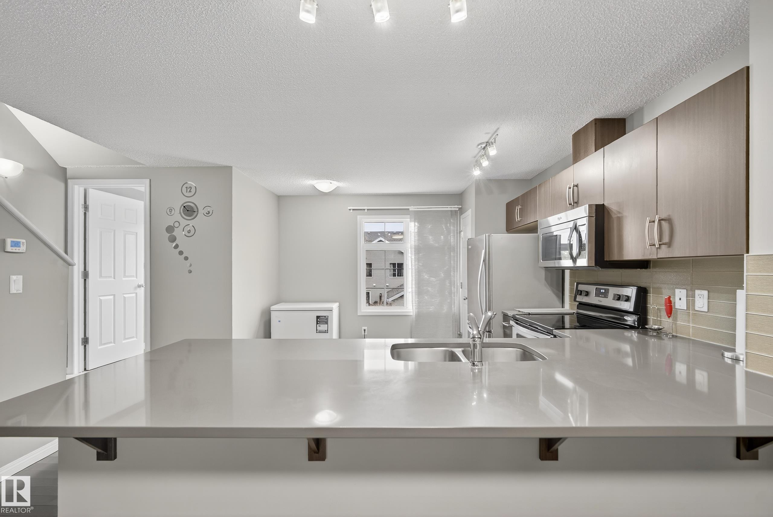 Rare open concept floor plan , VERY APPEALING AND SPACIOUS LAY OUT. SHOWS 10/10. This modern and move-in ready 3 bedroom townhome with double attached garage is ready to be yours. Perfect for a first-time buyer or investor, thanks to the spacious open-concept layout, charming front yard, and low condo fees. This Summerside beauty features a main floor with front and back windows, a large living/dining area, and a kitchen with stainless steel appliances, granite countertops, pantry, and access to the back patio. A convenient 2 pc bathroom is also located on the main level. Upstairs has a main 4 pc bath, the primary bedroom with walk-in closet and ensuite, plus two more bedrooms. On the lower level you’ll find access to the garage, laundry, and extra storage.
