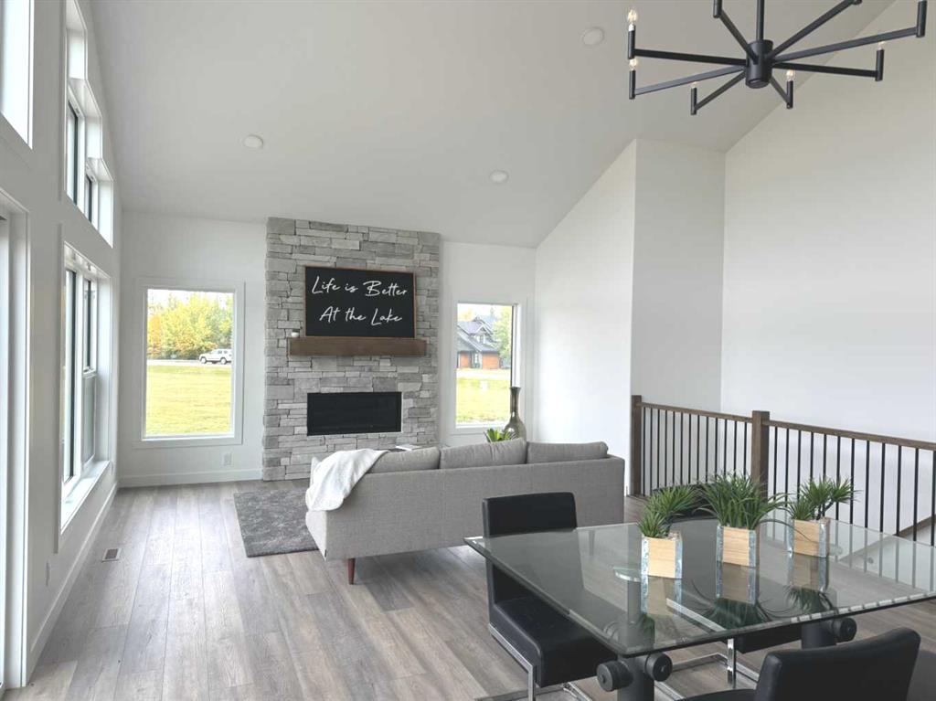 DOUBLE DETACHED GARAGE INCLUDED! This Brand new home built by Asset Builders is the perfect getaway from your stressful life, for full time or part time living! Imagine boating/kayaking or fishing in the summer, or ice skating, snowmobiling, ice fishing in the winter months! No neighbors behind you & less than 3 min walk to the canal with walking trails close by, 5 minute walk to the cute store/sandwich shop, this BUNGALOW is in the perfect family community of Meridian Beach. You will be delighted with this large covered 20'x10' front porch w/aluminum railing to catch the afternoon & evening sun . Step inside this spacious front entry, a perfect size for you & your guests that opens up to this amazing open floor plan with a vaulted ceiling & multiple triple pane windows throughout to bring in the natural light. Check out the ceiling height! This large kitchen with wood cabinetry & tons of countertop space (all in quartz), features an island w/extended countertop & walk in pantry. 4 upgraded appliances are included. Friends & family will want to stay forever in this dining room & living room that features a cozy gas fireplace, or have breakfast & dinner on the ABSOLUTELY HUGE back 36'x10' deck with a view to the community baseball diamond behind. Get the joy of community living but privacy as well. Master bedroom is a good size with a large walk in closet & an ensuite bath that features a custom tile shower & double vanity sink. Bright 2nd bedroom also features it's own walk in closet. Full bath & side by side laundry area are on this floor. Basement unfinished, planned for 2 more bedrooms w/walk in closets, another full bath & a huge family room w/wet bar that is almost half of the full basement in size. Outside to your yard, with a 24'x24' detached garage, stucco & shingled to match the house, with a man door, window & 16' garage door, with electrical completed (currently staked out, to be started weather permitting) Privacy & luxury, the perfect full time home or part time getaway! Easy Access to the canal where you can purchase a spot for your boat!