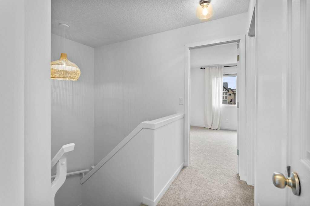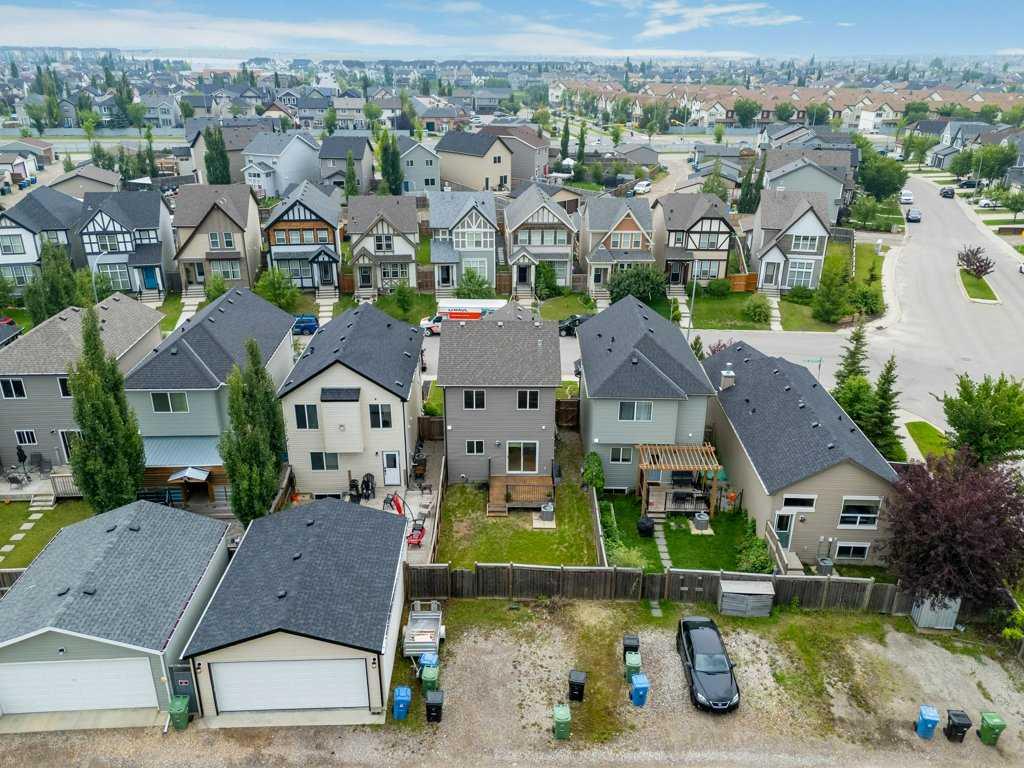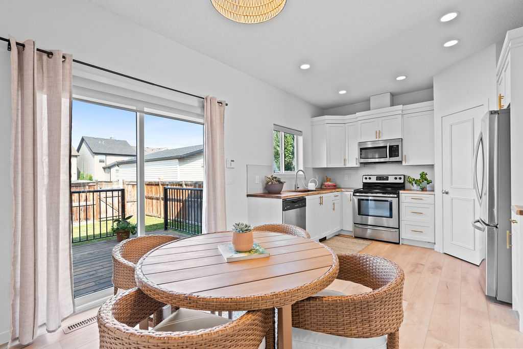 Welcome to this beautifully updated two-storey home tucked away on a quiet street in the vibrant community of New Brighton. Extensively updated in recent months, this charming home features stylish new vinyl plank flooring on the main level, a cozy gas fireplace with a trendy mantle in the great room, and a bright kitchen with white cabinetry & new gold hardware, acacia wood countertops, white tile backsplash, a corner pantry, and stainless-steel appliances. The spacious dining nook opens to the backyard deck, perfect for entertaining, while the main level also includes a convenient half bath and laundry area. Upstairs offers fresh carpet, new lighting, and paint throughout, along with a spacious primary bedroom, two additional well-sized bedrooms, and a 4-piece bathroom. The recent updates give the home a current, modern feel throughout. Central A/C keeps things comfortable year-round, and the unfinished basement provides a blank canvas for your personal touch. The fully fenced yard is ideal for pets or play. Located just steps from a playground and close to schools, shopping, and transit, plus access to New Brighton’s amazing amenities including a community centre, splash park, skating rink, and more! This home combines comfort, style, and convenience in one perfect package.