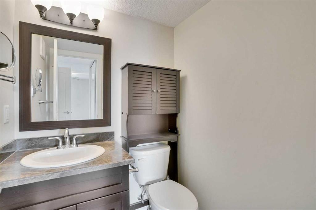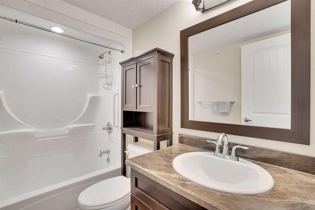 Welcome to this beautifully maintained 2-bedroom condo located in the heart of Diamond Valley. This bright and inviting unit offers the perfect blend of comfort and convenience, making it ideal for first-time buyers, downsizers, or investors. Step inside to discover fresh paint and new luxury vinyl plank flooring throughout the kitchen, living area, and hallway, creating a clean, durable, and stylish living space. The functional layout features a spacious living area, a well-appointed kitchen, and two generously sized bedrooms. The second bedroom includes a Murphy bed and desk, originally priced at over $4,000, adding both flexibility and value to the space. A dedicated in-unit laundry room provides everyday convenience along with additional storage space. This unit also includes secure underground parking for year-round comfort and peace of mind. Adding even more practicality, the condo comes with two storage units located on either end of the balcony, offering rare and valuable extra storage. Residents of this well-cared-for building enjoy access to a variety of amenities, including a fully equipped fitness area, a welcoming common room perfect for hosting gatherings, and a cozy library space ideal for quiet relaxation. Situated in a prime location, this condo offers easy access to everything Diamond Valley has to offer. Enjoy nearby parks, walking paths, and local shops, along with essential services including a hospital, schools, and recreational facilities. Known for its friendly community atmosphere and stunning natural surroundings, Diamond Valley offers quick access to the foothills and endless outdoor adventures. Whether you're looking for a comfortable place to call home or a smart investment opportunity, this move-in-ready condo delivers exceptional value in a growing and vibrant community.