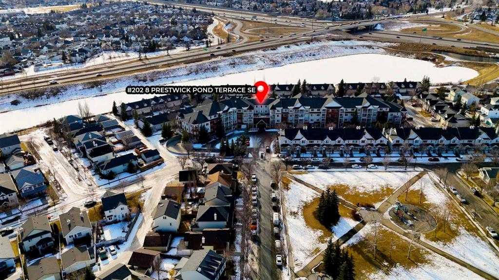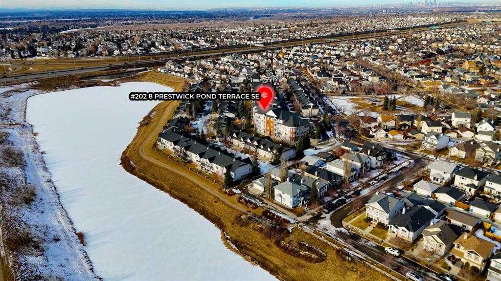 Open House! Saturday, March 14th, 2026, from 1:00 PM to 3:00 PM. ***6 MONTHS FREE CONDO FEES INCLUDED! *** Stunning 2 bed 2 bath CORNER unit in beautiful McKenzie Towne – Welcome home to 202 - 8 Prestwick Pond Terrace. This unit has been impeccably maintained in the sought-after Caledonia on the Waterfront complex. The open-concept living space welcomes with plenty of natural light and neutral colors. The well-designed kitchen features granite countertops, maple cabinetry & center island with seating overlooking the spacious living area and new luxury vinyl plank flooring. The adjacent dining area is framed by bay windows & offers access to the private outdoor balcony. The primary bedroom is generously sized, featuring a 4-piece ensuite bathroom and a walk-in closet with new carpet. A second bedroom, 3-piece bathroom with walk-in shower, and enclosed laundry complete the space. Additional building amenities include a quiet, pet-friendly complex, secure underground parking, and common living/dining/kitchen/library – perfect for gathering with family & friends. This prime location means you can walk to incredible dining & shopping, minutes to 130th Ave amenities, and easy access throughout the city on nearby Deerfoot & Stoney Trail. Enjoy the beautiful pond right outside, as well as walking and biking on local pathways. Book your viewing today!