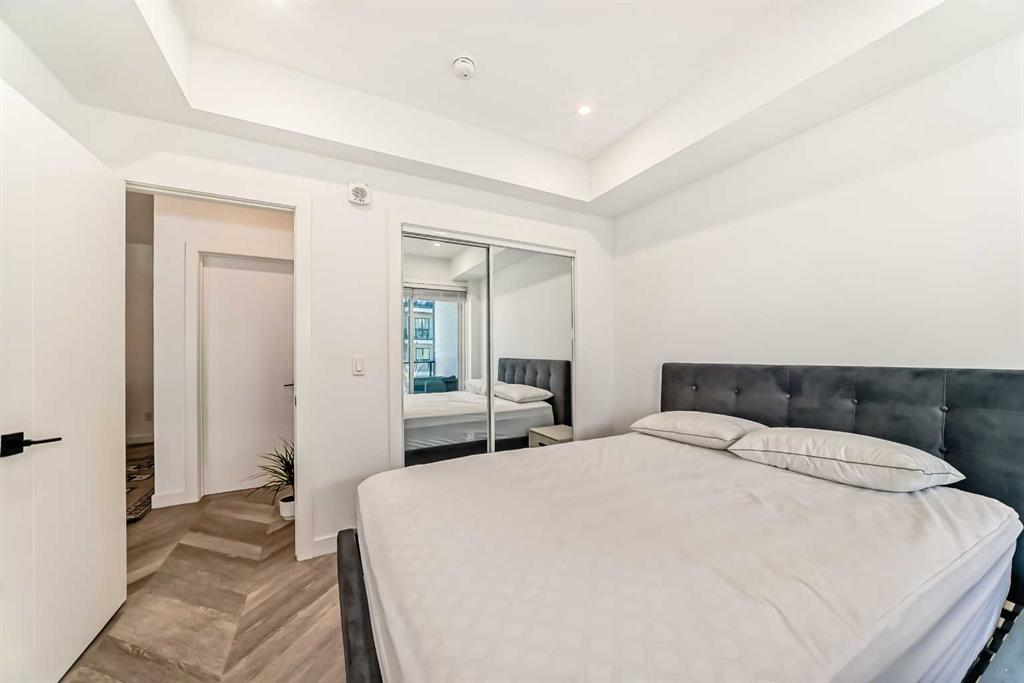 Prime University District Condo – Location and Lifestyle! Welcome to this beautifully designed 2nd floor, 2-bedroom, 1-bathroom condo located just minutes from the University of Calgary, in the heart of the dynamic University District. This home is an exceptional opportunity for first-time buyers, investors, or anyone seeking a high-value, connected urban lifestyle in one of Calgary's premier communities. Step into a bright and spacious open-concept layout featuring large windows in the living room that optimize natural light. The contemporary kitchen is a chef's delight, boasting luxurious quartz countertops, full-height cabinetry, built-in and stainless steel appliances—perfect for daily living and hosting guests. Both bedrooms are generously sized, offering excellent privacy and comfort with a sleek modern bathroom. Ownership includes your own spacious private balcony—ideal for morning coffee or relaxing evenings—as well as the indispensable convenience of in-suite laundry and a highly valuable titled underground parking stall and assigned storage locker. As an owner, you gain the convenience of being steps from shops, cafes, green spaces, and public transit. With the University of Calgary just a short walk or bike ride away, this investment offers unmatched lifestyle and location appreciation potential. Don’t miss your chance to own a stunning, turnkey condo in the sought-after University District. Start building equity today!