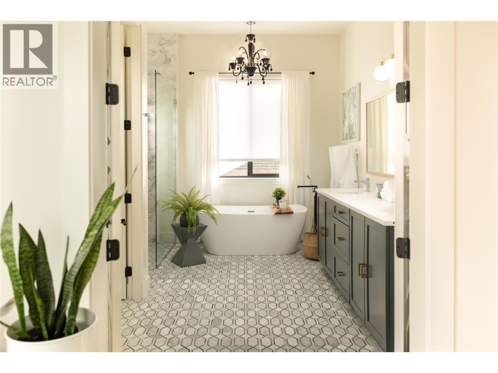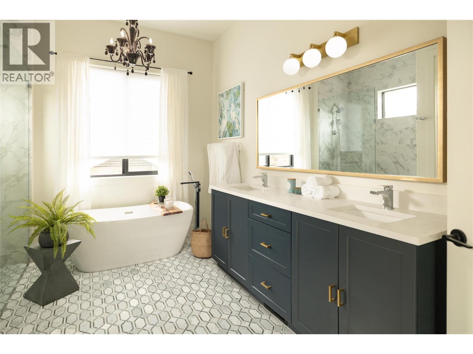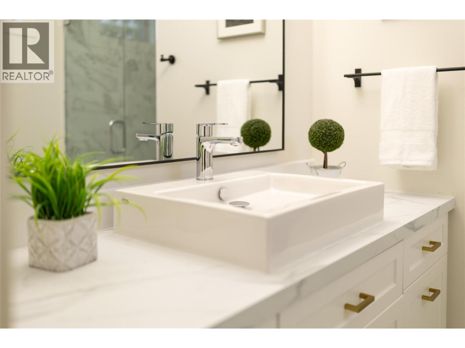 A meticulously crafted, custom-built residence where timeless West Coast inspiration meets the relaxed elegance of the Okanagan—just steps from the beach and surrounded by mature greenery in one of the area’s most coveted walkable neighbourhoods. Influenced by classic Kitsilano architecture, the exterior blends natural stone and wood, creating enduring curb appeal. Inside, soaring 12-foot ceilings and luxurious wide-plank flooring establish a calm, architectural presence throughout. The main level unfolds into an impeccably designed open-concept living space, created for both everyday ease and elevated entertaining. A striking 11.5-foot island anchors the kitchen, complemented by premium appliances, Dekton countertops, and a generous walk-in pantry. Dining and living areas are thoughtfully centred around a custom fireplace, while arched doorways provide a classic architectural feel. Glass doors extend the living space outdoors to a private backyard sanctuary featuring a heated, saltwater in-ground pool, expansive patio areas for gathering, and dedicated she shed and he shed spaces—ideal for work, wellness, or creative pursuits. Upstairs, a wide staircase with integrated lighting leads to a serene primary retreat designed for privacy and restoration. The ensuite is beautifully finished with quartz countertops, a sculptural soaker tub, dual vanities, a seamless glass shower, and heated flooring. Three additional bedrooms and two thoughtfully finished bathrooms complete the upper level. A fully self-contained, legal two-bedroom suite with private entrance, its own laundry, and a bright living space adds flexibility while maintaining separation and discretion. Just minutes from beaches, parks, shops, and the lake—this home offers a rare balance of refined living and daily convenience in one of the Okanagan’s most desirable settings.