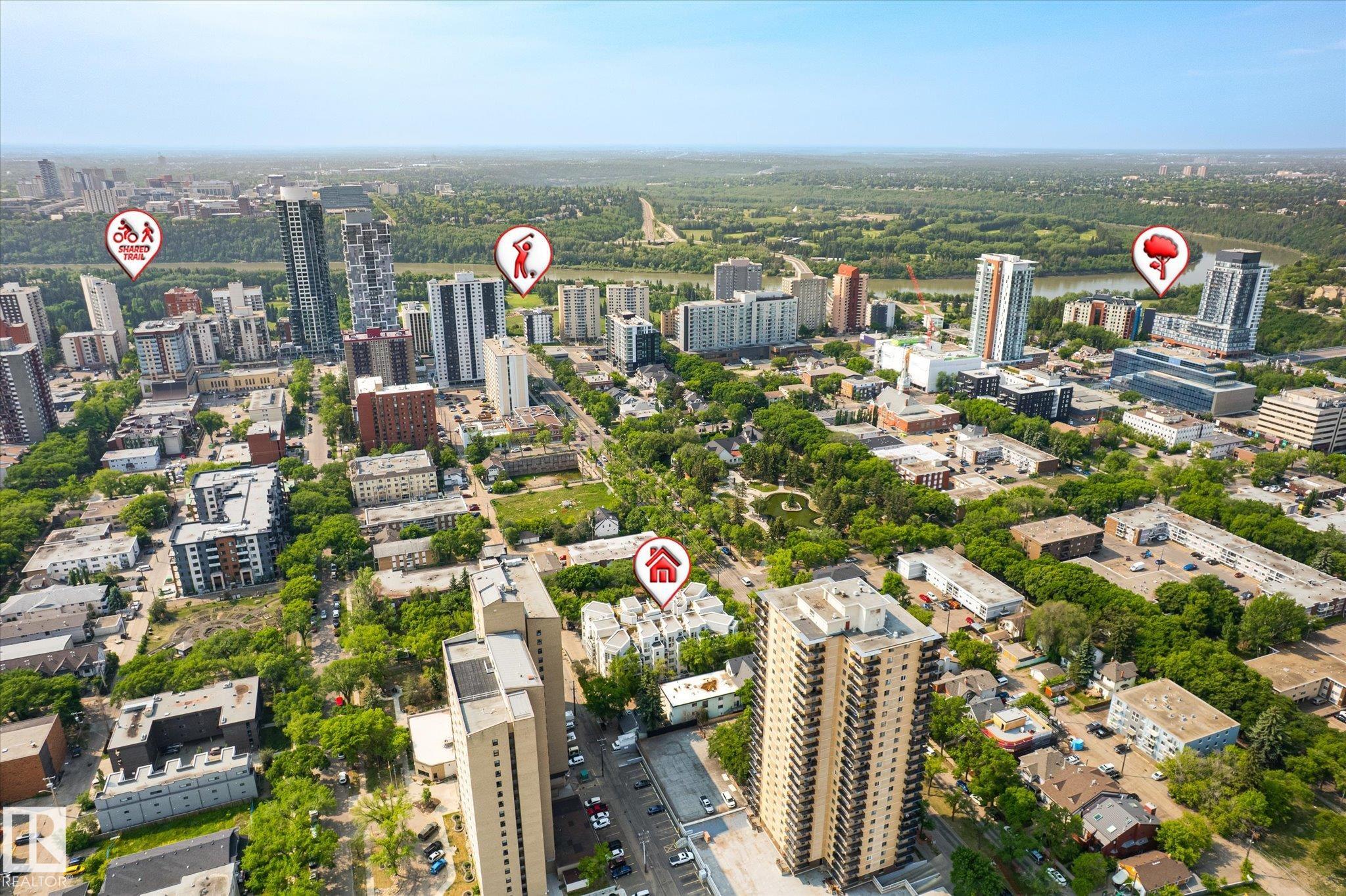 Walk to everything from this central location in Oliver. Impeccably maintained bright and spacious unit with balcony. The living space welcomes you in with updated flooring. Tons of counter space in the kitchen highlighted by white cabinetry with ample counter and storage space. Nicely equipped with stainless steel appliances. The living room boasts a gas burning fireplace and patio doors that lead to a large covered patio. Enjoy a sunny or rainy day here! The master bedroom also features a walk in closet and 3 piece ensuite. The second bedroom has ample light with two windows. There is a full 4 piece bathroom and in-suite laundry with some storage. The underground parking stall has a storage locker in front and there are also 2 visitor underground stalls. Excellent location close to amenities and transit. Easy access to Brewery District, MacEwan University, public transportation, 124 street restaurants and galleries, the River Valley, Oliver Pool, Paul Kane Park and shopping.