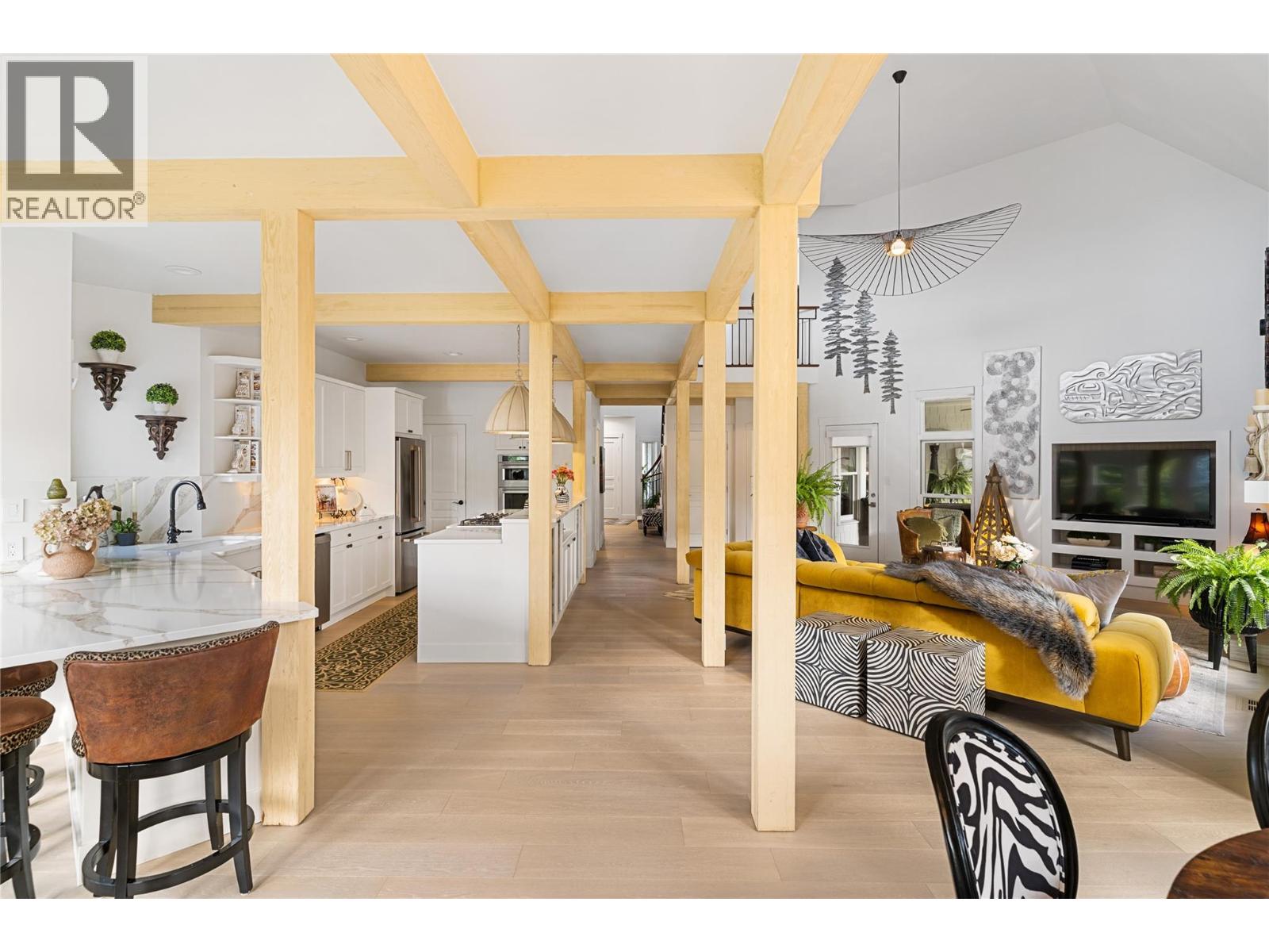 Modern European Luxury Redefined on Dilworth Mountain. This stunning home has been completely reimagined from top to bottom -every surface, finish, and fixture has been beautifully renewed. Wide-plank flooring, designer lighting, and a sleek custom kitchen with quartz counters and high-end appliances set the tone. The open-concept design features architectural beams and elegant details that bring warmth and sophistication. The main-floor primary suite is a serene retreat, while the lofted upper level-with its charming sloped ceilings -offers two spacious bedrooms and a flexible lounge area perfect for games, a gym, or guests. Downstairs is ready to be finished into an incredible media room. Set on a private lot surrounded by mature trees, this home is a masterclass in modern European style blended perfectly with Okanagan comfort.