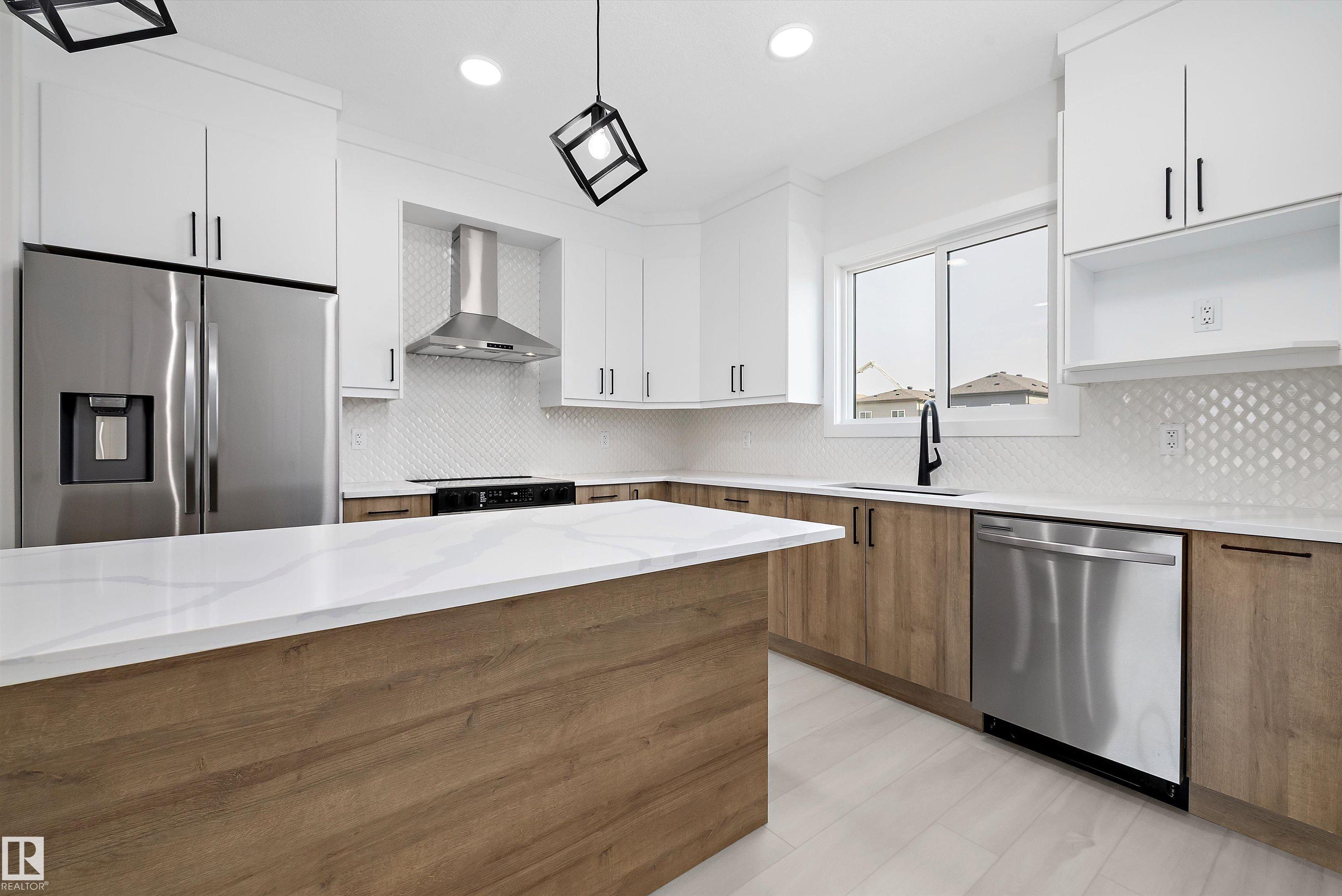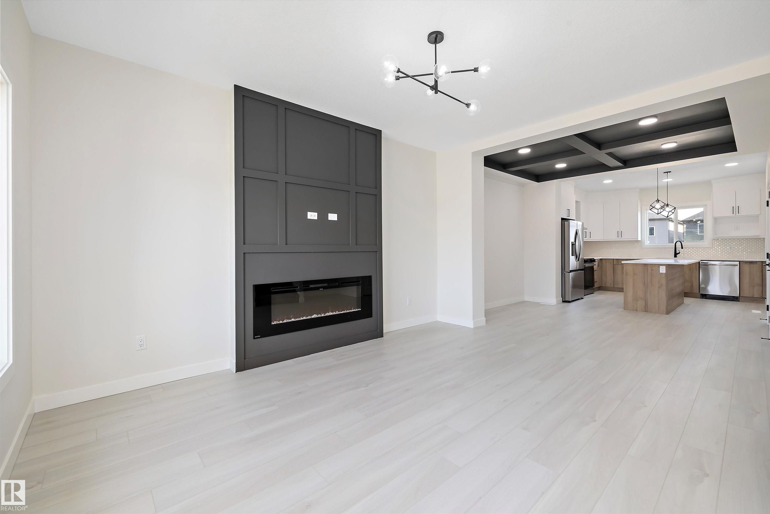 Welcome to this brand new 1590 SQFT Leeds model by award winning builder Blackstone Homes in upscale community of Kinglet, Big Lake. Upon entry, you will be welcomed by spacious foyer with huge great room with electric fireplace finished with feature wall. Dining room offers beautiful coffered ceiling, spacious kitchen offering up to the ceiling soft closing cabinets with ample counter space. Back entry offers a mudroom with built in bench & closet The 2nd floor offers 3 large bedrooms, 2 baths, bonus room & laundry. Master bedroom has feature wall and beautiful en-suite with good size closet. Other upgrades - Double detached garage, Separate entrance, rear deck with metal railing, 9' main/basement ceiling, MDF shelving, upgraded flooring, electrical & black plumbing fixtures, upgraded quartz, SS appliance included & New Home Warranty. Great location-close to Yellowhead and Anthony Henday, shopping, park and other amenities.