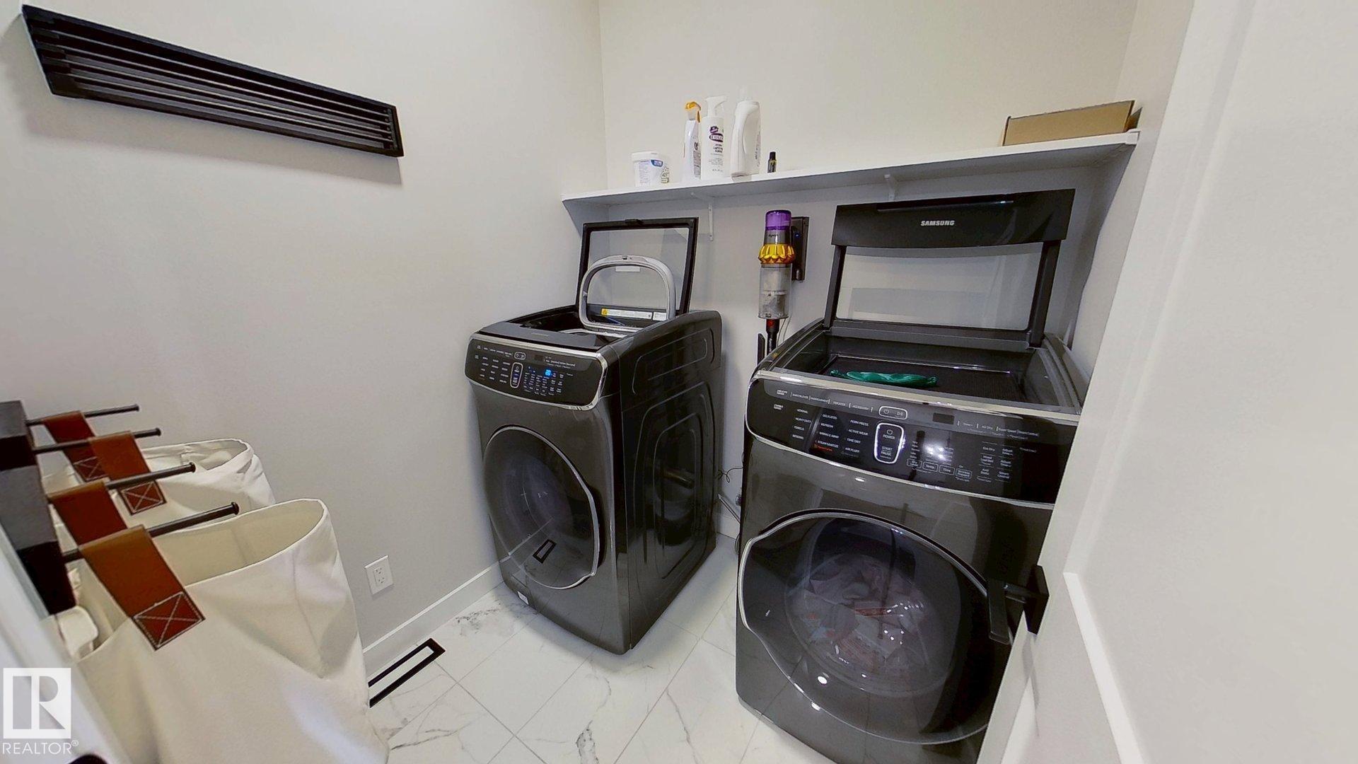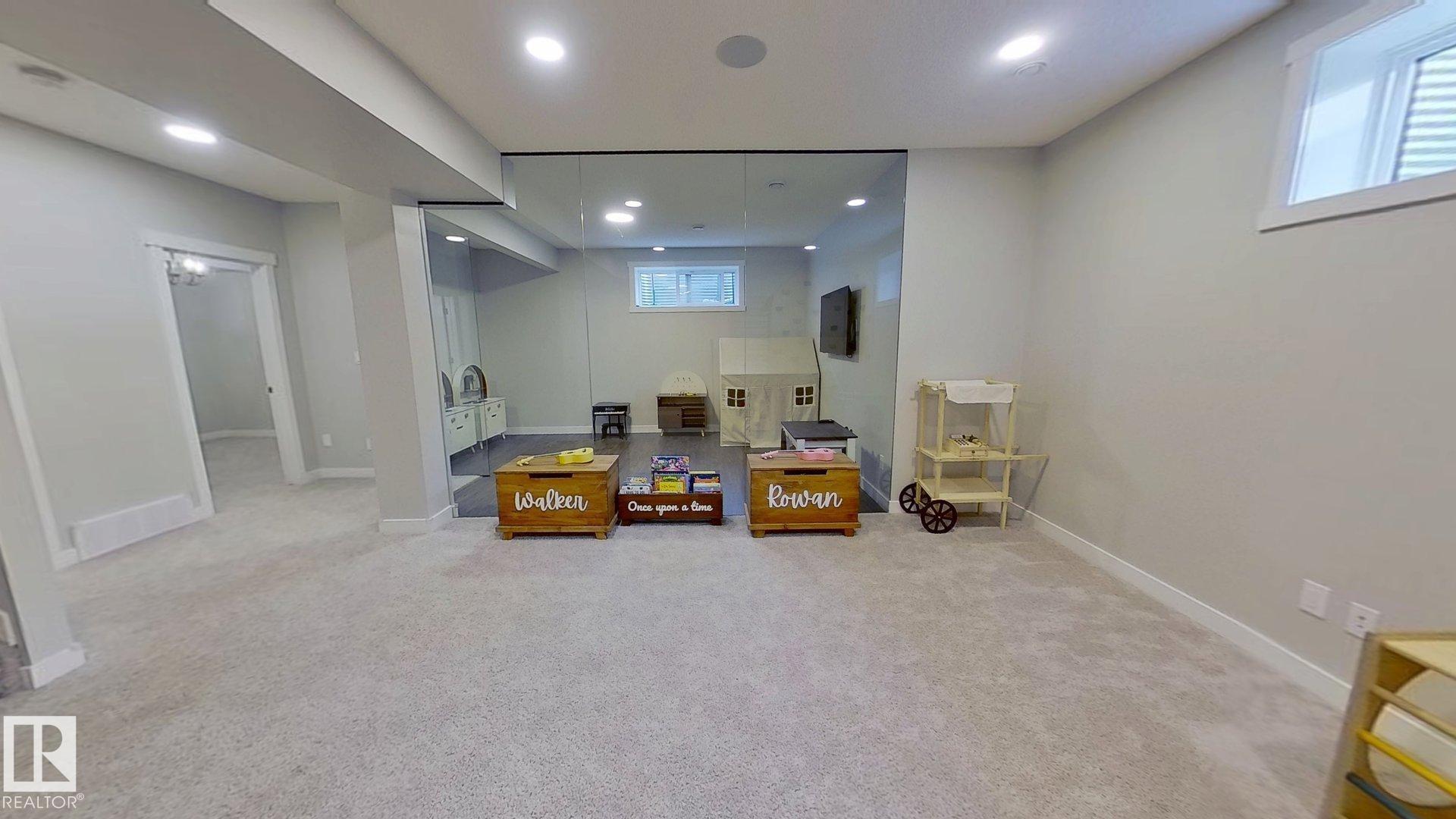 Welcome to this well-appointed 4-bed, 3.5-bath home, set on a large pie-shaped lot backing green space in South Edmonton, with over 3,500 sq ft of bright, comfortable living. Inside, you’ll find 9-ft ceilings on all levels, quartz countertops, upgraded appliances, vinyl plank and tile flooring (carpet in basement), and a built-in 5-zone speaker system. The chef’s kitchen offers ample counter space, a large butler pantry with ladder access, beverage fridge, wet bar, and a glass-enclosed wine wall. Upstairs, the spacious primary suite features a sitting area, wet bar, blackout coverings, steam shower, makeup desk, dual sinks with storage tower, and a private water closet. The finished basement includes a living area, gym space, bedroom, full bath, and large storage room. Outside offers a concrete sport court, two-tier patio, outdoor speakers, pergola, and backyard garage access. A heated oversized garage and extra-large driveway complete the home. Hunter Douglas coverings and drapery are included.