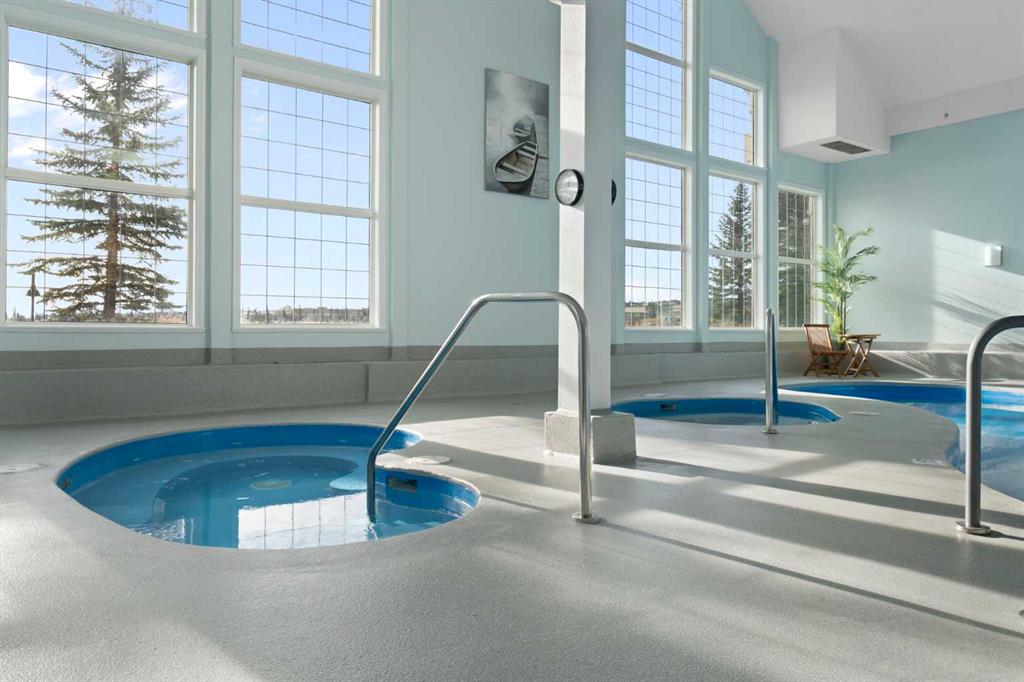 Welcome to Country Estates on the Cove, a well-managed 40+ adult community offering an exceptional blend of comfort, convenience, and resort-style amenities. This bright corner unit with 2 bedrooms and 2 full bathrooms is quite spacious with over 1300 sq ft of air conditioned living space. This former show home features a thoughtfully designed layout and includes one titled underground parking stall along with an assigned storage locker. Inside, the welcoming entryway opens into a spacious open-concept living and dining area, where a cozy fireplace creates an inviting atmosphere. Laminate flooring flows throughout the main living spaces, enhancing the home’s clean and modern feel. The kitchen is both functional and welcoming, with a corner pantry, a newer microwave and a breakfast bar, ideal for casual dining or entertaining. The primary bedroom offers a relaxing retreat with plenty of room to unwind with a large walk-in closet with built-in organizers. The lovely private 3 piece ensuite has an oversized walk-in shower and lots of counterspace and storage. The second bedroom is generously sized and located near the 4-piece main bathroom, perfect for guests or a home office. A spacious laundry room includes a stackable newer washer and dryer and ample storage space. Residents of Country Estates on the Cove enjoy access to an impressive array of amenities, including a fully equipped fitness centre, indoor pool, hot tub, recreation rooms, games area with billiards & shuffleboard, a bowling alley, theatre/movie room, libraries, woodworking shop, and crafts room. Guest suites are available for visiting family and friends, and the buildings also offers several elevators and a convenient car wash bay. Ideally located near shopping, parks, ponds, green spaces, and scenic walking paths, with easy access to Deerfoot Trail, Stoney Trail, public transit, and the airport, this home offers low-maintenance living in a welcoming, amenity-rich community. This is the perfect retirement home without sacrificing space!