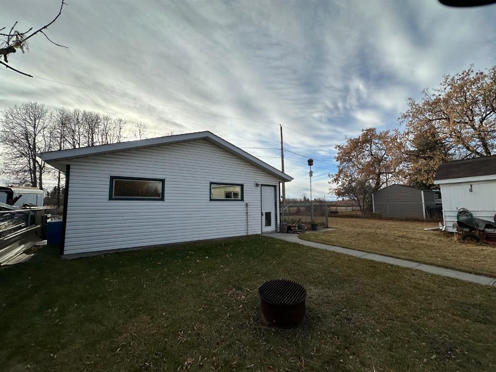 Why RENT? This affordable home with 1,280 sq. ft. of inviting living space offers a blend of comfort, affordability and practicality. The bright kitchen and dining area make it easy to gather the family for breakfast or linger over supper, while the spacious family room addition invites you to curl up by the gas stove and watch the snow fall outside. There are three comfortable bedrooms, including a primary suite with a walk-in closet that’s big enough to actually use — not just look at. Upgraded VInyl clad windows through most of the home, with a metal roof and vinyl siding offering minimal maintenance! Outside, the yard is everything you’d hope for — An oversized lot with over 7,300 sq. ft. of fenced privacy, mature trees for shade, plenty of space for a garden, and no neighbours behind offering peace and privacy! Whether you’re relaxing with a coffee on the deck or watching your pets play, this yard just feels right. If you love to tinker or work with your hands, the oversized insulated and heated oversized double garage has back alley access and is a dream come true. With 220 power, it’s ready for your projects, hobbies, or a full-on workshop. There’s even extra parking both front and back for all your an RV or your toys. And when you’re ready to head out, you’re just steps from the walking trails along Bearberry Creek — perfect for a quiet stroll to the playground, schools, pool, or arena. The home sits on a quiet cul-de-sac, only a block from the grocery store, in a neighbourhood that’s peaceful and welcoming. If your tired of paying rent, invest in yourself! Come view today!!