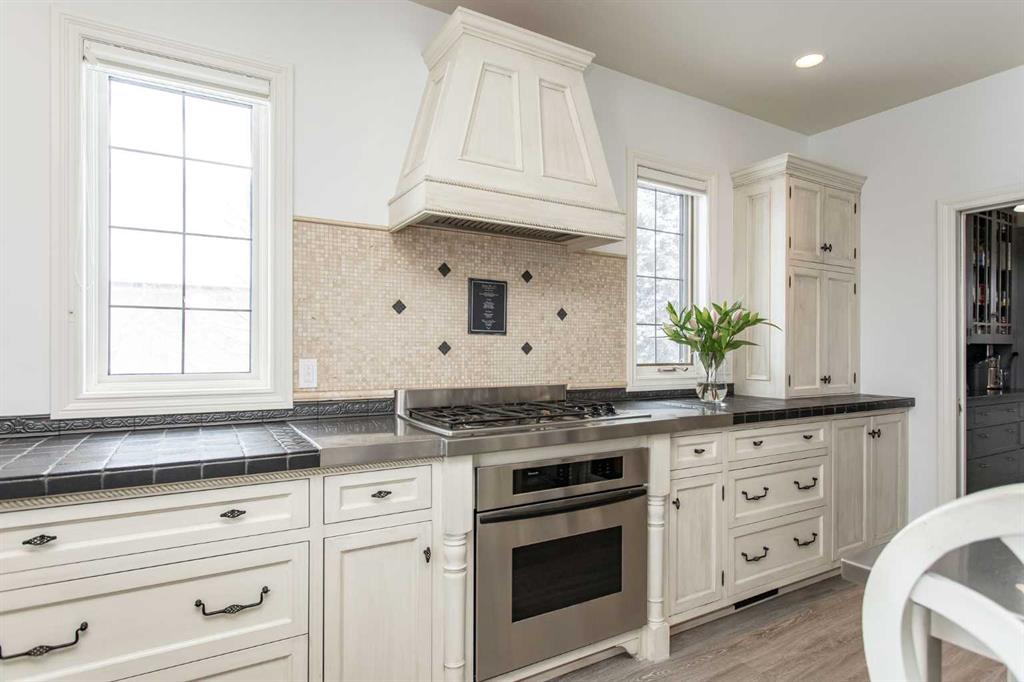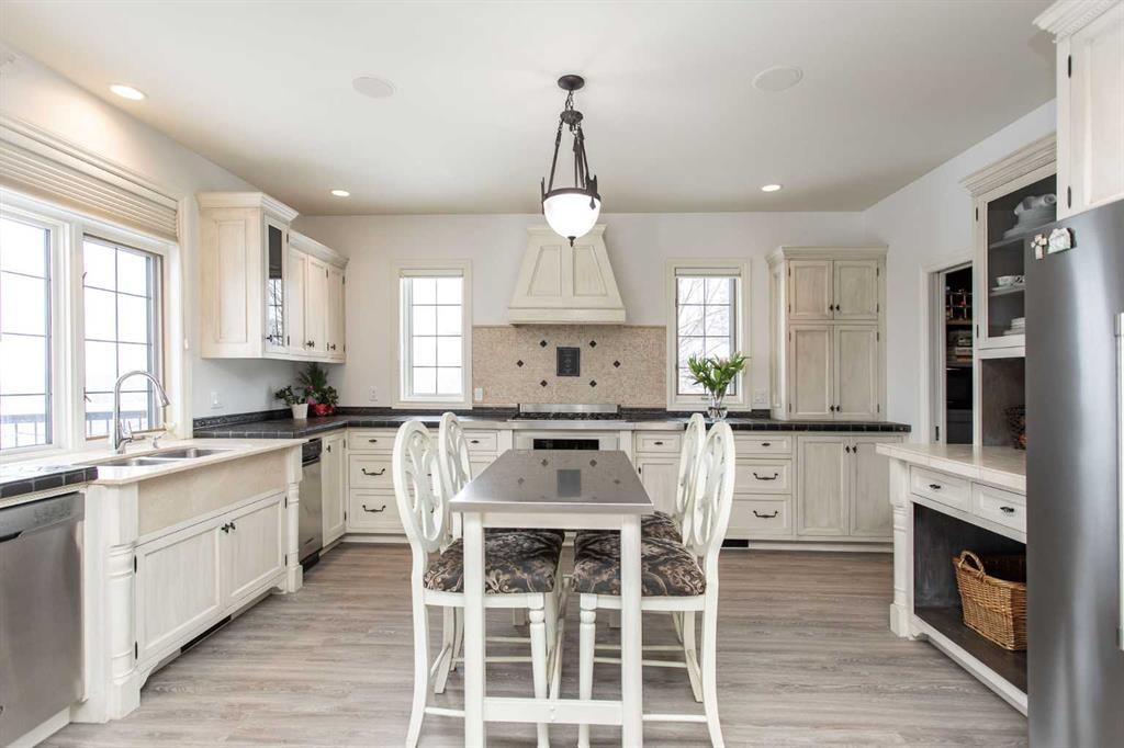 ~IMPRESSIVE ESTATE PROPERTY~ in the beautiful subdivision of BURBANK HEIGHTS! Situated on 2.99 acres, with BREATHTAKING VIEWS. This home offers privacy, AFFORDABILITY and room to grow! Greeted by a spacious slate entrance, that leads to a BRIGHT BEAUTIFUL OPEN CONCEPT. From the living, dining and kitchen all you can see is BLUE SKIES, wildlife, and feel the peace and serenity all around. The main floor has newer LUXURY VINYL PLANK, all freshly painted walls and tastefully decorated. A gas fireplace in the living room with stone surround, from floor to ceiling, with a beautiful wood mantle, ceiling fans, and large windows, open to the dining room that features a door to the MAINTENANCE FREE MASSIVE DECK. There is a spacious kitchen that features a wall oven, gas cook top, hood fan, and built in dishwasher, (all stainless steel) A beautiful black stone countertop, abundance of counter space, and travertine backsplash. A walk-in pantry with built in cabinets, washer, dryer and sink. Main floor also features a 2-piece powder room, and rear entrance to the back yard with bult in locker space and bench. Upstairs, features incredible large bedrooms, the master has two closets, his/hers, ceiling fan, built in storage cabinets, and a stunning 5-piece ensuite. There is an oversized soaker tub, newer tiled shower, and dual sinks. There are three more bedrooms, two are located at the front and the third is at the back, (currently used as office space) but its enormous size would be ideal for a bonus room for the entire family. In the fully developed basement, you will appreciate the functional floorplan and the perfect area to entertain friends and family, with a full-size wet bar, built in cherry cabinets and tv/ games room, all with OPERATIONAL IN FLOOR HEAT. The basement also features a 5th bedroom that has a built-in desk area, walk in closet and room for two queen beds. There is a 3-piece bath, with walk in custom tiled shower. Located in the front with incredible views is your 4-season tiled sunroom, currently used with gym equipment, and space for children and grand children. An endearing property both inside and out! A double HEATED ATTACHED GARAGE has a man door to the back yard, and a DOUBLE HEATED DETACHED GARAGE. The detached garage has a GUEST HOUSE above featuring a full-size kitchen, vaulted ceilings, living room, a large bedroom with a walk-in closet and finally a beautiful 3-piece bathroom. The guest home also has its own laundry facility. Outside you'll appreciate your very OWN GARDEN, garden shed and SOUTHWEST EXPOSURE!