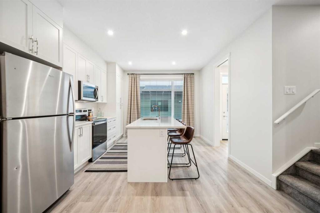 3-Bed, 2.5-Bath Townhome in Hudson, Greystone – 1,434 sq. ft. Welcome to Hudson in ZEN Greystone, a vibrant and walkable community in the heart of Cochrane. This beautifully designed 3-bedroom, 2.5-bath townhome offers 1,434 sq. ft. of modern living with NO CONDO FEES! The open-concept main floor features a spacious kitchen with stainless steel appliances, quartz countertops, and a large island that flows into the dining and living areas — perfect for entertaining or relaxing with family. Upstairs, the primary bedroom includes a walk-in closet and an ensuite with a double vanity, while two additional bedrooms, a full bath, and upper-floor laundry add everyday convenience. Additional highlights include a fenced backyard, rear parking pad, and full-size basement with optional development for added living space or storage. Located close to pathways, parks, tennis courts, Cochrane Pickleball Club, SLS Centre, off-leash dog park, Co-op, Bow RiversEdge Campground, and Downtown Cochrane!