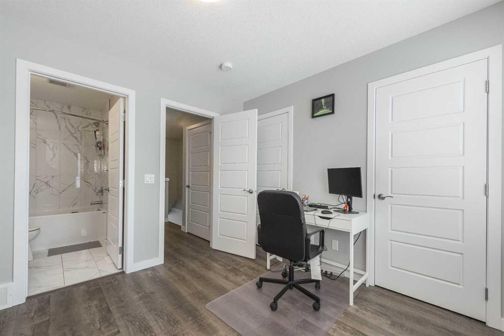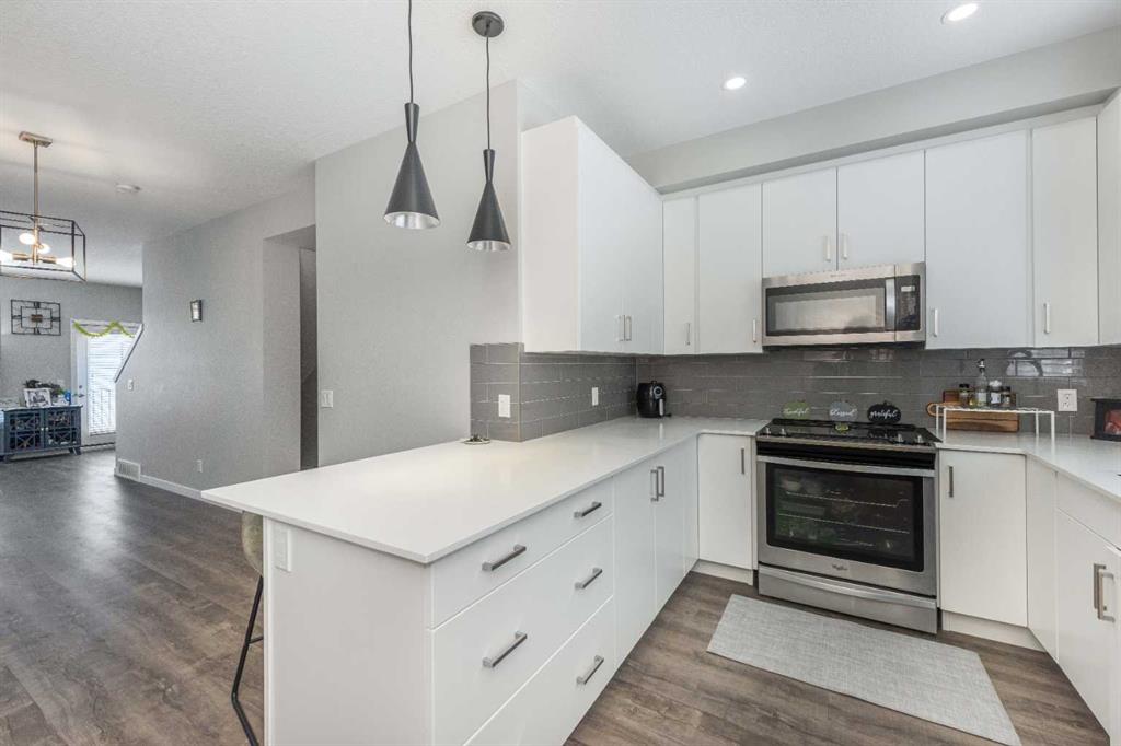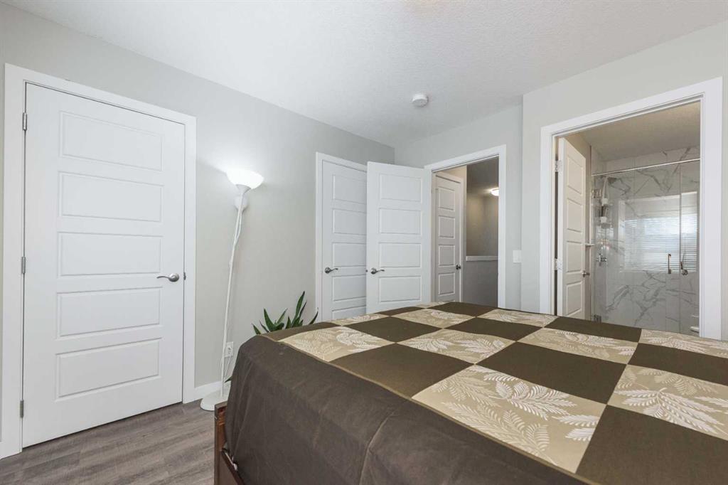 ***Please view 3D virtual tour***Welcome to beautifully maintained and modern townhome located in the vibrant and growing community of Belmont in Southwest Calgary. Perfectly positioned overlooking the peaceful courtyard, this nearly new home offers a highly desirable dual-primary bedroom layout, making it ideal for first-time buyers, young professionals, roommates, or investors. Step inside to discover a bright and inviting open-concept main floor featuring elegant hardwood flooring throughout, adding warmth, durability, and a timeless look rarely found in townhomes, 9' ceiling height. Large windows fill the living space with natural light, creating an airy and welcoming atmosphere. The contemporary kitchen is thoughtfully designed with quartz countertops, an extended island with seating, full subway tile backsplash, stainless steel appliances, sleek white cabinetry, modern pendant lighting, and a convenient pantry for extra storage. The spacious dining area easily accommodates a full-size dining table, making it perfect for entertaining family and friends. The living room overlooks the beautifully landscaped courtyard and offers access to a private balcony, the perfect place to enjoy morning coffee or relax on warm summer evenings. Upstairs you’ll find two spacious primary bedrooms, each featuring generous closets and private four-piece ensuites with quartz countertops, undermount sinks, and stylish tile finishes. A convenient upper-floor laundry area is located between the bedrooms for everyday ease. Parking is exceptional with a double attached tandem garage plus an exterior parking pad, providing a rare total of three parking spaces. The home is also located just steps from visitor parking, making it convenient for guests. Belmont is one of South Calgary’s fastest-growing communities, offering access to scenic walking paths, green spaces, playgrounds, and a planned City of Calgary recreation centre. Residents enjoy close proximity to Spruce Meadows, shopping, restaurants, schools, and quick access to Macleod Trail and Stoney Trail, making commuting and daily errands simple. This modern, low-maintenance home with hardwood flooring throughout offers outstanding value and lifestyle in a thriving Southwest Calgary neighbourhood. Book your private showing today.