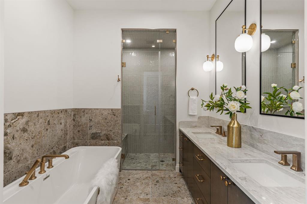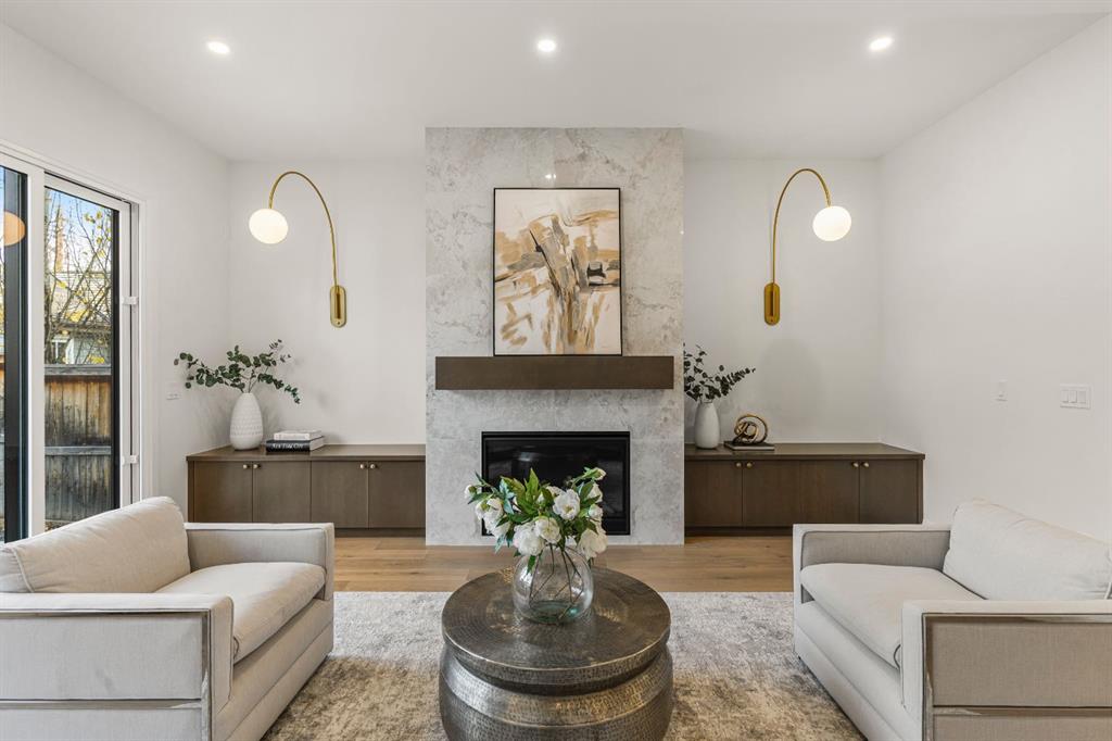 Welcome to The Vega — a beautifully crafted home by Cedar Rock Homes, set on one of Briar Hill’s most desirable streets. This four-bedroom, 3.5-bath residence offers over 3,200 sq ft of developed living space on an oversized 130-foot-deep lot. Architectural elegance meets thoughtful functionality and elevated finishes to create a space that feels both sophisticated and comfortable. Step inside to soaring 10-foot ceilings, wide-plank white oak floors, and natural light that fills every corner. The open-concept main floor flows seamlessly from the chef’s kitchen — complete with custom millwork and a full Miele appliance package — to the inviting living area anchored by a sleek gas fireplace and full dining space perfect for family gatherings and entertaining. With vaulted 10-foot ceilings on the upper floor, the primary suite feels like a private retreat, featuring heated floors, a curbless steam shower, freestanding tub, and dual walk-in closets. Two additional bedrooms — each with walk-in closets — share a spacious five-piece bath, while a pocket office provides a quiet spot to work or study. The lower level offers room to live and play, with a large family area, wet bar, home gym, fourth bedroom, full bathroom, and roughed in infloor heating — ideal for guests or extended family. Outside, enjoy quiet evenings in your private yard or coffee on the front courtyard patio. With a double detached fully insulated, drywalled and painted garage, smart-home wiring, and high-efficiency mechanicals, every detail has been designed for lasting comfort and performance. Nestled in Briar Hill, one of Calgary’s premier inner-city communities, you’re just minutes from Kensington, Foothills Hospital, the University of Calgary, and some of the city’s best parks and schools. The Vega — modern living, perfectly grounded in a classic Calgary neighbourhood. Book your private showing today!