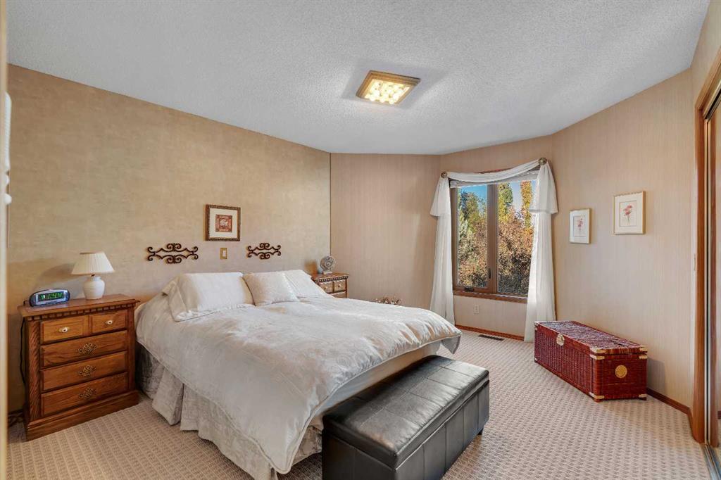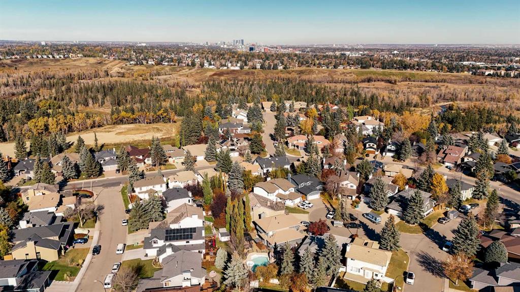 Tucked within a quiet cul-de-sac in the heart of Shawnee, this warm and inviting family home offers over 4,300 sq. ft. of developed living space and an exceptional layout designed for comfort, connection and everyday function. The grand foyer welcomes you with soaring open-to-above ceilings and a skylight that fills the space with natural light. A formal living and dining room with vaulted ceilings and oversized bayed windows set the stage for elegant entertaining, while hardwood flooring adds timeless charm. The well-planned kitchen provides ample cabinet space, integrated storage solutions, a gas cooktop, central island and built-in tech desk for catching up on homework or emails. A bayed breakfast nook overlooks the lush west backyard, creating a beautiful backdrop for family meals. The adjoining family room invites relaxation with a woodburning fireplace framed by built-ins and large windows with plantation shutters that capture the afternoon sun. Upstairs, an impressive primary bedroom delivers a true owner’s retreat with its own fireplace, dual closets, a built-in vanity and an indulgent 6-piece ensuite featuring double sinks, a jetted soaker tub, separate shower and bidet for ultimate luxury. A bright open-to-below flex area provides an ideal home office or reading lounge with access to a private balcony overlooking the peaceful backyard. The second bedroom and a 4-piece bath complete the upper level. Gather in the expansive recreation area on the lower level and enjoy the flexibility of having separate zones for media, fitness, games and play, complemented by 2 additional bedrooms and another full bathroom with dual sinks. Outdoors, a massive pie-shaped lot creates a serene, fully fenced west-facing backyard framed by mature trees. An expansive deck is perfect for barbeques, morning coffee or watching kids and pets play on the generous lawn. The oversized double attached garage provides plenty of space for vehicles and storage. Located moments from Fish Creek Park, schools, playgrounds and everyday conveniences, this home blends space, light and location into a truly special family setting!