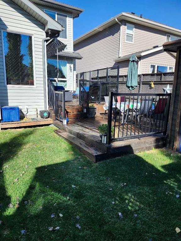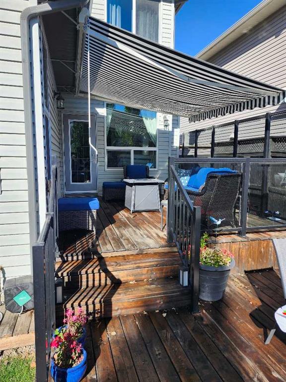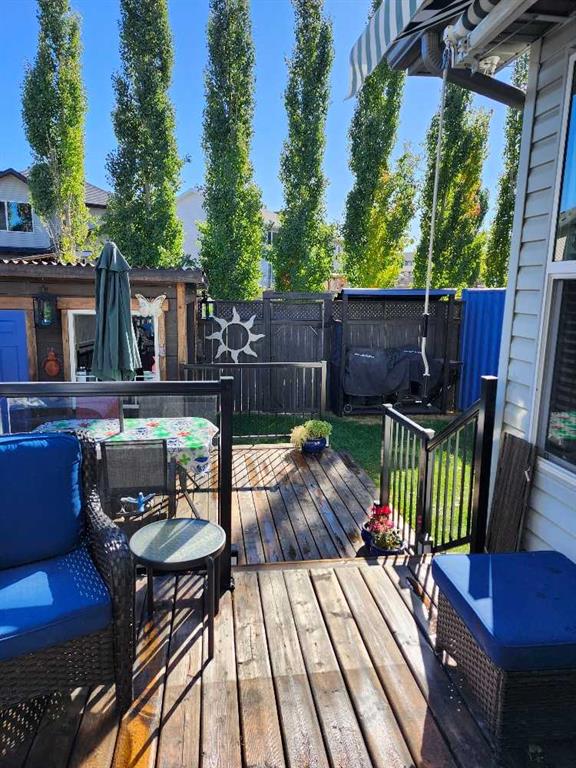 Welcome to 23 Cranberry Circle S.E.—a beautifully appointed and fully developed 2-storey home offering over 3,000 sq. ft. of thoughtfully designed living space in the highly sought-after community of Cranston. This impressive 4-bedroom home is loaded with upgrades and perfectly suited for both everyday living and entertaining. The main floor features a bright, open-concept layout with 9-foot ceilings, rich 3/4" ash hardwood flooring, and solid oak doors. A spacious front office overlooks the streetscape, while the inviting living room showcases vaulted ceilings with wood beams, a stunning floor-to-ceiling stone gas fireplace with log mantle, built-in shelving. The kitchen is sure to impress with quality granite countertops, extended-height oak cabinetry, abundant drawers, a centre island with storage, corner pantry, stainless steel appliances, and ambient cabinet lighting. The adjoining dining nook opens to a sunny south-facing rear deck—perfect for summer entertaining. Upstairs, you’ll find three generously sized bedrooms, including a luxurious primary retreat complete with vaulted ceiling, walk-in closet, built-ins, window bench seating, and a spa-inspired 4-piece ensuite featuring a large soaker tub, and a separate tiled shower. The two additional bedrooms each offer walk-in closets and share a convenient Jack-and-Jill bathroom with private sink areas. The fully developed basement continues to impress with 9-foot ceilings, a large recreation space anchored by a second stone gas fireplace, wet bar, flex room or 4th bedroom, and a stylish 3-piece bathroom with heated floors. Additional highlights include a heated, oversized double attached garage with an 8’ door and ceiling height suitable for car lifts, main floor laundry and mudroom, a newer high-efficiency furnace, central air conditioning and ample built-in storage throughout. Outside, enjoy a low-maintenance yard with extensive decking, a retractable awning, two storage sheds, and paved rear lane access with space for RV or trailer parking—or keep the existing sea-can for added storage. Hot and cold running water in both the back yard and garage! Ideally located within walking distance to Cranston’s many amenities including most levels of schooling, the community centre, Calgary South Health Campus and more, this home offers exceptional value in a family-friendly neighbourhood. A true turnkey property with space, style, and function—this one is a must-see!