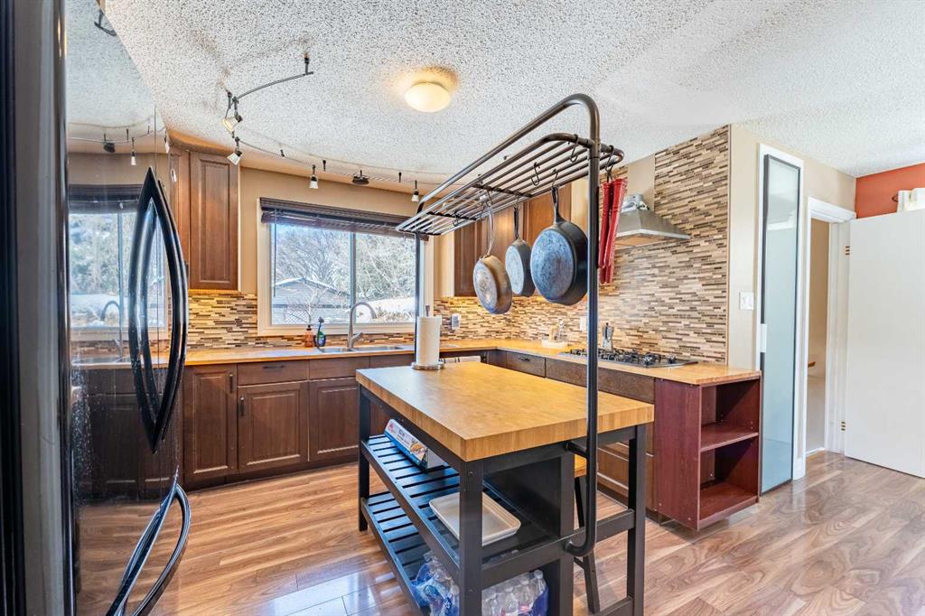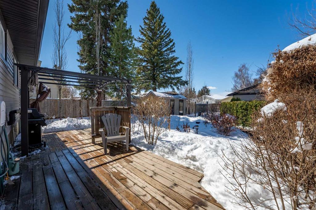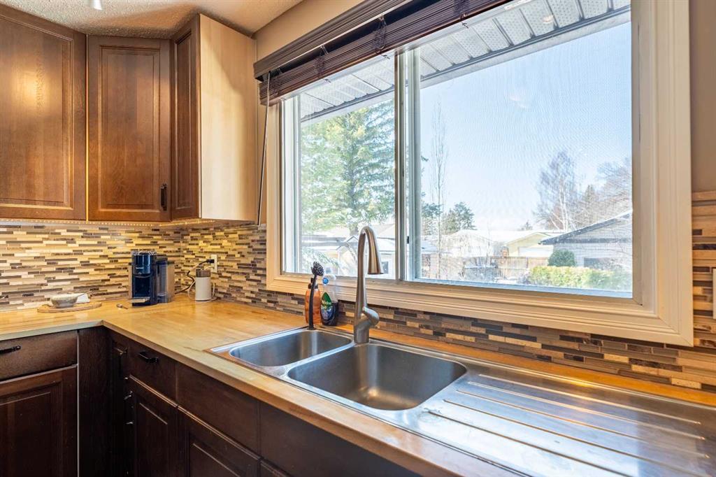 Welcome to this spacious and well-appointed 4-bedroom, 2.5-bathroom bungalow, offering a perfect blend of comfort, functionality, and outdoor charm. The updated kitchen is a true highlight, featuring a built-in wall oven, microwave/convection unit, gas cooktop, centre island, and an abundance of cupboards and counter space—all seamlessly open to the dining and living areas, making it ideal for everyday living and entertaining. The main floor includes a beautifully renovated 3-piece bathroom with a large walk-in shower, new vanity and toilet. Enjoy cozy evenings by the gas fireplace on the main level, with a second gas fireplace adding warmth and character to the basement. The partially developed basement offers even more living space with a fourth bedroom, laundry area, a large Rec. Room complete with a wet bar, plenty of storage, and a convenient cold room. Step outside to your own private oasis—this fully fenced, treed backyard features a stunning pond surrounded by plants and shrubs, a fire pit area for relaxing or entertaining, and access to a double detached garage. There’s also extra parking or RV storage with convenient rear gate access. This property offers space, updates, and a peaceful outdoor retreat—all in one exceptional package.