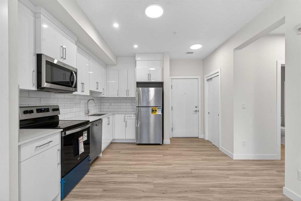 Welcome To This Brand-New, Move-In-Ready 2-Bedroom, 1-Bathroom Condo In The Desirable Skyview Community Of NE Calgary. Thoughtfully Designed For Modern Living, This Bright And Airy Unit Features 9-Foot Ceilings And Expansive Windows That Flood The Open-Concept Living Space With Natural Light. Wide-Plank Luxury Vinyl Flooring And Quartz Countertops Throughout Add A Sleek, Contemporary Finish. The Fully Upgraded Kitchen Is Both Stylish And Highly Functional, Showcasing Stainless Steel Appliances, An Over-The-Range Microwave, Soft-Close Cabinetry, Quartz Countertops, A Pantry, And Ample Storage—Perfect For Everyday Living And Entertaining. The Open Layout Seamlessly Connects The Kitchen To The Living And Dining Areas, Creating A Warm And Inviting Space To Relax Or Host Guests. *Please Note: Property Taxes Are Not Yet Assessed* Both Bedrooms Are Generously Sized And Thoughtfully Laid Out, While The Modern 4-Piece Bathroom Features A Quartz Countertop And Refined Finishes. Additional Highlights Include In-Suite Laundry, Upgraded Designer Window Treatments, And A Large Private Balcony With A BBQ Gas Line—Perfect For Outdoor Entertaining, Summer BBQs, Or Simply Enjoying Fresh Air And Open Views. This Unit Comes Complete With Titled Underground Parking And A Dedicated Storage Locker, Offering Exceptional Value And Convenience. Located In A Newly Constructed Building, Residents Enjoy Low-Maintenance Living With Quick Access To Shopping, Schools, Public Transit, Major Amenities, Calgary International Airport, And Easy Access To Stoney Trail For Effortless Commuting Throughout The City. Perfect For First-Time Buyers, Professionals, Or Investors, This Turnkey Home Is Located In One Of Calgary’s Fastest-Growing Communities. Just Move In And Enjoy—This Is A Must-See! Discover This Exceptional Opportunity Before It’s Gone—Your Perfect Home Awaits!