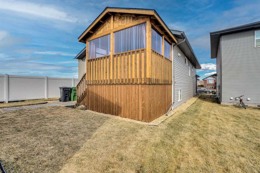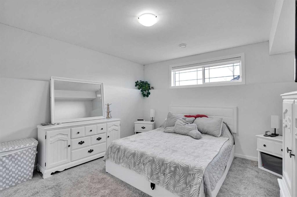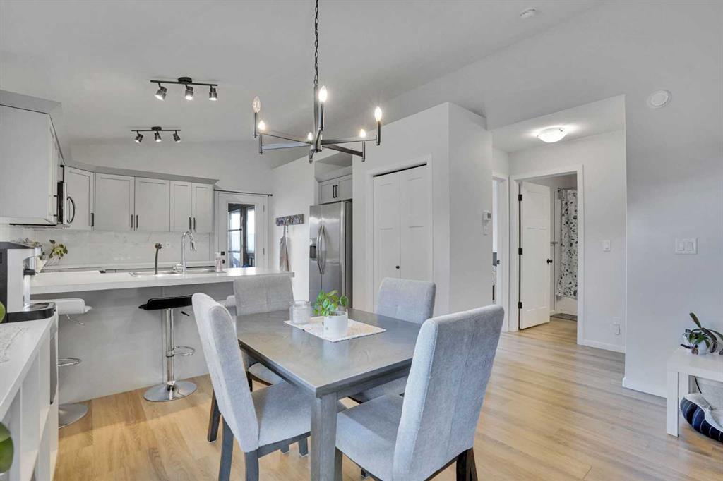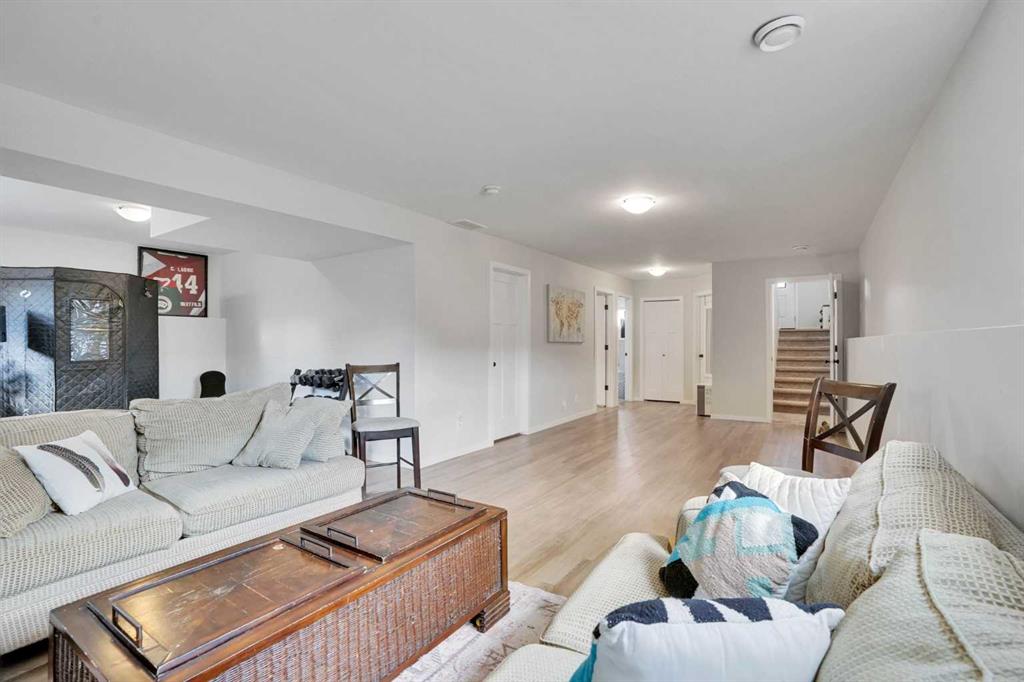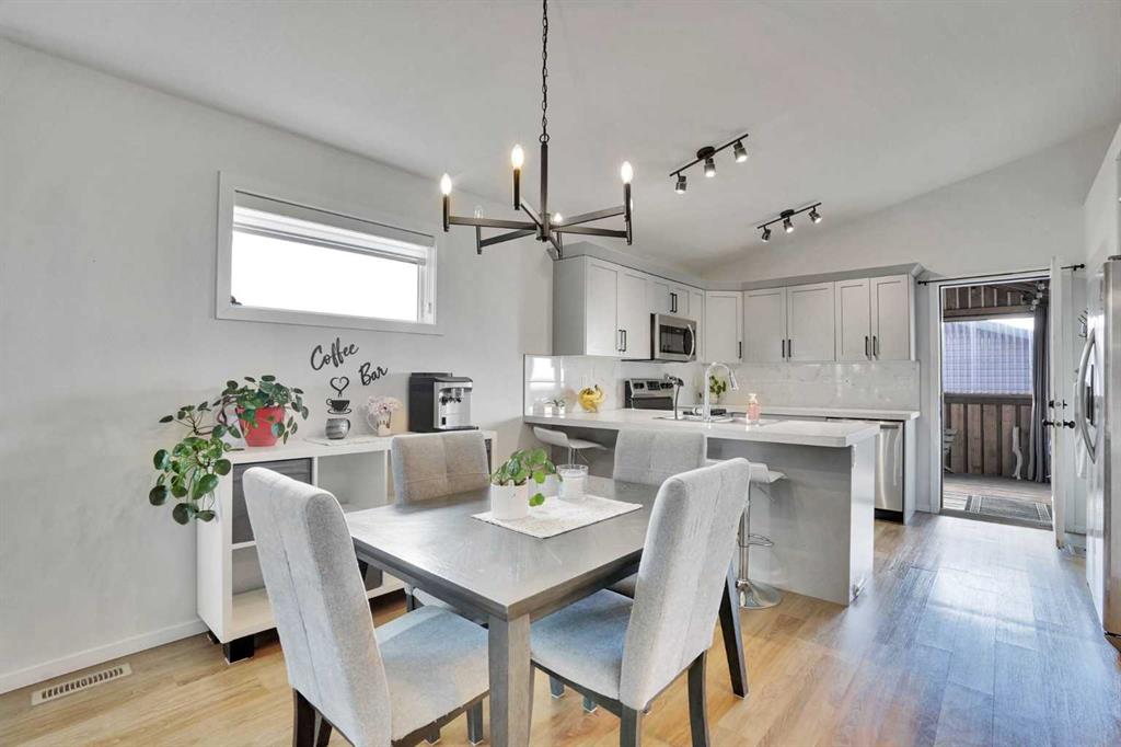 FULLY FINISHED 4 BEDROOM, 3 BATHROOM BI-LEVEL ~ HEATED DETACHED GARAGE ~ WEST FACING BACKYARD ~ Covered front entry welcomes you and leads to a sun filled foyer ~ Open concept main floor layout is complemented by vaulted ceiling and vinyl plank flooring ~ The living room is centred by a cozy fireplace with a mantle above and opens to the dining space where you can easily accommodate large gatherings ~ The U-shaped kitchen offers a functional layout with plenty of white cabinets, ample counter space including an island with an eating bar, full tile backsplash, and a wall pantry ~ Garden door access from the kitchen leads to the covered deck and backyard ~ The primary bedroom can easily accommodate a king size bed plus multiple pieces of furniture, has a spacious walk in closet, and a convenient 4 piece ensuite ~ 2 additional bedrooms located on the main level are both a generous size with ample closet space ~ 4 Piece main bathroom ~ The fully developed basement with large above grade windows offers a huge L-shaped family room, 4th bedroom, laundry, and space for storage ~ The sunny west facing backyard is landscaped, and mostly fenced with a large parking pad (room for an RV) and back alley access ~ Heated garage is insulated, finished with painted drywall, and has built in shelving ~ Located in desirable Timber Ridge, known for it's walkability, numerous schools, parks, playgrounds, walking trails and shopping plazas with excellent shopping and dining ~ Easy access to Balmoral Golf Course, Canyon Ski Resort & Rec Area.