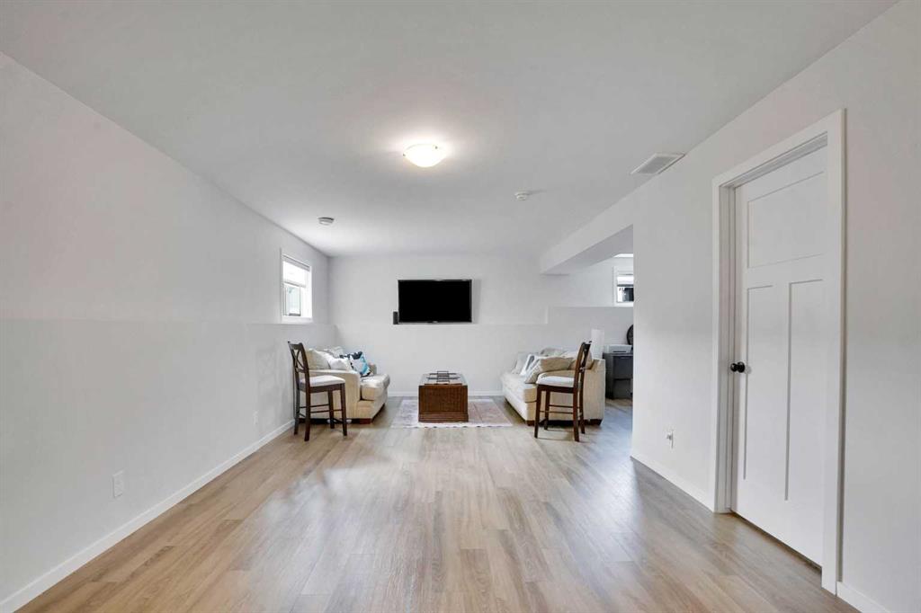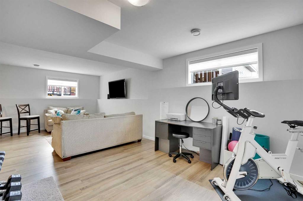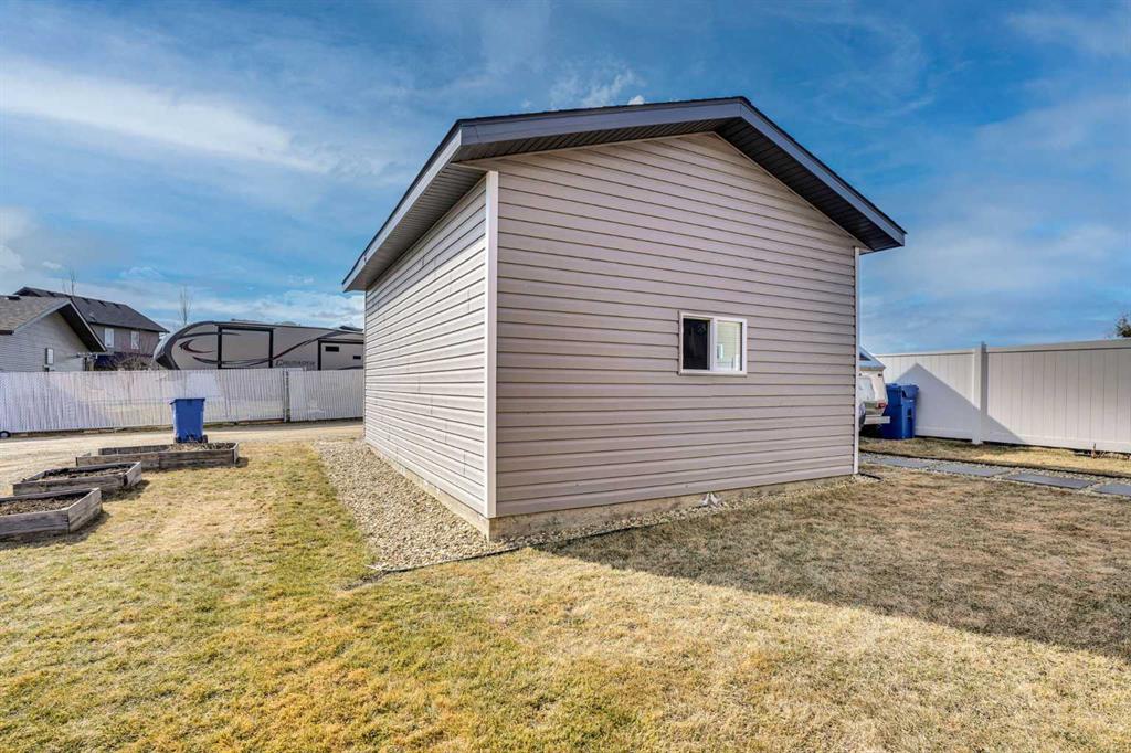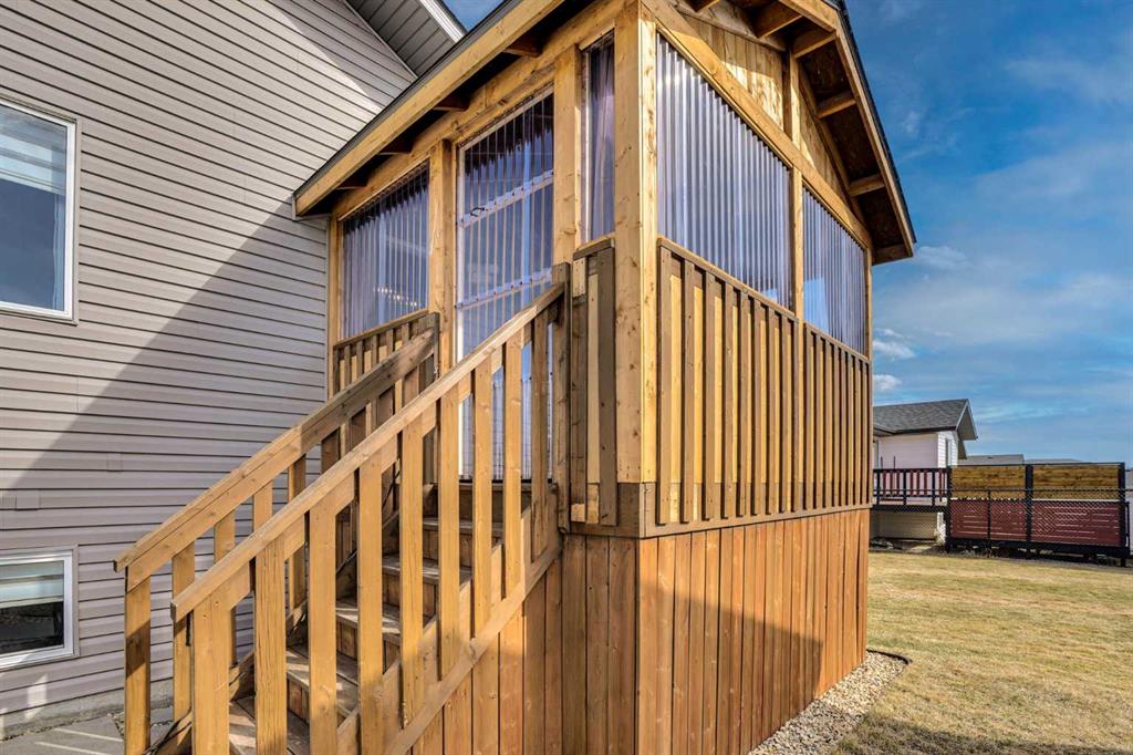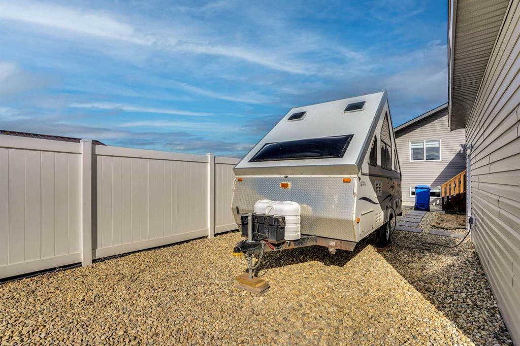 FULLY FINISHED 4 BEDROOM, 3 BATHROOM BI-LEVEL ~ HEATED DETACHED GARAGE ~ WEST FACING BACKYARD ~ Covered front entry welcomes you and leads to a sun filled foyer ~ Open concept main floor layout is complemented by vaulted ceiling and vinyl plank flooring ~ The living room is centred by a cozy fireplace with a mantle above and opens to the dining space where you can easily accommodate large gatherings ~ The U-shaped kitchen offers a functional layout with plenty of white cabinets, ample counter space including an island with an eating bar, full tile backsplash, and a wall pantry ~ Garden door access from the kitchen leads to the covered deck and backyard ~ The primary bedroom can easily accommodate a king size bed plus multiple pieces of furniture, has a spacious walk in closet, and a convenient 4 piece ensuite ~ 2 additional bedrooms located on the main level are both a generous size with ample closet space ~ 4 Piece main bathroom ~ The fully developed basement with large above grade windows offers a huge L-shaped family room, 4th bedroom, laundry, and space for storage ~ The sunny west facing backyard is landscaped, and mostly fenced with a large parking pad (room for an RV) and back alley access ~ Heated garage is insulated, finished with painted drywall, and has built in shelving ~ Located in desirable Timber Ridge, known for it's walkability, numerous schools, parks, playgrounds, walking trails and shopping plazas with excellent shopping and dining ~ Easy access to Balmoral Golf Course, Canyon Ski Resort & Rec Area.