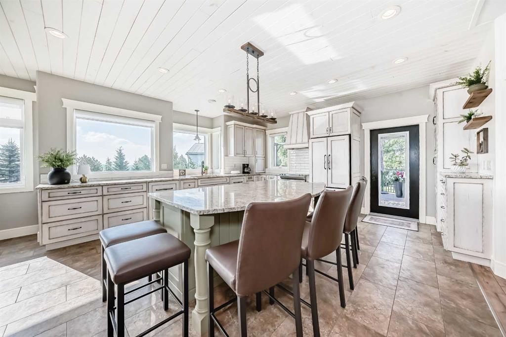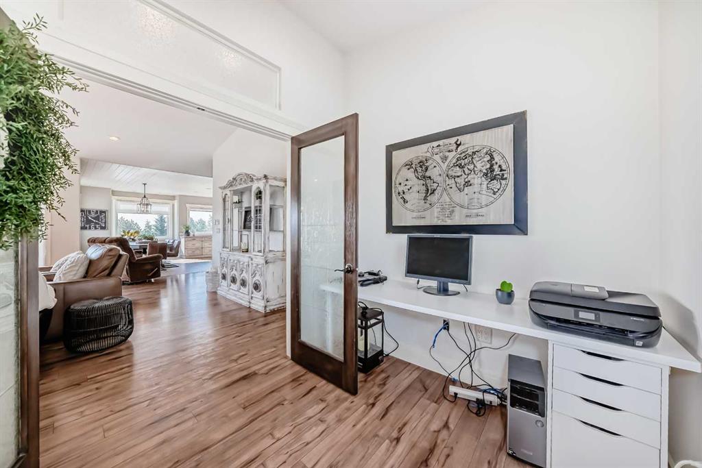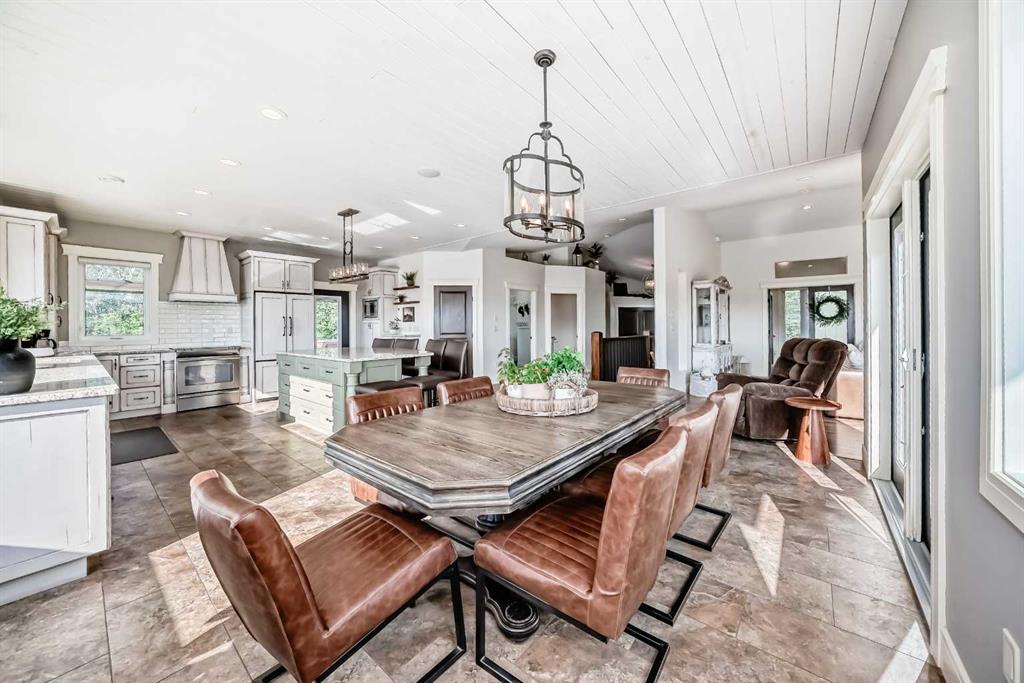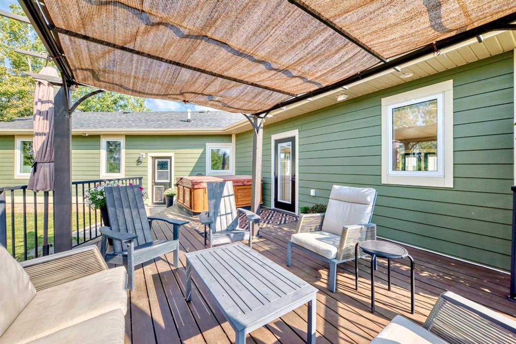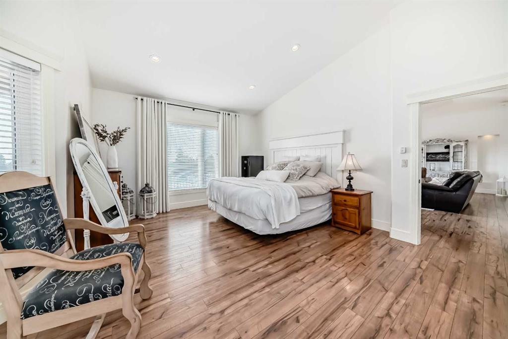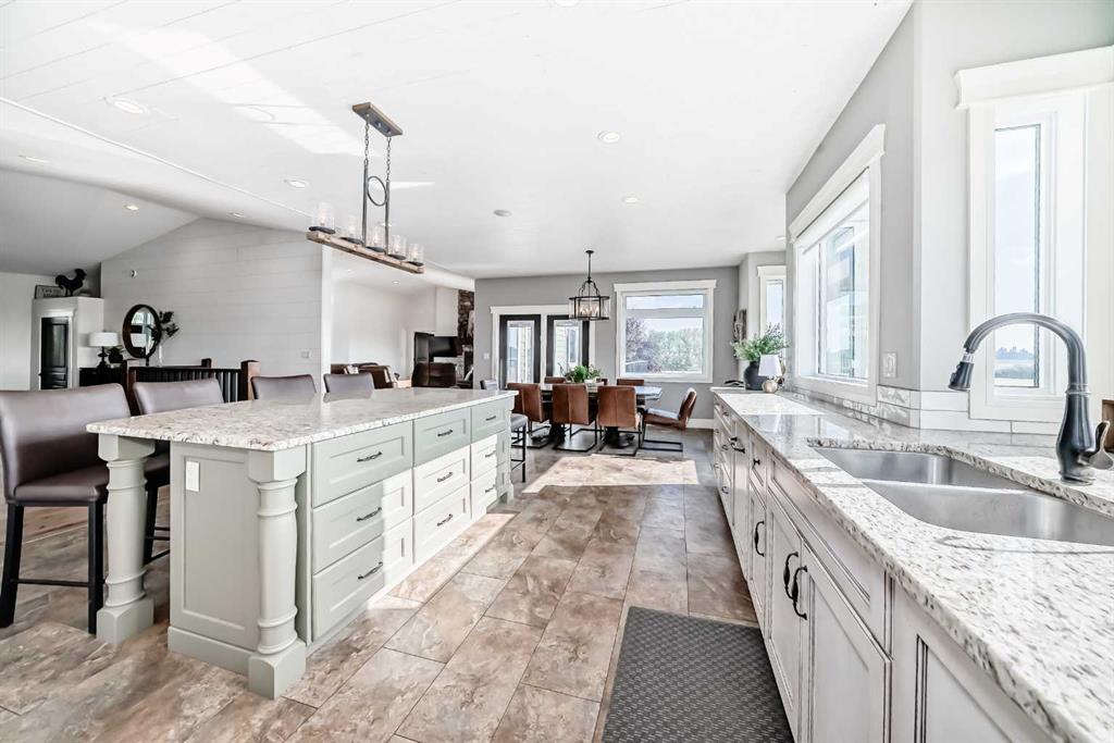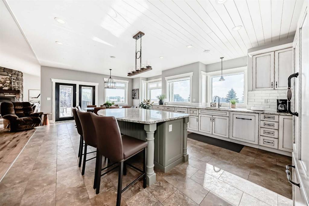 Experience the perfect blend of executive luxury and peaceful country living on this exceptional 29-acre private acreage, ideally located within 10 minutes from town, and with quick access to the Highway 2 corridor. This sprawling, like-new bungalow offers 4 bedrooms, 3 bathrooms, and a thoughtfully designed layout that balances everyday family comfort with impressive entertaining space. From the moment you step inside, pride of ownership is evident. Gleaming hardwood floors, warm neutral tones, and abundant natural light create a welcoming and refined atmosphere throughout the stunning main level. The living room is bright and inviting, centered around a striking stone-surround wood-burning fireplace that anchors the space beautifully. The kitchen is truly the heart of the home and is designed to impress with rich cabinetry, extensive counter space, granite countertops, and a large island with seating. Whether hosting guests or preparing family meals, this space delivers both style and functionality. The adjoining dining area easily accommodates gatherings of all sizes and features patio doors leading to the expansive deck, where you can soak in serene views of your private acreage. The primary suite offers a luxurious retreat, complete with a spacious walk-in closet and a spa-inspired 5-piece ensuite designed for relaxation. A dedicated main-floor office provides versatility for remote work or hobbies, while the stylish 2-piece powder room and a well-appointed laundry room with cabinetry, counter space, and sink add practical convenience. The fully finished walkout basement extends your living space with a large recreation room ideal for entertaining or unwinding. Three additional generously sized bedrooms and a 4-piece bathroom complete the lower level. Step outside to the covered patio overlooking the beautifully landscaped yard which is the perfect setting to enjoy Alberta’s seasons. Comfort is maximized year-round with in-floor heat on both levels and two ductless central air conditioning units. Outdoors, the mature trees, paved driveway, and carefully designed landscaping enhance the natural beauty and privacy of this remarkable property. The oversized attached garage (29.2’ x 27.1’) provides ample room for vehicles and storage. A standout feature is the large heated shop with in-floor heat and complete with a suite and extensive storage, offering endless possibilities for projects, equipment, or multi-generational flexibility. Additionally, the expansive gravelled flat site adjacent to the yardsite, equipped with power, is perfectly suited for parking large trucks, trailers, or heavy equipment. With 29 acres to call your own, this property offers more than just a home, it offers a lifestyle defined by comfort, space, and tranquility.