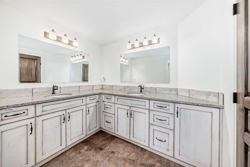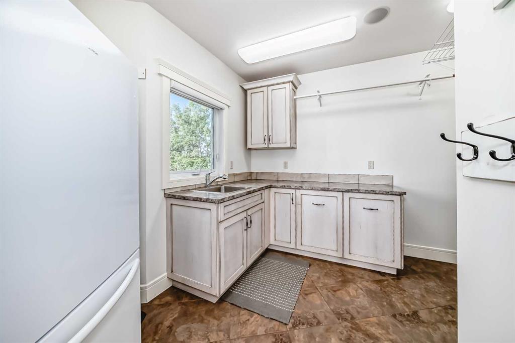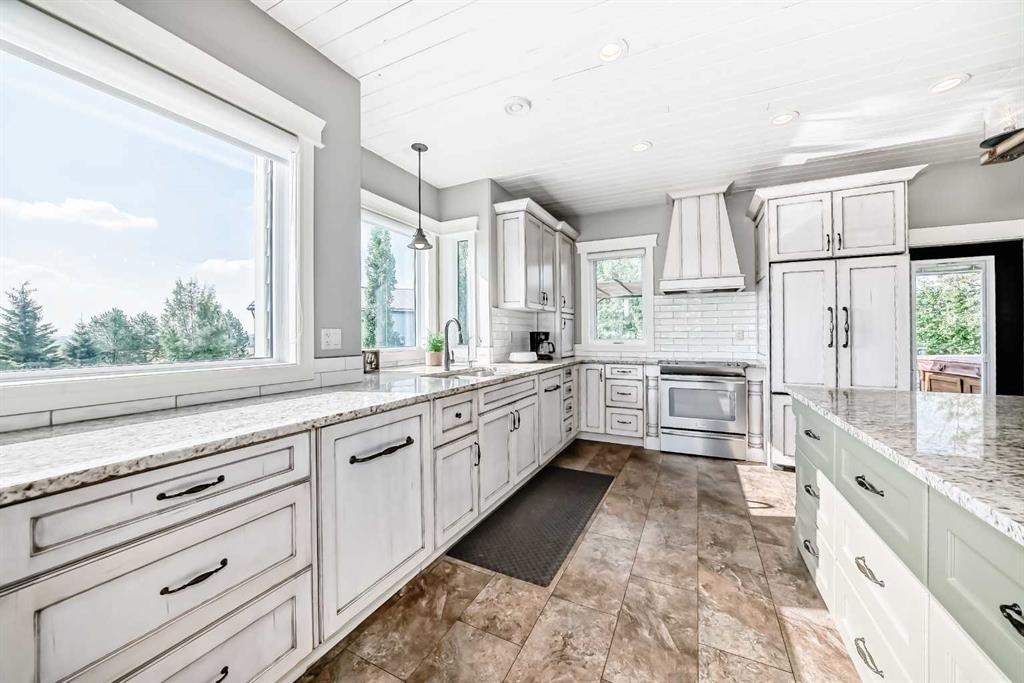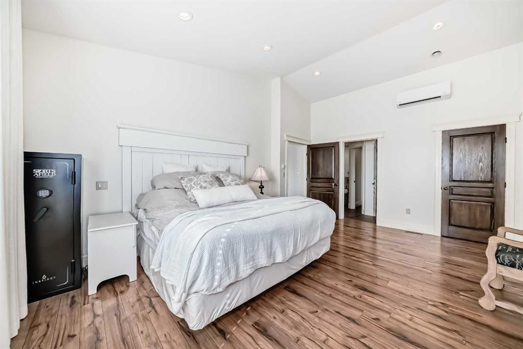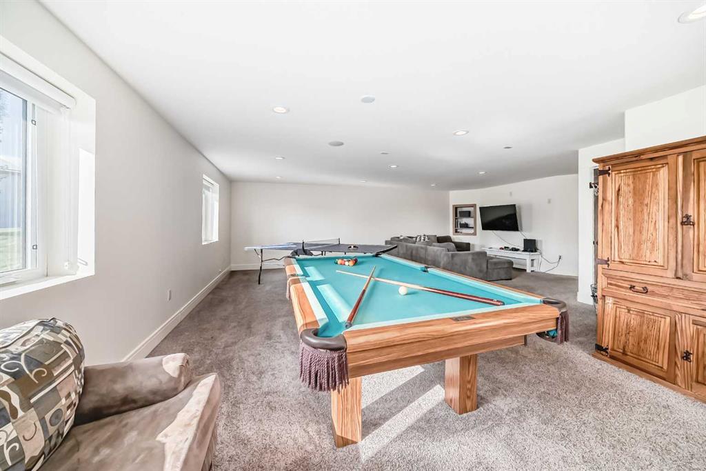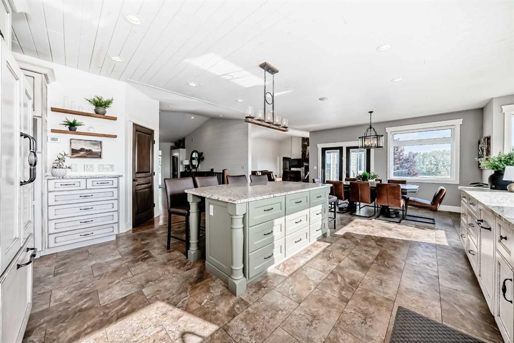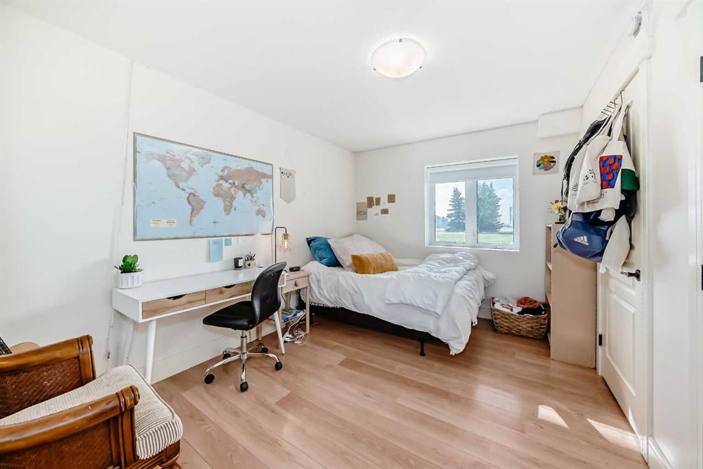 Experience the perfect blend of executive luxury and peaceful country living on this exceptional 29-acre private acreage, ideally located within 10 minutes from town, and with quick access to the Highway 2 corridor. This sprawling, like-new bungalow offers 4 bedrooms, 3 bathrooms, and a thoughtfully designed layout that balances everyday family comfort with impressive entertaining space. From the moment you step inside, pride of ownership is evident. Gleaming hardwood floors, warm neutral tones, and abundant natural light create a welcoming and refined atmosphere throughout the stunning main level. The living room is bright and inviting, centered around a striking stone-surround wood-burning fireplace that anchors the space beautifully. The kitchen is truly the heart of the home and is designed to impress with rich cabinetry, extensive counter space, granite countertops, and a large island with seating. Whether hosting guests or preparing family meals, this space delivers both style and functionality. The adjoining dining area easily accommodates gatherings of all sizes and features patio doors leading to the expansive deck, where you can soak in serene views of your private acreage. The primary suite offers a luxurious retreat, complete with a spacious walk-in closet and a spa-inspired 5-piece ensuite designed for relaxation. A dedicated main-floor office provides versatility for remote work or hobbies, while the stylish 2-piece powder room and a well-appointed laundry room with cabinetry, counter space, and sink add practical convenience. The fully finished walkout basement extends your living space with a large recreation room ideal for entertaining or unwinding. Three additional generously sized bedrooms and a 4-piece bathroom complete the lower level. Step outside to the covered patio overlooking the beautifully landscaped yard which is the perfect setting to enjoy Alberta’s seasons. Comfort is maximized year-round with in-floor heat on both levels and two ductless central air conditioning units. Outdoors, the mature trees, paved driveway, and carefully designed landscaping enhance the natural beauty and privacy of this remarkable property. The oversized attached garage (29.2’ x 27.1’) provides ample room for vehicles and storage. A standout feature is the large heated shop with in-floor heat and complete with a suite and extensive storage, offering endless possibilities for projects, equipment, or multi-generational flexibility. Additionally, the expansive gravelled flat site adjacent to the yardsite, equipped with power, is perfectly suited for parking large trucks, trailers, or heavy equipment. With 29 acres to call your own, this property offers more than just a home, it offers a lifestyle defined by comfort, space, and tranquility.
