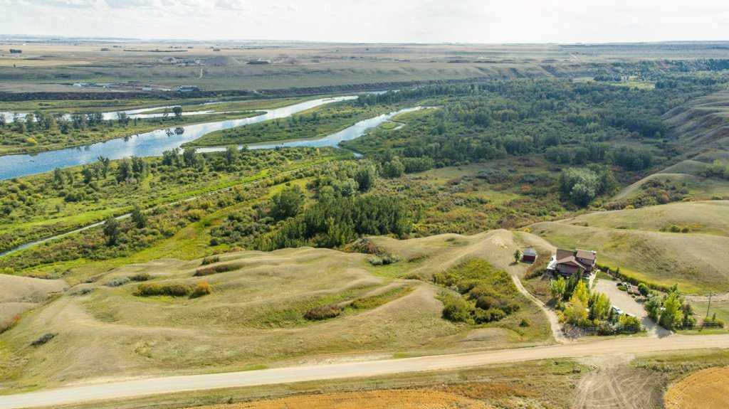 Don’t miss the CHANCE OF A LIFETIME to own this stunning 16+ ACRE PROPERTY near Carseland that is truly the stuff that dreams are made of… Perched high above the BOW RIVER VALLEY you’ll enjoy SWEEPING PANORAMIC VIEWS of the RIVER VALLEY, WYNDHAM-CARSELAND & JOHNSON ISLAND PROVINCIAL PARKS as well as The ROCKY MOUNTAINS from every level of this custom built home. Ideally located to allow for BOTH SUNRISE AND SUNSETS VIEWS that will take your breath away every day. MATURE TREES AND RAISED GARDEN BEDS surround the 1744 sq ft home and there’s plenty of room left for parking or to possibly ADD A GARAGE OR SHOP. There is even a CHICKEN COOP if you want to embrace your inner farmer. Inside you’ll be wowed by the SOARING VAULTED CEILINGS and WALL OF WINDOWS showcasing your spectacular views. A STONE FACED GAS FIREPLACE provideS both warmth and ambience. The living room is open to the spacious and well planned kitchen featuring GRANITE COUNTERS and STAINLESS STEEL APPLIANCES including a GAS STOVE. The spacious floor plan of this home accommodates LARGE SCALE ENTERTAINING yet has WARM AND INTIMATE AREAS FOR EVERYDAY FAMILY LIFE. 2 good sized bedrooms on this level are perfect as kids rooms or for guests. And you can’t help but feel inspired as you work, study or create from home in the incredible CORNER OFFICE with a view, a 2nd gas fireplace and French doors. Imagine being able to step out onto the 10’x51’ deck to enjoy your coffee break along with the splendour of your surroundings. On the top floor you’ll find a PRIVATE AND LUXURIOUS OWNER’S RETREAT that encompasses the entire level. It’s flooded with natural light and includes a 3 pc ensuite as well as a huge walk in closet/dressing room. The WALK OUT BASEMENT is bright, sunny and open with a great sized recreation area as well as a large office that could easily be turned into a bedroom by adding a closet. A huge full bath and ample storage complete this level. Step outside to find the COZY AND WELCOMING STAMPED CONCRETE COVERED PATIO that is protected from the elements on 3 sides extending your patio season and perfectly framing your RIVER VALLEY VIEW. This is the perfect place to relax and unwind with family and friends over a morning coffee or evening glass of wine. A COZY GAZEBO AREA WITH NATURAL GAS FIRE-PIT provides yet another oasis in the INCREDIBLE OUTDOOR LIVING this home provides. Down a small slope is the ultimate surprise - a COZY AND RUSTIC 1 BEDROOM CABIN with an adorable front porch, KNOTTY PINE SHIPLAP interior, a KITCHENETTE, small bathroom and COZY ELECTRIC FIREPLACE. Your kids, grandkids and guests alike will fall in love with this SECLUDED LITTLE HIDE OUT. As you spend your days in the SERENE AND TRANQUIL surroundings where you can fish, canoe, explore the trails on foot or by ATV not to mention come face to face with local wildlife it will be hard to believe you are still an easy commute to Calgary, Carseland and Strathmore. It really is a rare opportunity to have the BEST OF BOTH WORLDS.